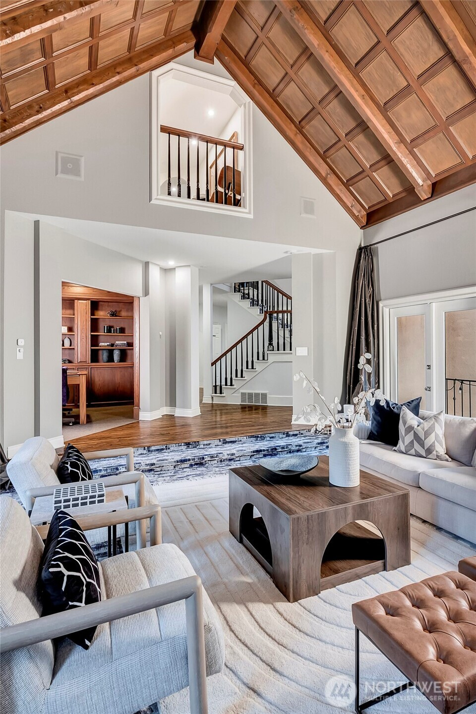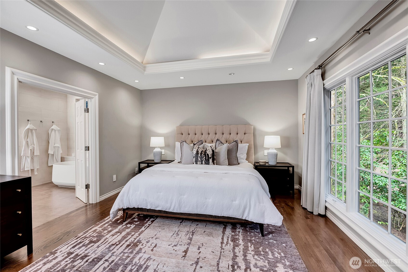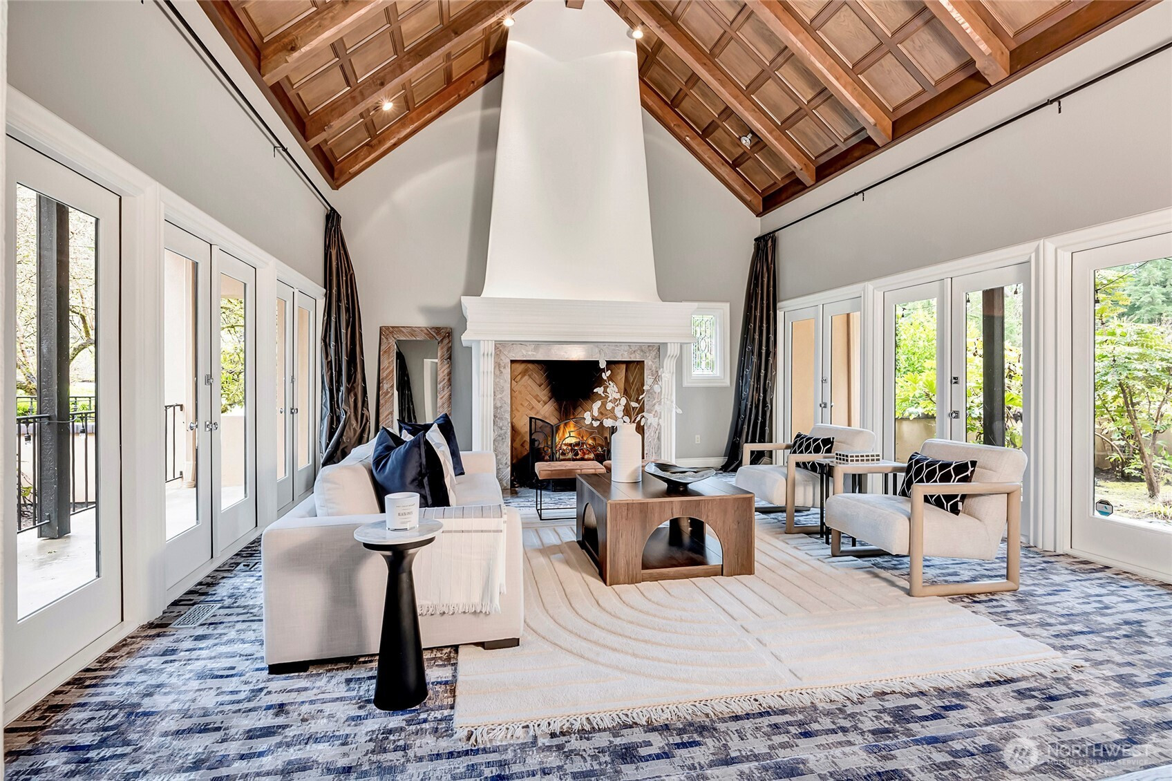 A Chateau-inspired estate where timeless architecture, extraordinary craftsmanship & a serene woodland setting create a home that feels both elegant & deeply private. A soaring entry welcomes you inside, where a striking dual staircase sets the tone for the home’s architectural presence. Two sculpted fireplaces anchor the formal living & family rooms, adding warmth, scale & sophistication. Honduran mahogany accents, vaulted coffered ceilings & curated finishes reflect a level of craftsmanship rarely seen today, showcasing a standard of design, materials & architectural detail often associated with a bygone era. The main level primary suite overlooks the surrounding woodlands & features a spa-inspired 5-piece bath & skylit atrium-style bonus room. Natural light fills every room, while French doors open to private outdoor spaces & a remarkable 1,370 sqft patio surrounded by mature trees, creating a seamless connection to nature. At the heart of the home, the chef’s kitchen features premium appliances, custom cabinetry & generous prep space, flowing to gathering areas & an adjacent onyx bar. A charming lower-level old-world wine cellar adds to the home’s exceptional entertaining spaces. Tucked within the gated community of Starwood, minutes from top rated schools, parks & major tech campuses, this exceptional estate offers a rare opportunity to own a distinctive & timeless residence in one of Redmond’s most sought after neighborhoods.