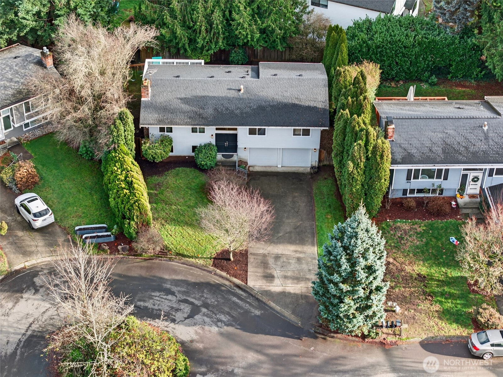 Located on a quiet cul-de-sac in the heart of Finn Hill, this 4-bedroom, 3-bathroom home is move-in-ready and is minutes from top-rated schools, shopping, and plenty of parks. Highlights of the home include air conditioning, engineered hardwood floors, fresh paint, recessed lighting, updated bathrooms with heated floors, and a roof less than 10 years old. Spacious primary suite and three bedrooms upstairs, plus a lower-level bedroom/office and additional family room. Outside, enjoy a sunny deck and a flat, fully fenced yard with privacy trees, mature landscaping, raised garden beds, patio space, and a fire pit—ideal for relaxing or entertaining. Spacious 2-car garage with workshop/bench area. This one won't last, come see it today!