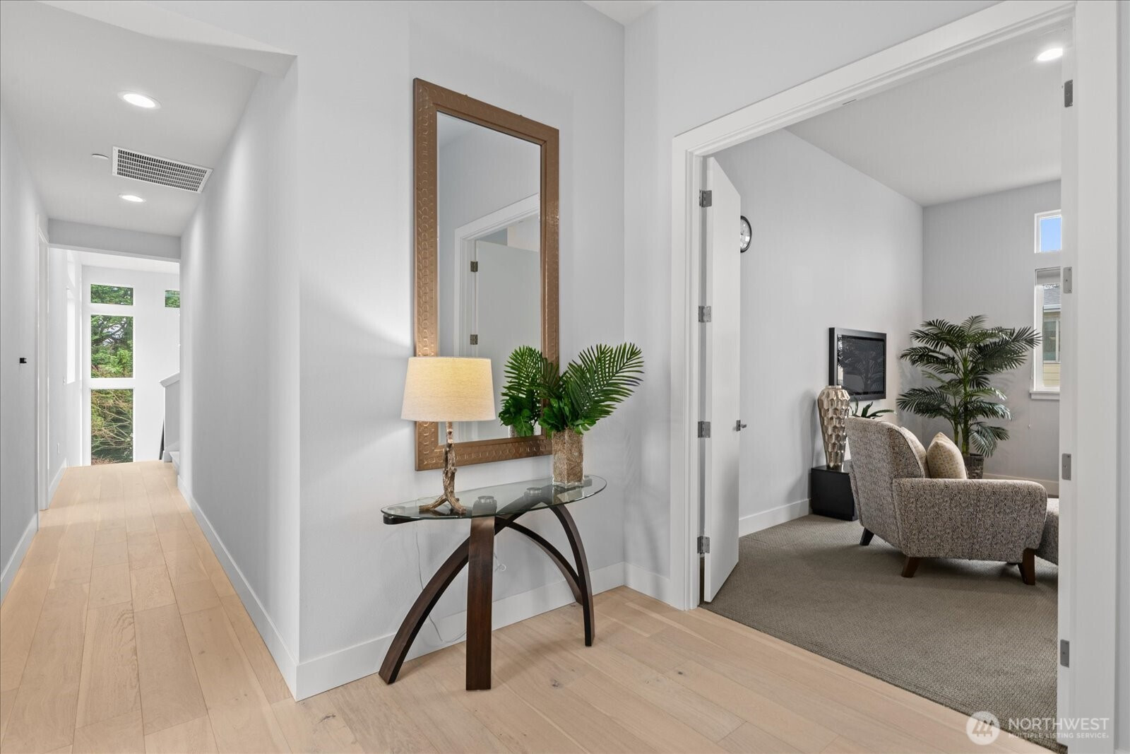 Refined. Rare. Ready. Skip the wait and the "new build" headaches. Pristine, pre-inspected, and meticulously curated, this Kirkland residence offers a flawless transition for the discerning buyer. Beyond the striking modern curb appeal and manicured turf grounds lies a sanctuary of rare caliber, upgraded beyond builder standards to deliver the pinnacle of Eastside living. The heart of the home is a culinary masterpiece—a symphony of Thermador steel featuring a 48” gas range, double ovens, a 60” integrated refrigerator, wine chiller, and high-end kitchen water filtration.The floor plan flows effortlessly into the great room, where vanishing bifold doors dissolve the boundary between indoors and out. Step onto your private, covered terrace with Infratech heating, designed for year-round entertaining amidst a fully fenced yard with premium turf, architectural pavers, and designer accent lighting. Retreat to a primary suite that is a masterclass in serenity, boasting vaulted ceilings, skylights, and a spa-inspired bath with bespoke custom dressing rooms. This tech-forward home features a main-floor guest wing, dedicated den, bonus room, full SMART integration, Central A/C, and a garage-ready EV charger. Perfectly positioned near Kirkland’s elite schools, vibrant waterfront, and world-class dining. This isn't just a home; it's a high-performance lifestyle, realized.