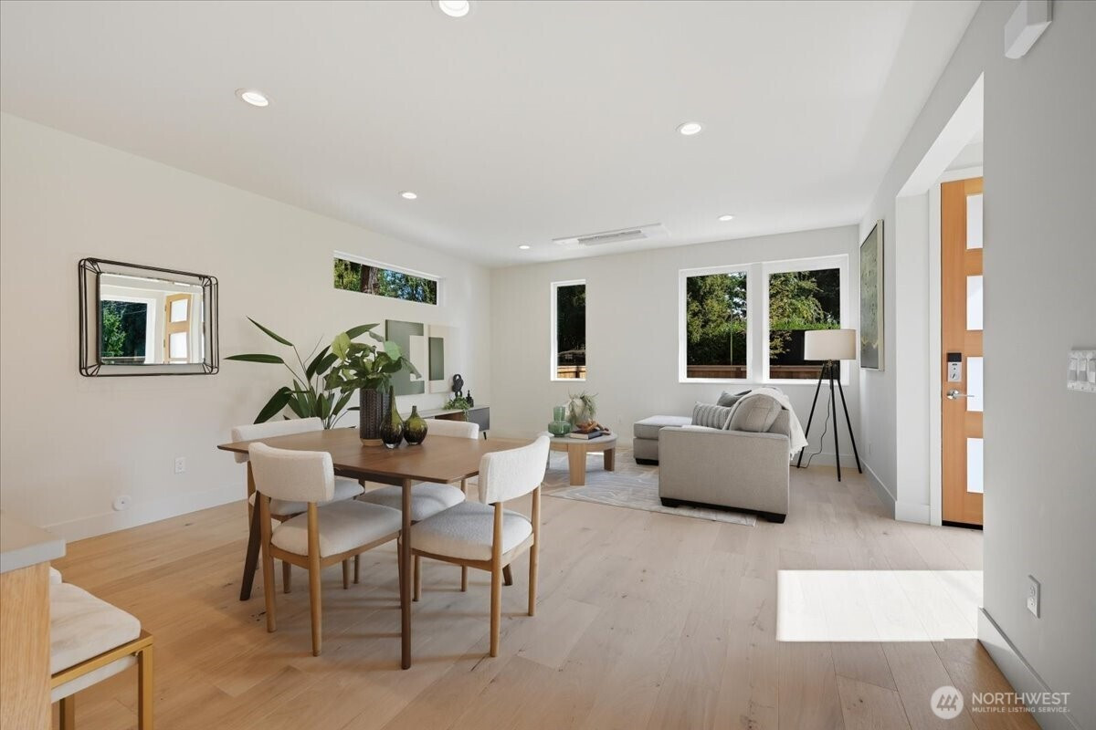 Cedar Park at its finest. Located on the bluff street in Cedar Park, this sunrise facing new construction offers a glimpse view of Lake Washington with an abundance of natural light and beauty. Designer curated interior boasts Fisher Paykel stainless steel appliances, quartz countertops and undercounter lighting. First floor living room, kitchen and dining room offer easy access from the oversized 2-car garage. 3 bedrooms on the second floor including the primary suite with heated floors in the bathroom and a deck. Third floor has a fourth bedroom, bath and a generous family/Superbowl room with sink and beverage frig. 18x12 partially covered deck perfect for a Seahawks party.