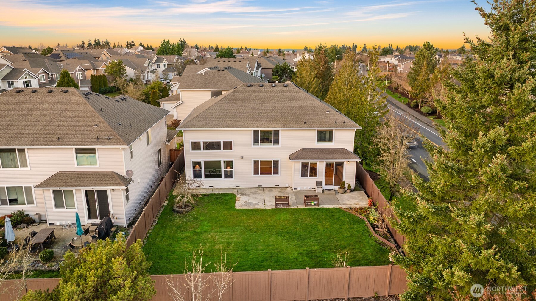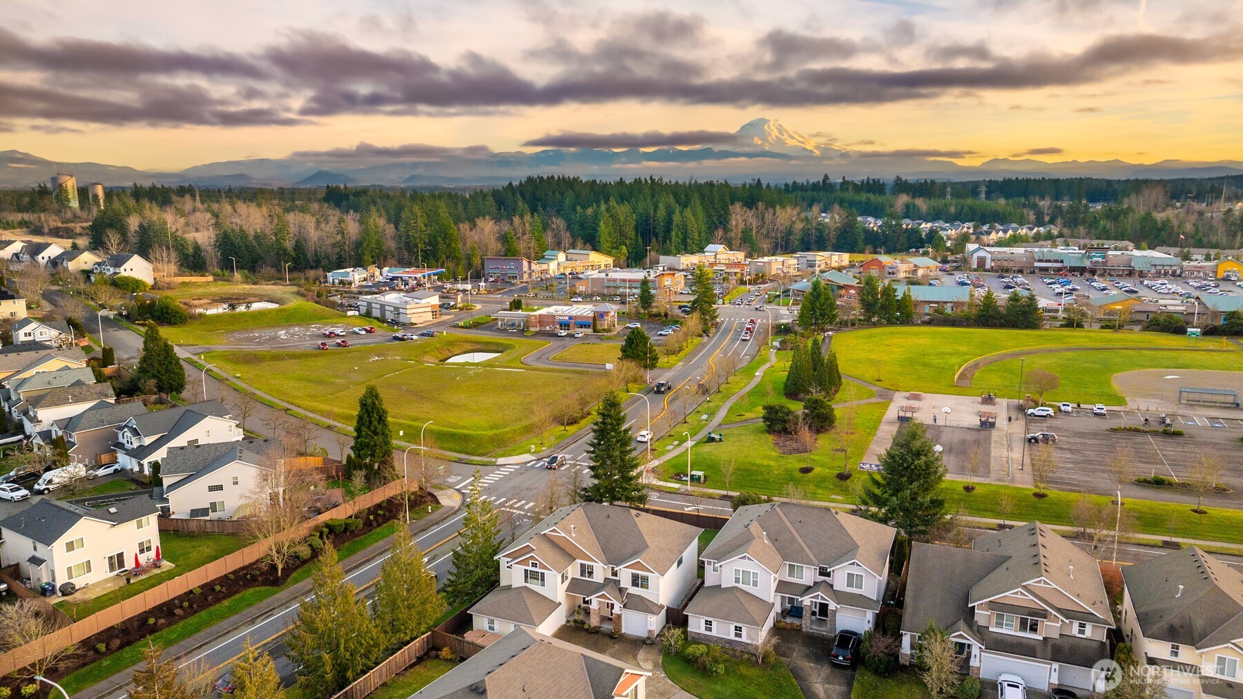 Located in the highly desirable Tuscany at Lakeland Hills, this stunning home offers 3,432 sq ft of beautifully designed living space and is in pristine, move-in-ready condition. Set on a premium corner lot with a long private driveway, this home makes a striking first impression. Inside, tall ceilings and expansive windows flood the home with natural light, highlighting the generous room sizes and thoughtful layout. Enjoy partial mountain views of Mt. Rainier while entertaining in the beautifully revamped kitchen featuring custom cabinets, a large extended island, ample counter and storage space, and a specious walk-in pantry. The home offers 5 bedrooms and 2.75 bathrooms, providing flexibility for guests, work, or multigenerational living. A spacious 3-car garage adds convenience, while the massive, fully fenced backyard offers endless opportunities for entertaining, play, or relaxation. Ideally located near Lakeland’s top amenities, this home perfectly blends comfort, space, and convenience. Don’t miss this exceptional opportunity