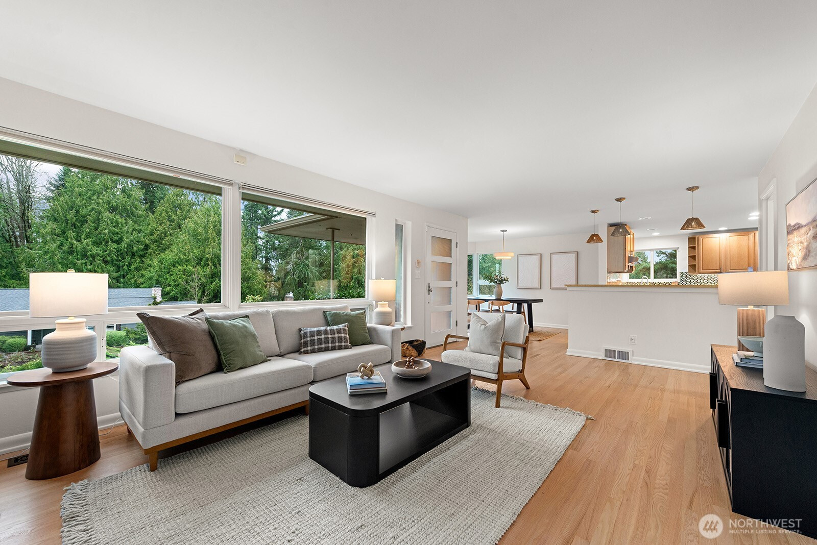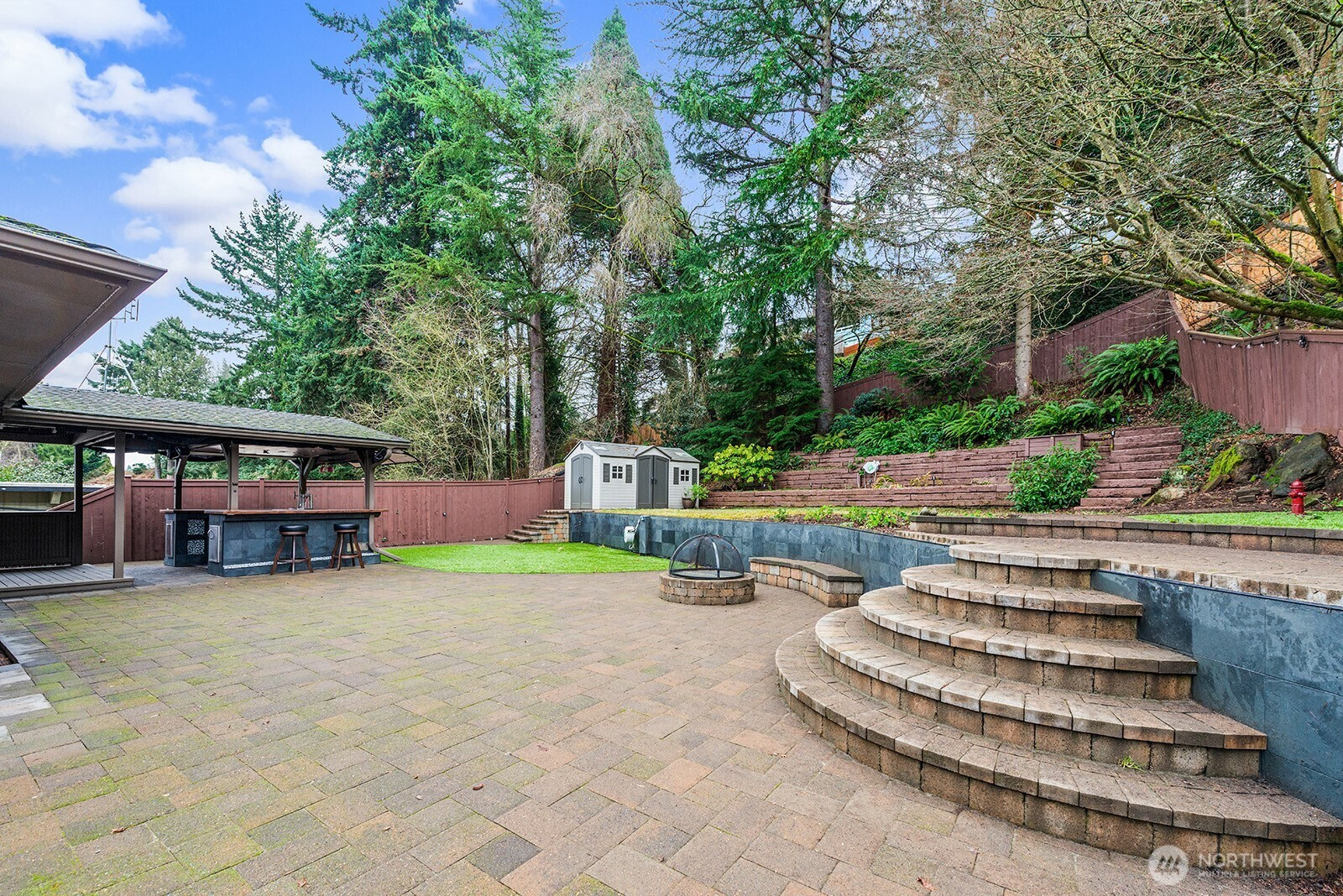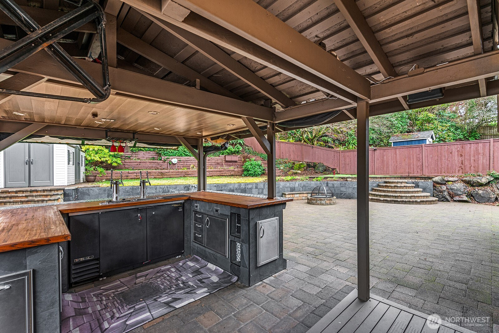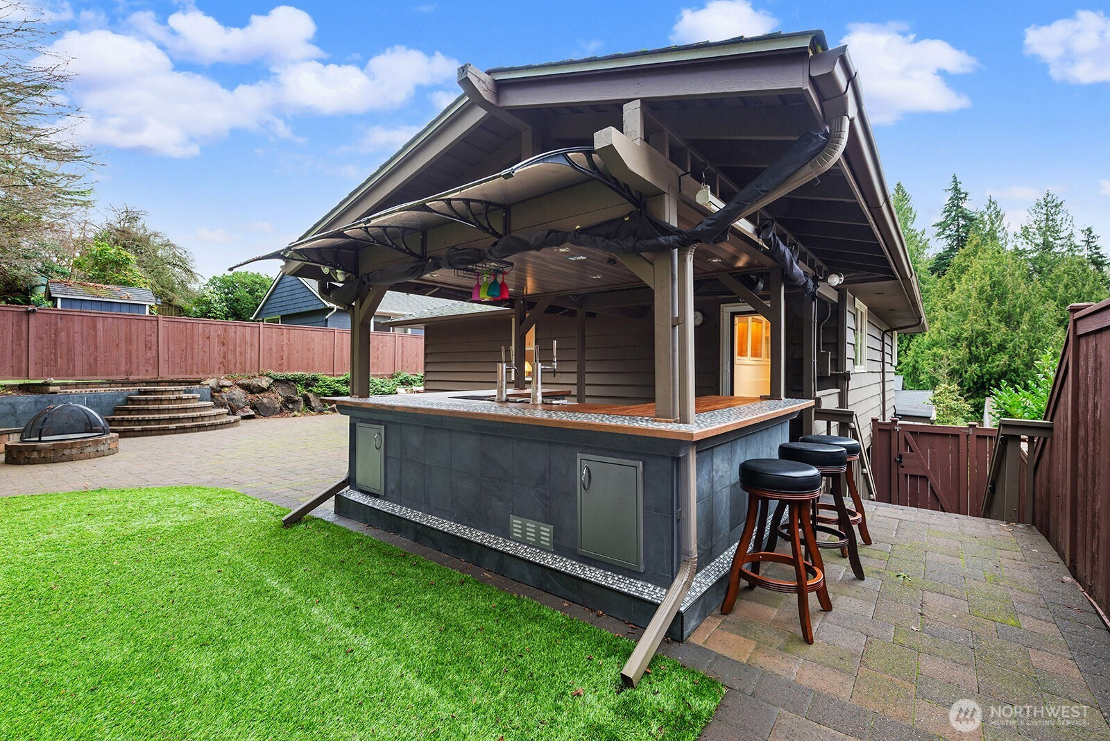 Blue Ridge Living Perfected. Discover the ultimate outdoor lifestyle through this versatile and expertly planned space. Spacious & updated 3-bedroom 1.75 bath gem invites you in with a Chef's Kitchen that truly shines, featuring ample storage, a butler's pantry, & a charming breakfast bar. The floor plan flows effortlessly into a sun-drenched living & formal dining area, anchored by gleaming hardwood floors. The Daylight lower level adds a layer of comfort with a cozy family room, a dedicated shop, newly updated 3/4 bath, and a quiet 3rd bedroom. *Outside* The fully fenced backyard is an absolute Showstopper!!! Lush landscape boasting a gorgeous patio, custom designed bar, built in fire pit, & space designed for entertaining! Privacy and territorial views !! EV Charger. 1-car garage, covered carport and off-street parking. Trails to Carkeek Park are located just down the street. Blue Ridge Community perks include shared pool, tennis courts, beach park, beach access, private park, social activities and more!