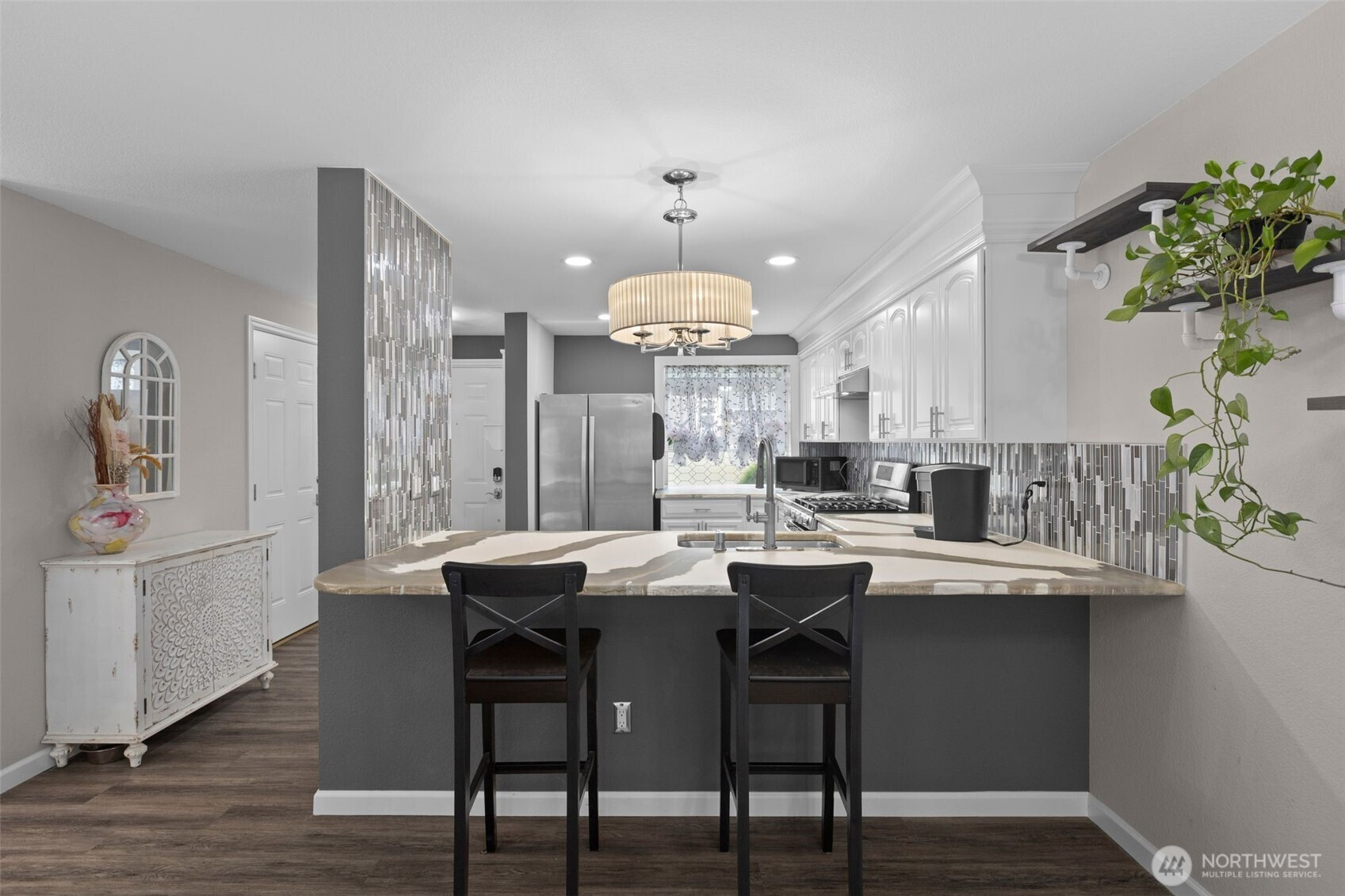 Step into this beautifully updated and truly unique townhome that perfectly blends comfort, style, and functionality. Rare for this type of property, enjoy your own fully fenced backyard—complete with a private patio and newer fencing—ideal for relaxing, entertaining. Inside, you’ll find a thoughtfully upgraded interior featuring modern flooring, fresh paint, and stylish, updated lighting throughout. The inviting living room is anchored by a cozy gas fireplace, creating the perfect space to unwind. The kitchen shines with stainless steel appliances, upgraded granite countertops, and a designer backsplash that adds a sleek, contemporary touch. Bathrooms have been tastefully updated to match the home’s modern feel, offering both comfort and sophistication. Additional highlights include newer vinyl windows for energy efficiency and a finished garage, providing extra versatility for storage, hobbies, or a home gym. Located in a well-maintained neighborhood just minutes from Totem Lake Shopping Center and the beauty of Lake Washington, this home offers both convenience and lifestyle. This one-of-a-kind townhome delivers low-maintenance living with the rare bonus of private outdoor space—don’t miss your opportunity to make it yours!