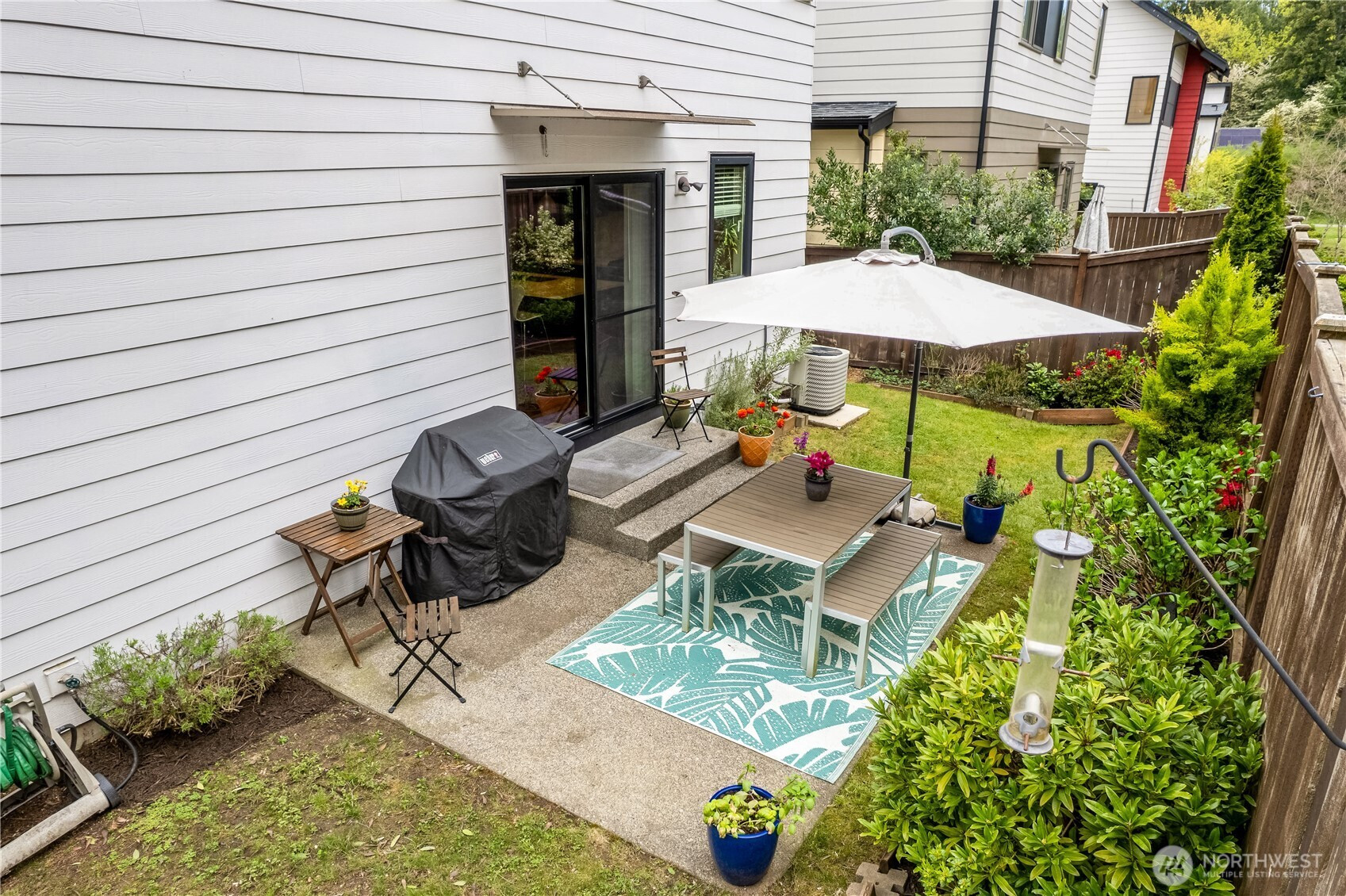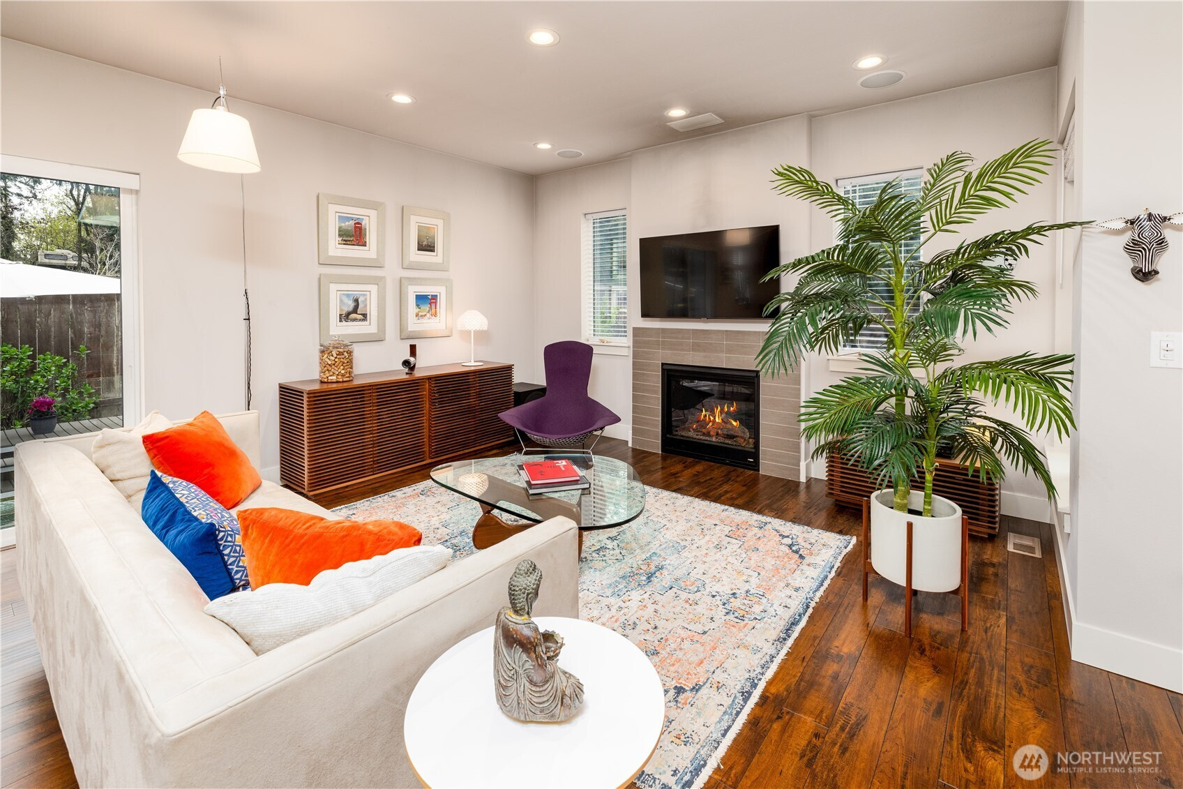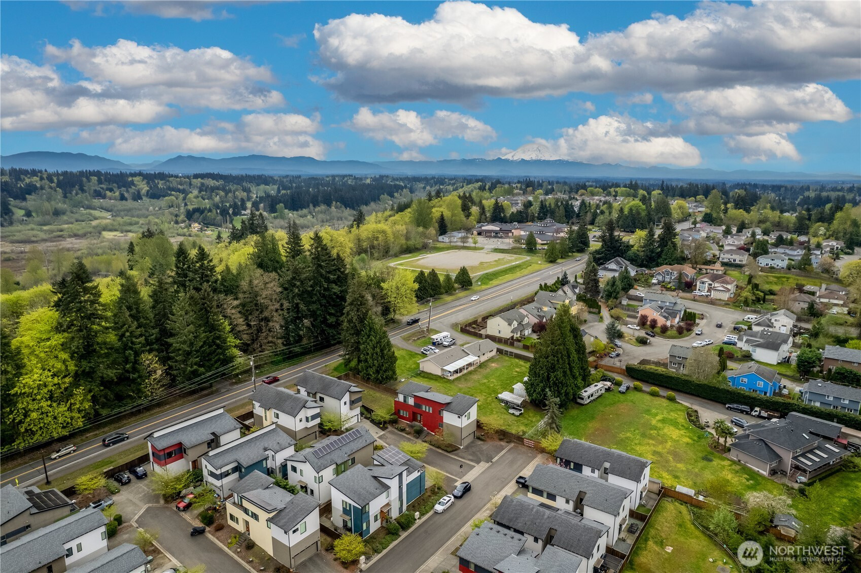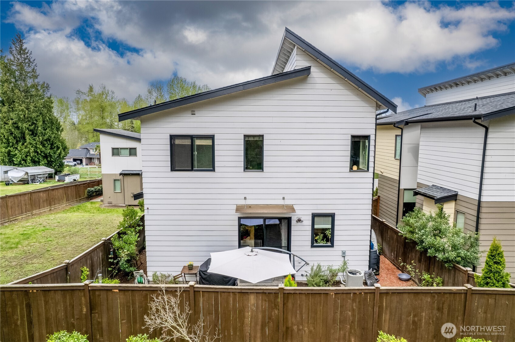 Stunning modern home that blends clean design with comfortable, efficient living. Thoughtfully laid out, it offers 3 bedrooms plus an upstairs loft and office nook, giving you the flexibility to work from home, host guests, or create a space that fits your lifestyle. The main level is both functional and inviting, centered around a well-designed kitchen featuring pull-down shelving, double drawers, and a generous walk-in pantry. It opens seamlessly to the living and dining areas, where large windows bring in plenty of natural light and create a warm, easygoing atmosphere for both everyday living and entertaining. A cozy gas fireplace keeps things comfortable in the winter, while A/C ensures you stay cool through the summer months. Step outside to a private patio and garden space; perfect for relaxing evenings, casual get-togethers, or a quiet morning coffee. Located just 20 minutes from Seattle–Tacoma International Airport, you’ll enjoy a convenient commute without sacrificing a sense of retreat. Nearby parks, along with favorites like Trader Joe’s, local shops, and dining, make everyday living simple and enjoyable. Modern, functional, and easy to live in, this home is ready to welcome you.