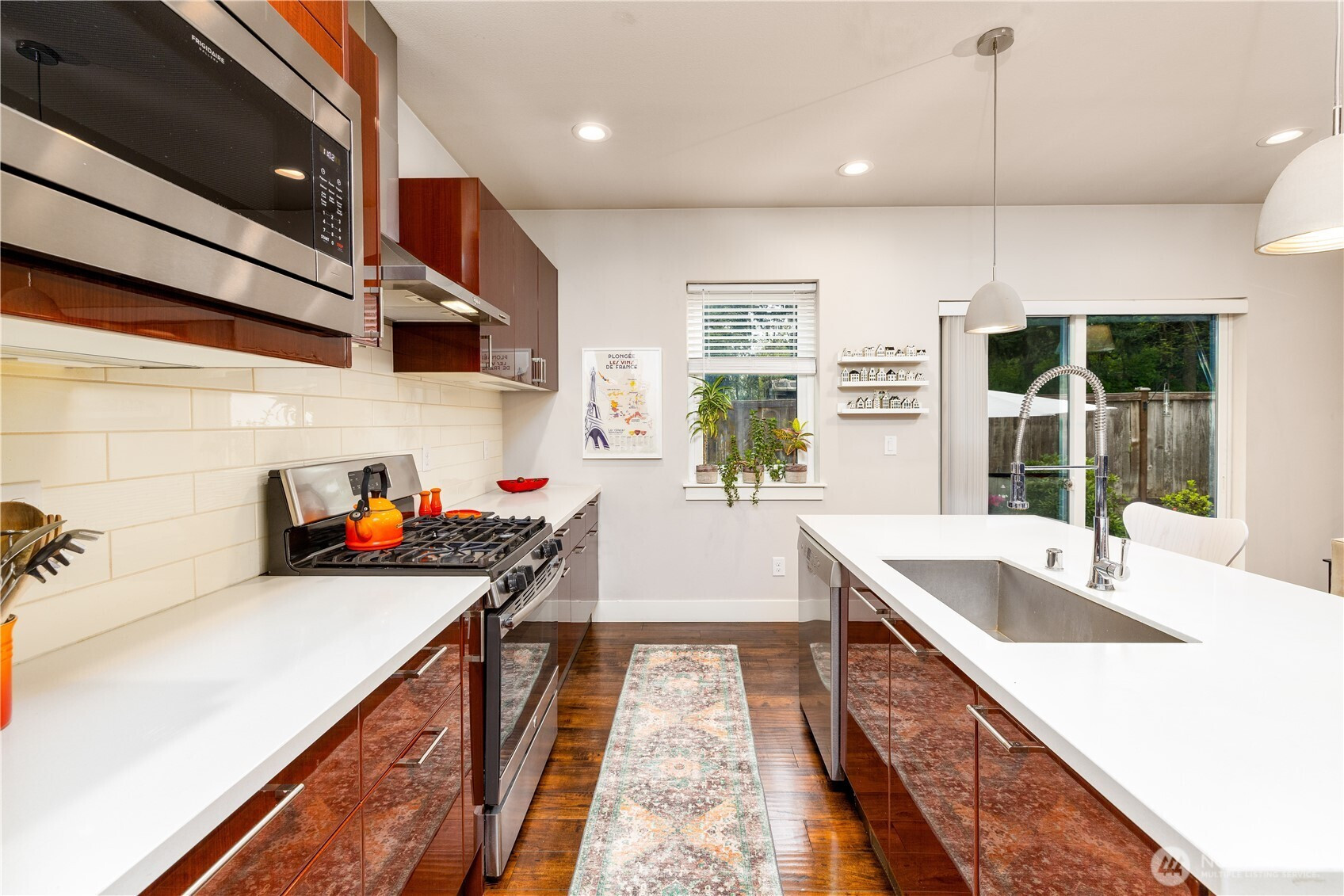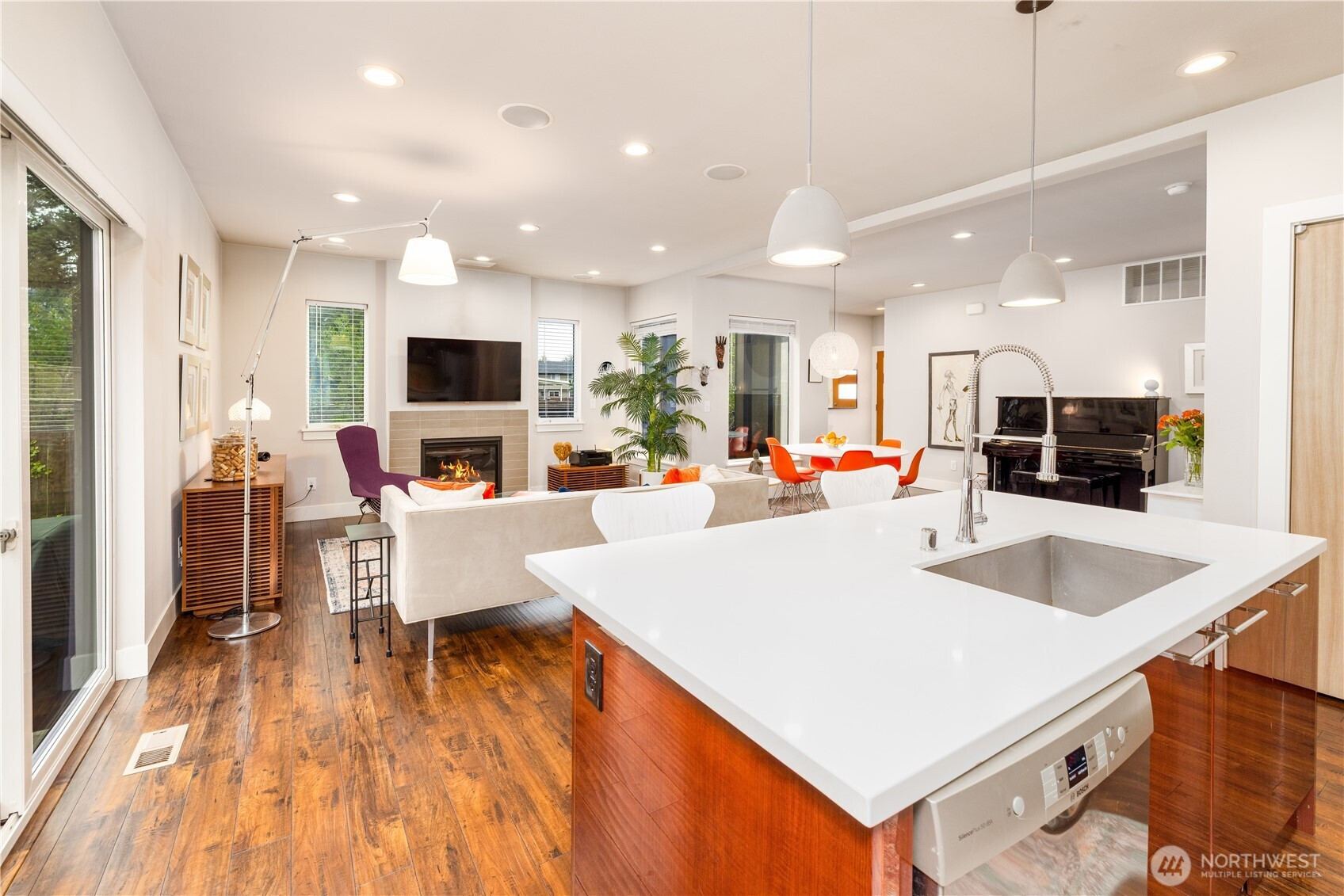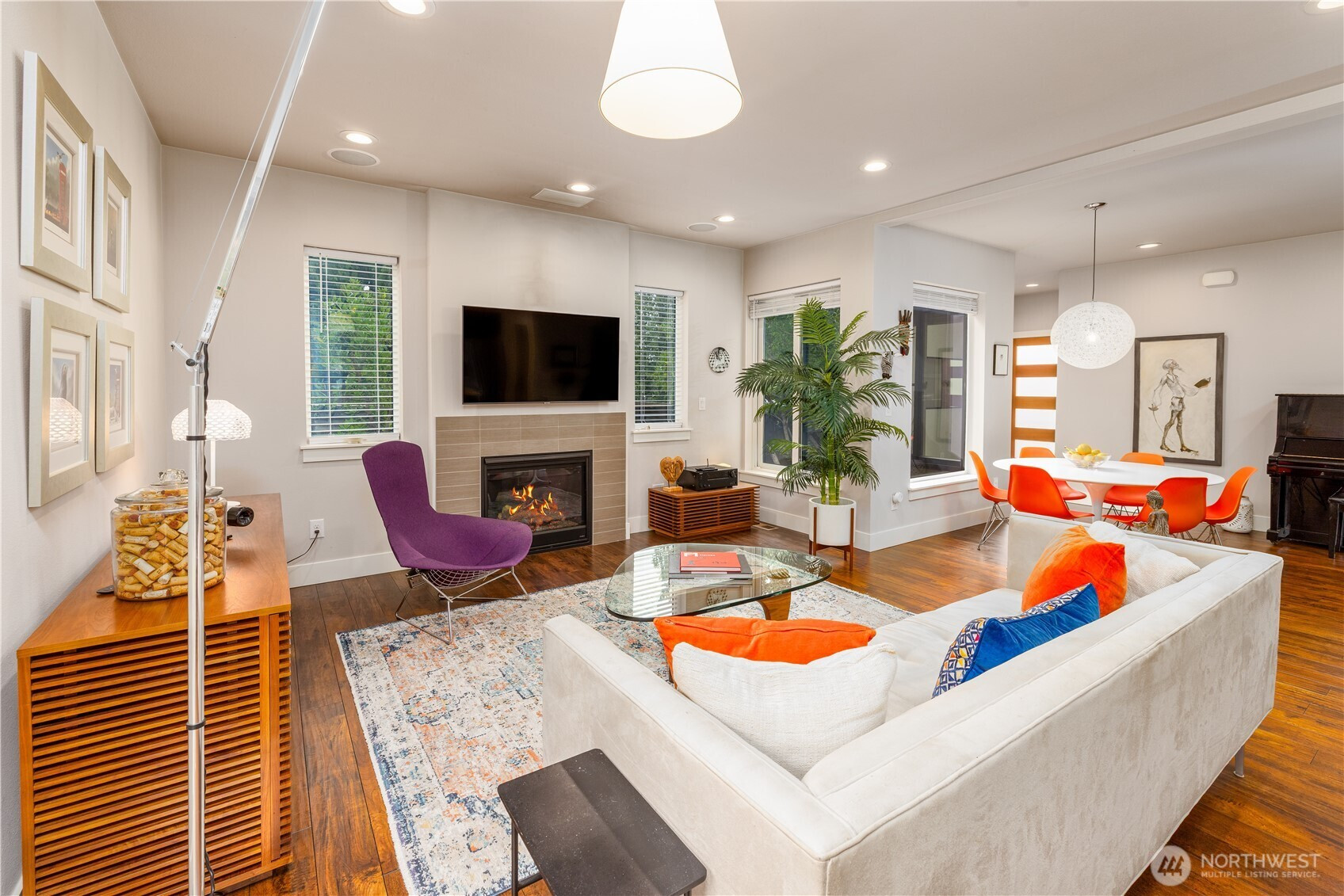 Stunning modern home that blends clean design with comfortable, efficient living. Thoughtfully laid out, it offers 3 bedrooms plus an upstairs loft and office nook, giving you the flexibility to work from home, host guests, or create a space that fits your lifestyle. The main level is both functional and inviting, centered around a well-designed kitchen featuring pull-down shelving, double drawers, and a generous walk-in pantry. It opens seamlessly to the living and dining areas, where large windows bring in plenty of natural light and create a warm, easygoing atmosphere for both everyday living and entertaining. A cozy gas fireplace keeps things comfortable in the winter, while A/C ensures you stay cool through the summer months. Step outside to a private patio and garden space; perfect for relaxing evenings, casual get-togethers, or a quiet morning coffee. Located just 20 minutes from Seattle–Tacoma International Airport, you’ll enjoy a convenient commute without sacrificing a sense of retreat. Nearby parks, along with favorites like Trader Joe’s, local shops, and dining, make everyday living simple and enjoyable. Modern, functional, and easy to live in, this home is ready to welcome you.
