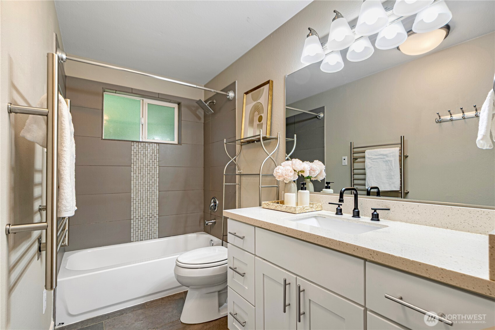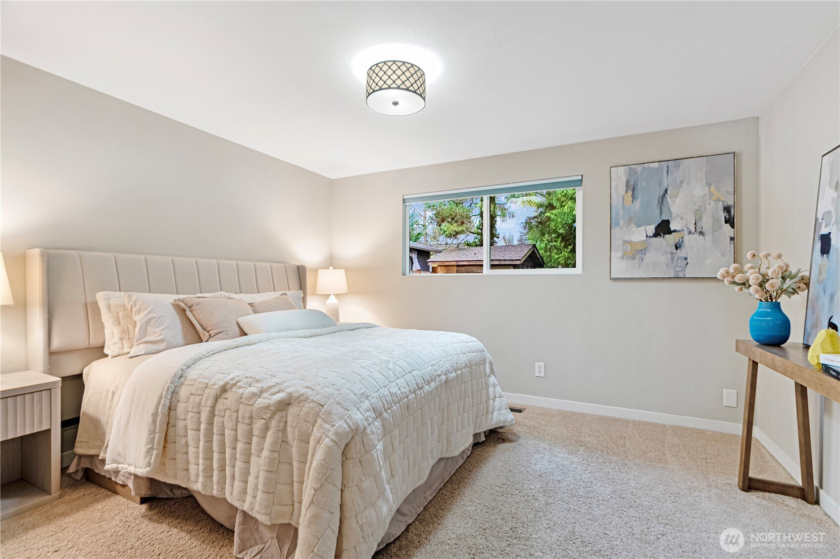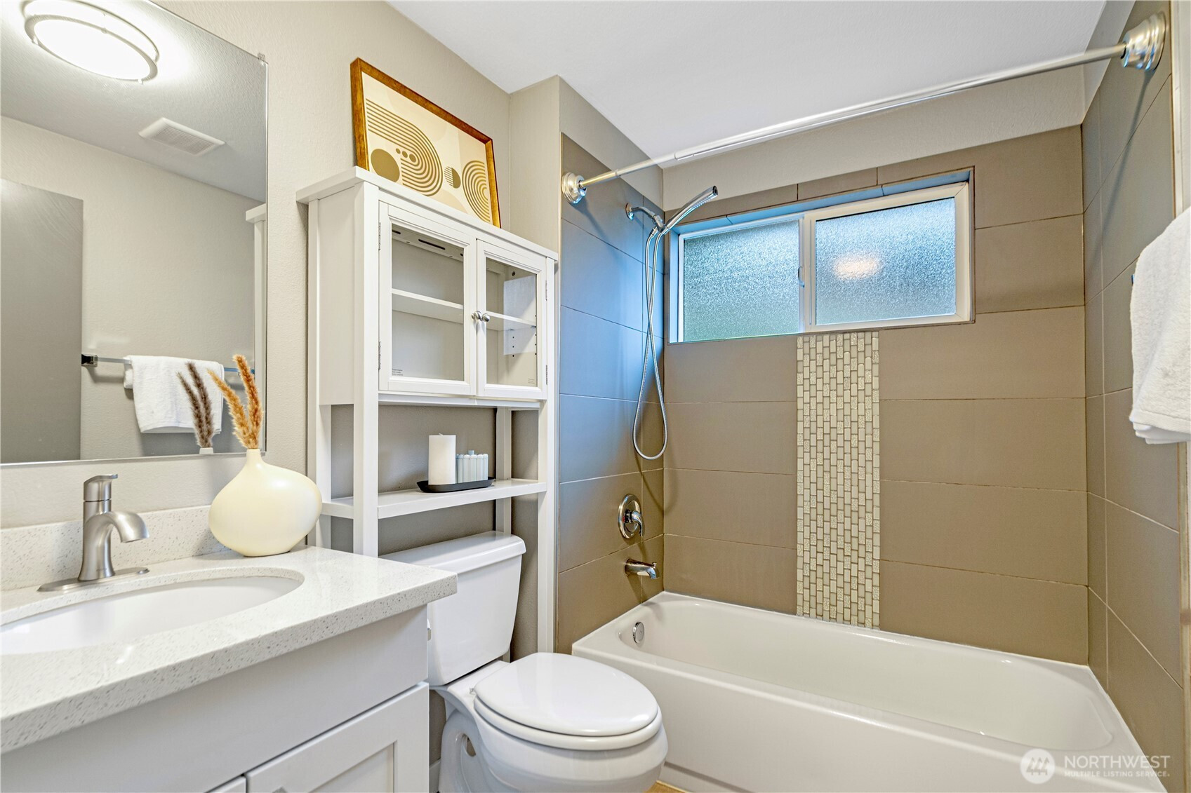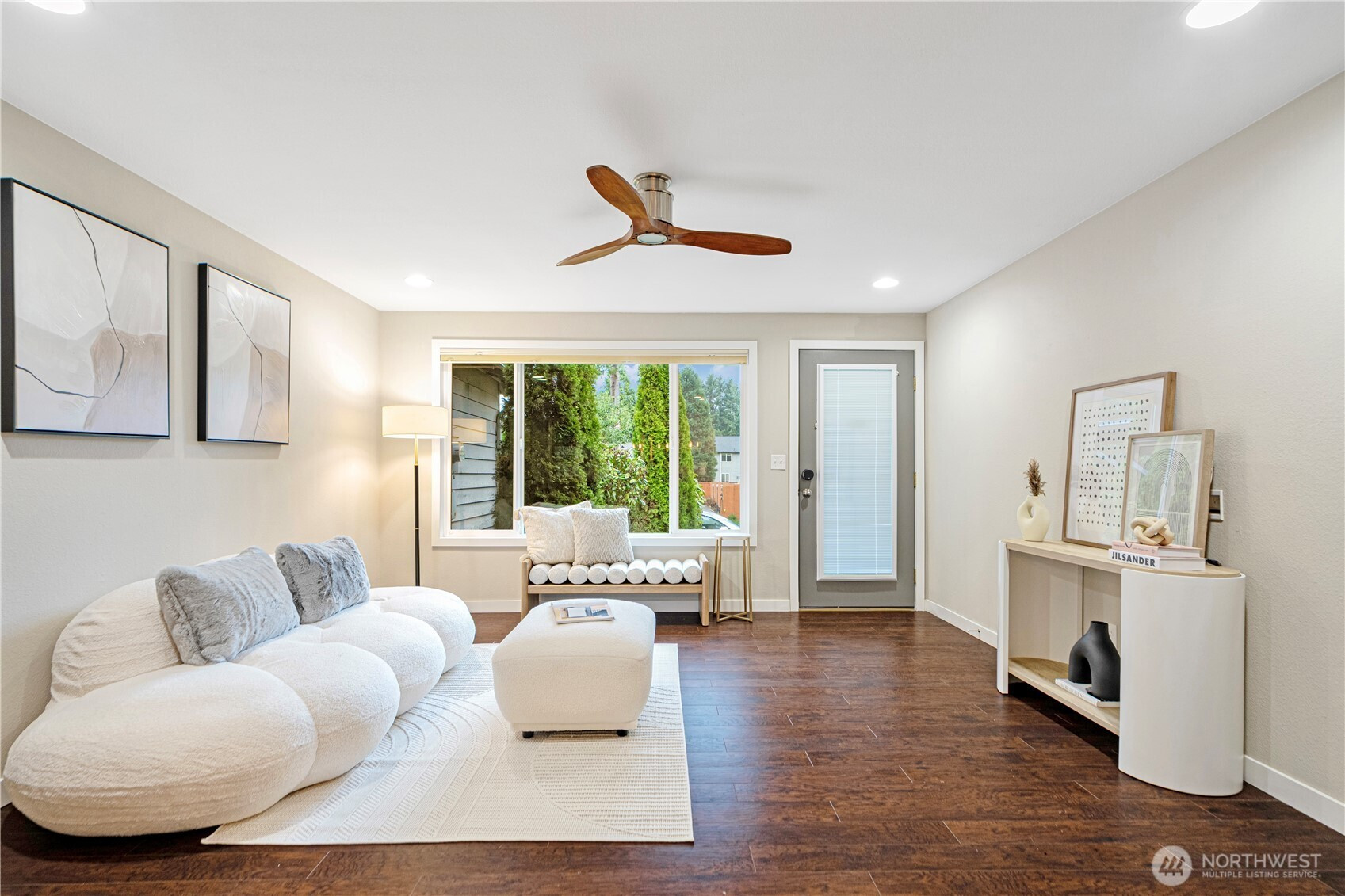 Location, location, location! Charming rambler in a fantastic Kirkland neighborhood! This move-in-ready home features fresh interior paint and a remodeled kitchen with white quartz countertops, glass-tile backsplash, shaker cabinets, and newer stainless-steel appliances. Enjoy two full bathrooms with designer tile and matching quartz counters. The family room showcases a tiled fireplace, creating a warm and inviting space. Additional upgrades include a permitted 4th room, central A/C, 2-car garage with EV charging. Amazing location: minutes to I-405, EvergreenHealth, Juanita Beach, and less than a mile to The Village at Totem Lake’s shopping and dining scene. Great Lake Washington School District, walking distance to the Park & Ride!
