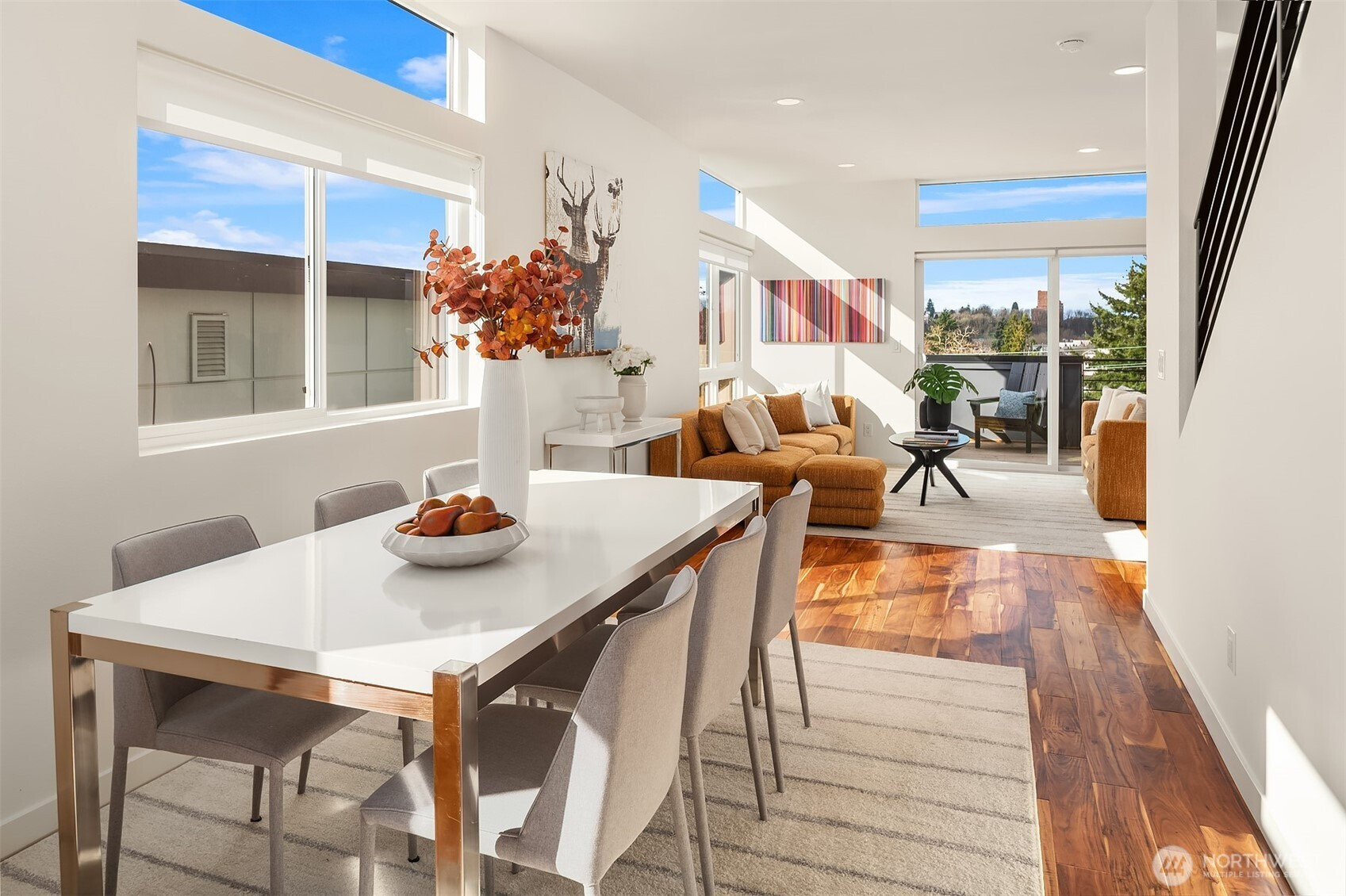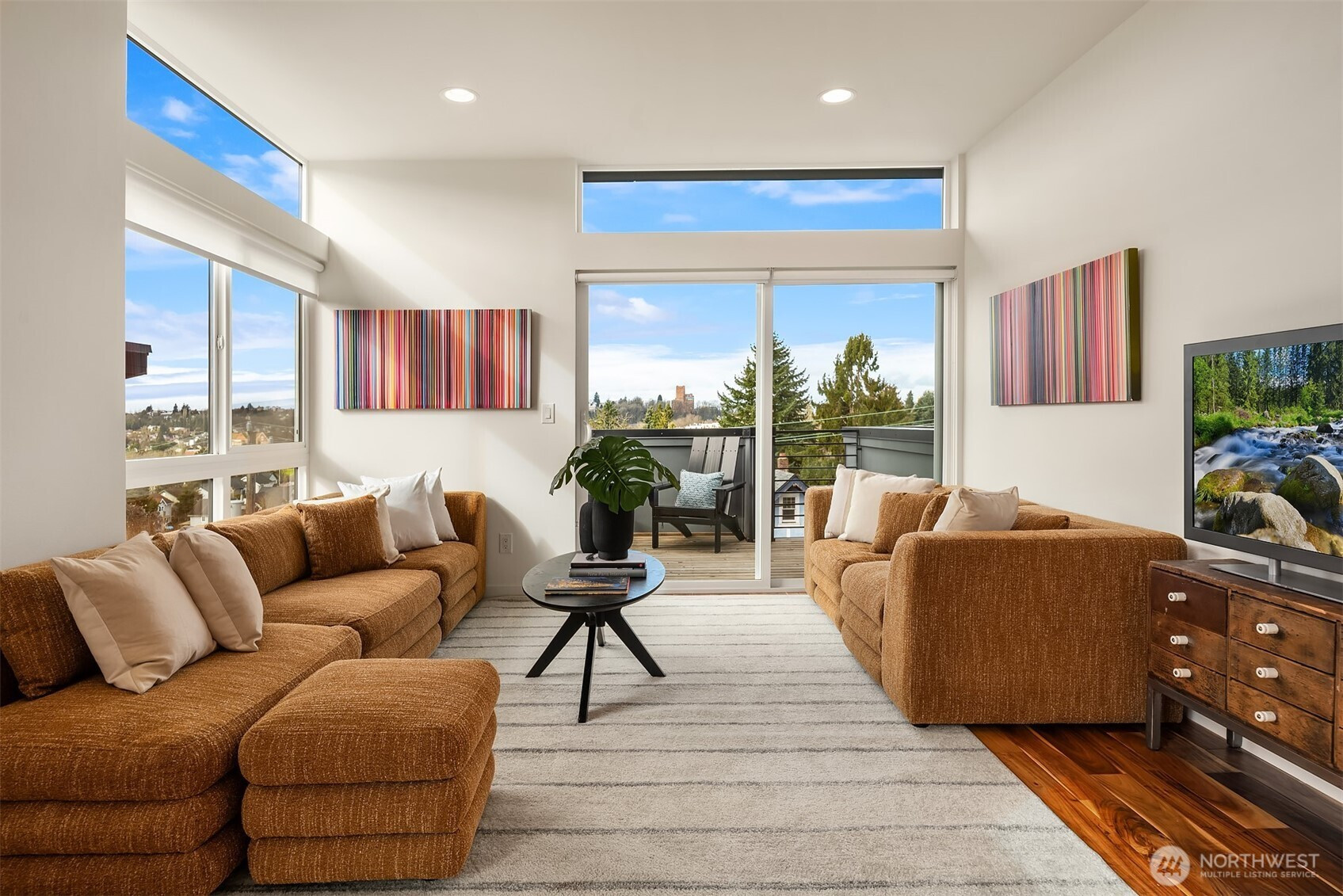 Bright, modern townhouse living with Downtown Seattle views, abundant natural light, and outdoor space you’ll actually use. The home’s top-floor living level is where everything comes together — 9’ ceilings, large windows, and southern exposure fill the space with light while framing Downtown Seattle skyline views. Sliding doors open directly to a spacious deck off the living room, creating an easy indoor-outdoor connection for grilling, relaxing, or entertaining. One level above, a rooftop deck offers an additional outdoor retreat and another place to enjoy the city views. The open kitchen features quartz countertops, stainless appliances, island seating, and pantry storage, flowing naturally into the dining and living spaces. Large bedrooms provide flexibility for guests, work-from-home space, or everyday living. Fresh interior paint and new carpet make the home feel clean and move-in ready. A convenient second-floor entry directly from the parking area makes daily comings and goings easy. The home also has a surprisingly private feel compared to many townhomes, creating a comfortable sense of separation from neighboring homes. Located near Judkins Park with quick access to I-90, commuting is easy to Downtown Seattle, Bellevue, and the Eastside tech corridor. The nearby Judkins Park Light Rail Station and multiple Metro bus routes provide excellent connectivity throughout the city. Modern design, great light, outdoor living, and strong transit, what's not to love!