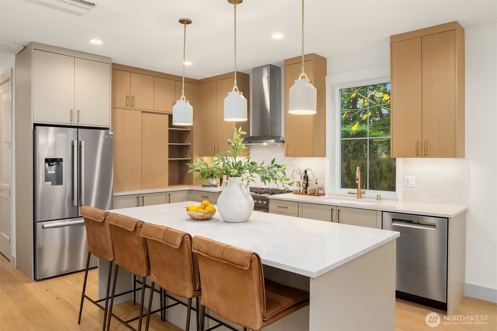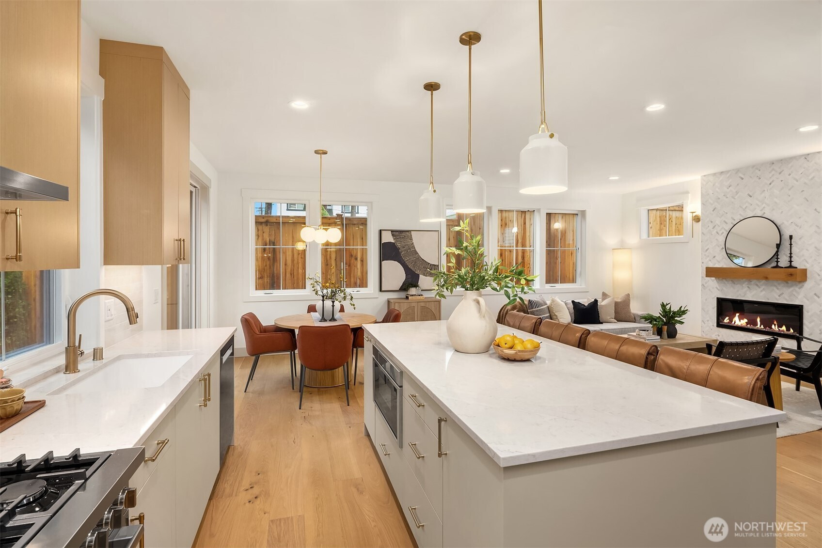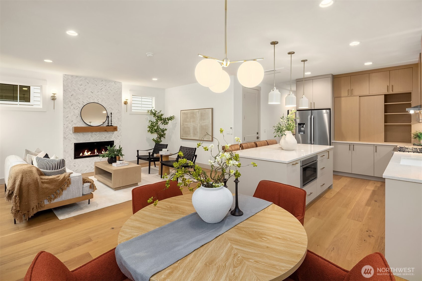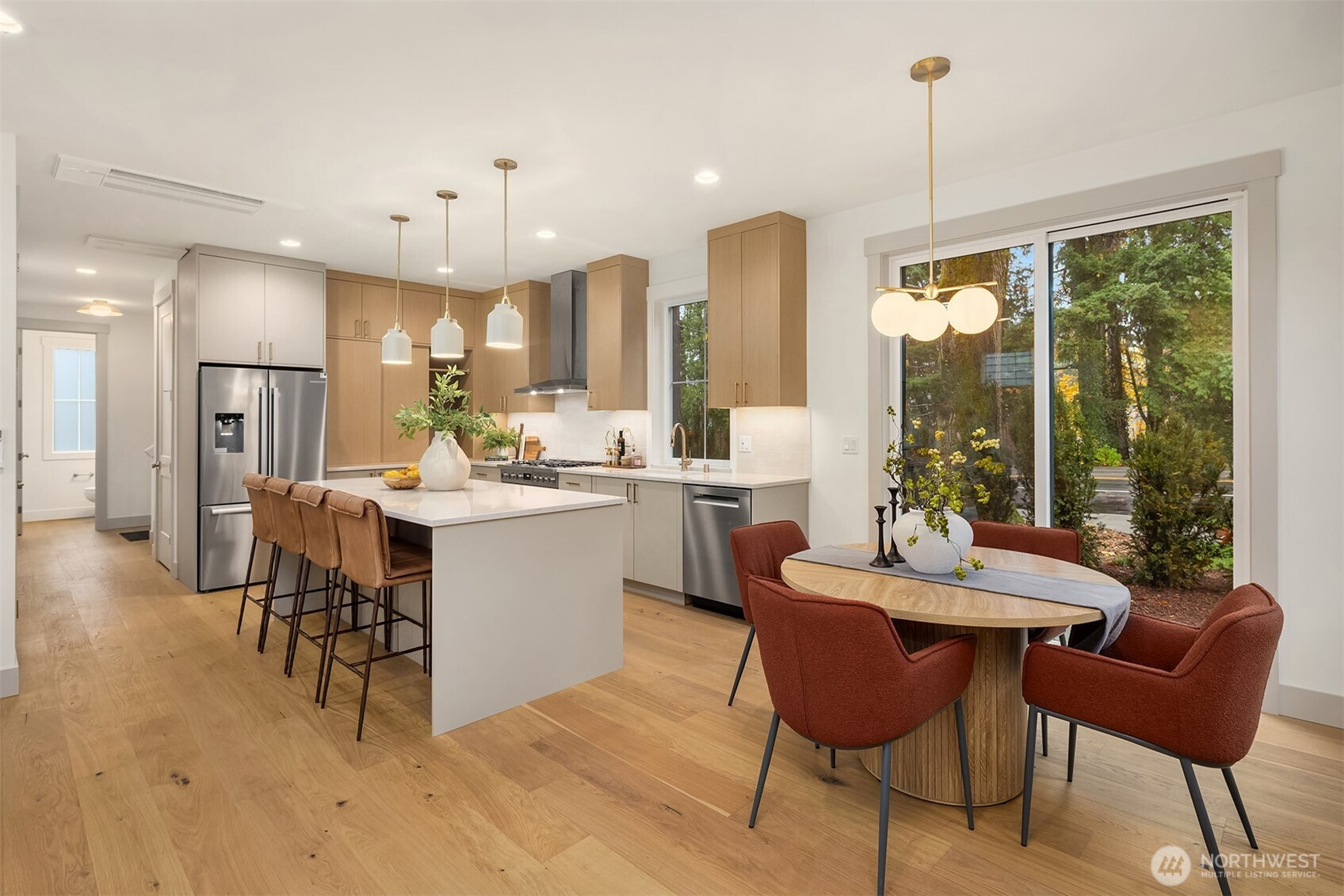 Welcome home to your new charming cottage in Kirkland's North Rose Hill Neighborhood. Experience modern new construction, featuring an open layout and a well-appointed kitchen offering abundant storage and spacious island. Main level features seamless living and dining spaces plus a convenient powder room - perfect for guests. Fireplace with custom tile creates cozy & inviting living area. Upstairs, find a spacious primary suite with luxurious walk-in shower and dual vanity. Two additional bedrooms, full bath and office nook complete the second level. Enjoy the ease of a private garage plus additional designated parking spot. Convenient access to downtown Kirkland, I-405, and 520 make this the perfect place to call home! ** Note, home is on new private lane, use 8557 132nd Ave NE for GPS Directions**
