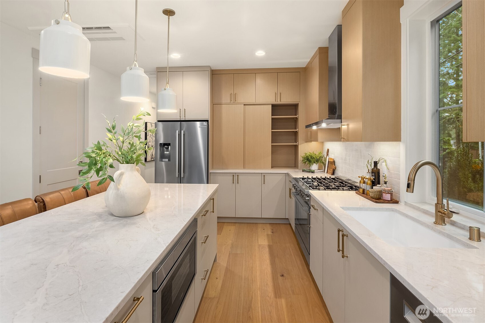 Welcome home to your new charming cottage in Kirkland's North Rose Hill Neighborhood. Experience modern new construction, featuring an open layout and a well-appointed kitchen offering abundant storage and spacious island. Main level features seamless living and dining spaces plus a convenient powder room - perfect for guests. Fireplace with custom tile creates cozy & inviting living area. Upstairs, find a spacious primary suite with luxurious walk-in shower and dual vanity. Two additional bedrooms, full bath and office nook complete the second level. Enjoy the ease of a private garage plus additional designated parking spot. Convenient access to downtown Kirkland, I-405, and 520 make this the perfect place to call home! ** Note, home is on new private lane, use 8557 132nd Ave NE for GPS Directions**