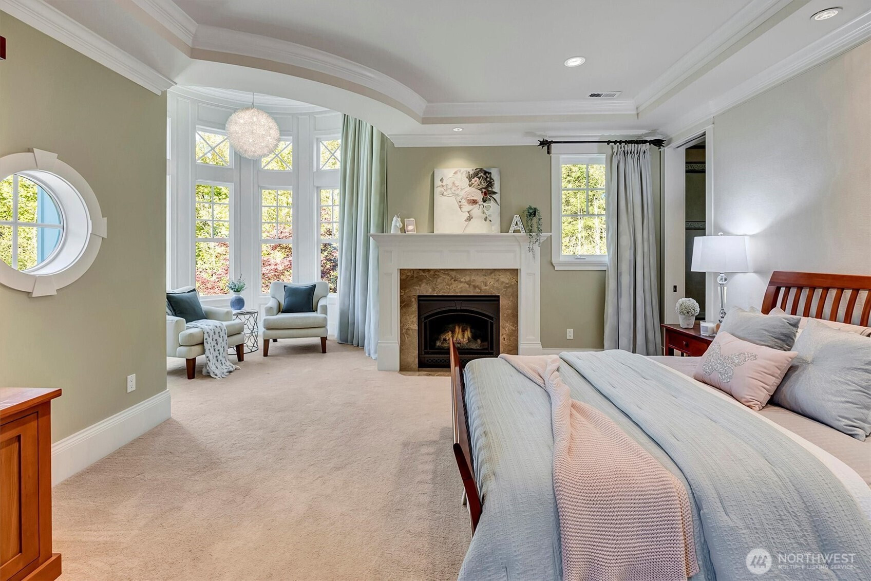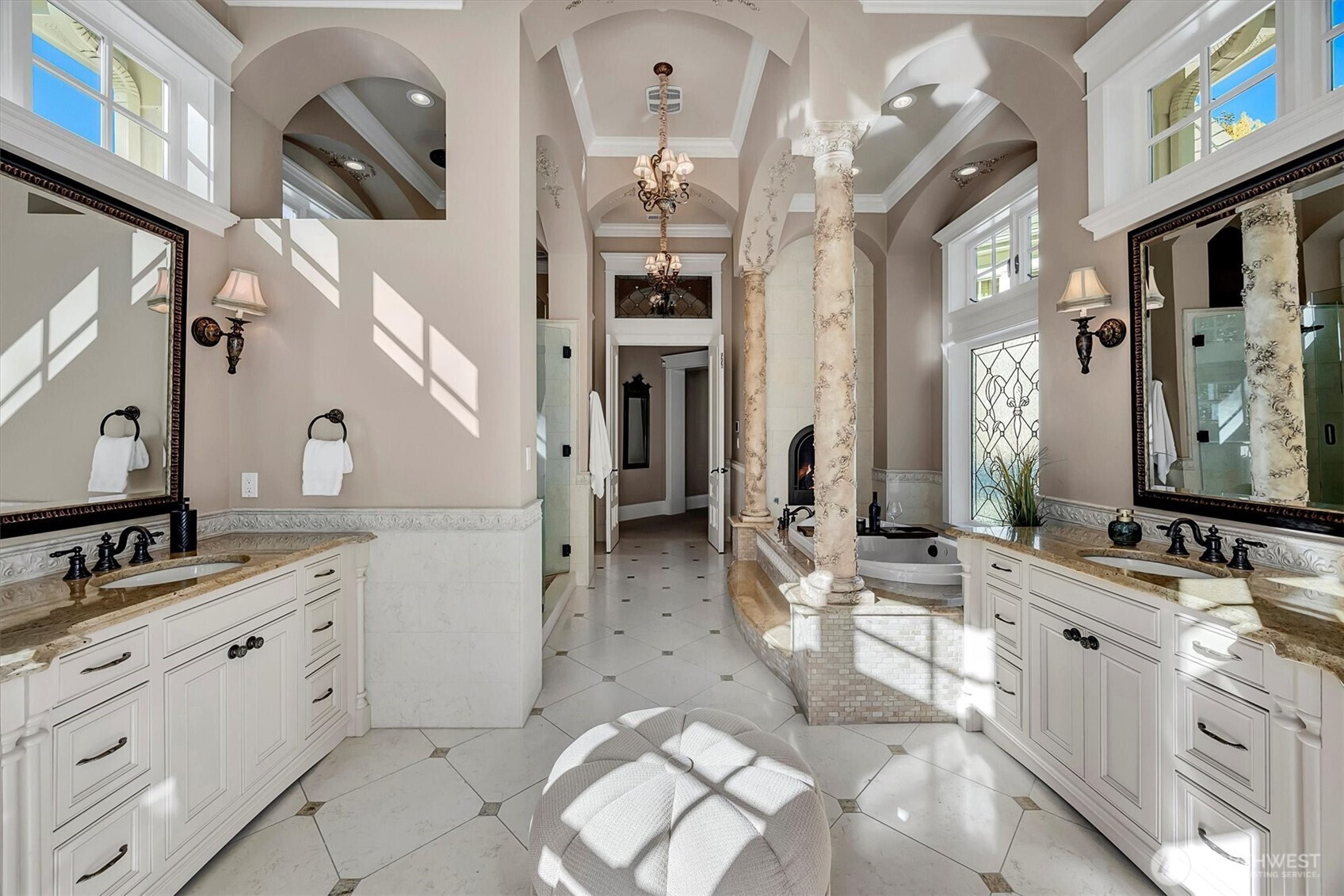 European-inspired grandeur defines this magnificent gated estate, privately set on five+ landscaped and wooded acres. Encompassing approximately 10,000 square feet, the main residence showcases award-winning design by Parmenter Homes, inspired by timeless East Hamptons style architecture. Every detail has been meticulously curated, from the rich Brazilian cherry floors to the extensive custom millwork and impeccable finishes throughout. Designed for both grand entertaining and comfortable living, the main home features four spacious ensuite bedrooms, multiple fireplaces that create warmth and ambiance, a private den and refined library, and a large gym. Two wine cellars offer ideal storage and display for the discerning collector. The chef’s kitchen is outfitted with top-of-the-line appliances and flows seamlessly into expansive living and entertaining spaces. A state-of-the-art theatre and game room provides an exceptional retreat and could easily function as a private M-I-L suite. An elevator ensures access to all levels, while a smart home system integrates security and audio throughout the property. 8 car garage parking is perfect for the auto enthusiast. 1,300+ square foot carriage home offers flexibility for guests, extended living, or added workspace. Private and secure, yet ideally located close to vibrant city amenities and wine country, this estate presents a rare opportunity to own a remarkable property where craftsmanship, comfort, and sophistication meet.