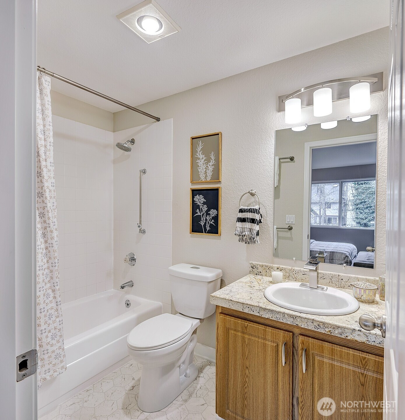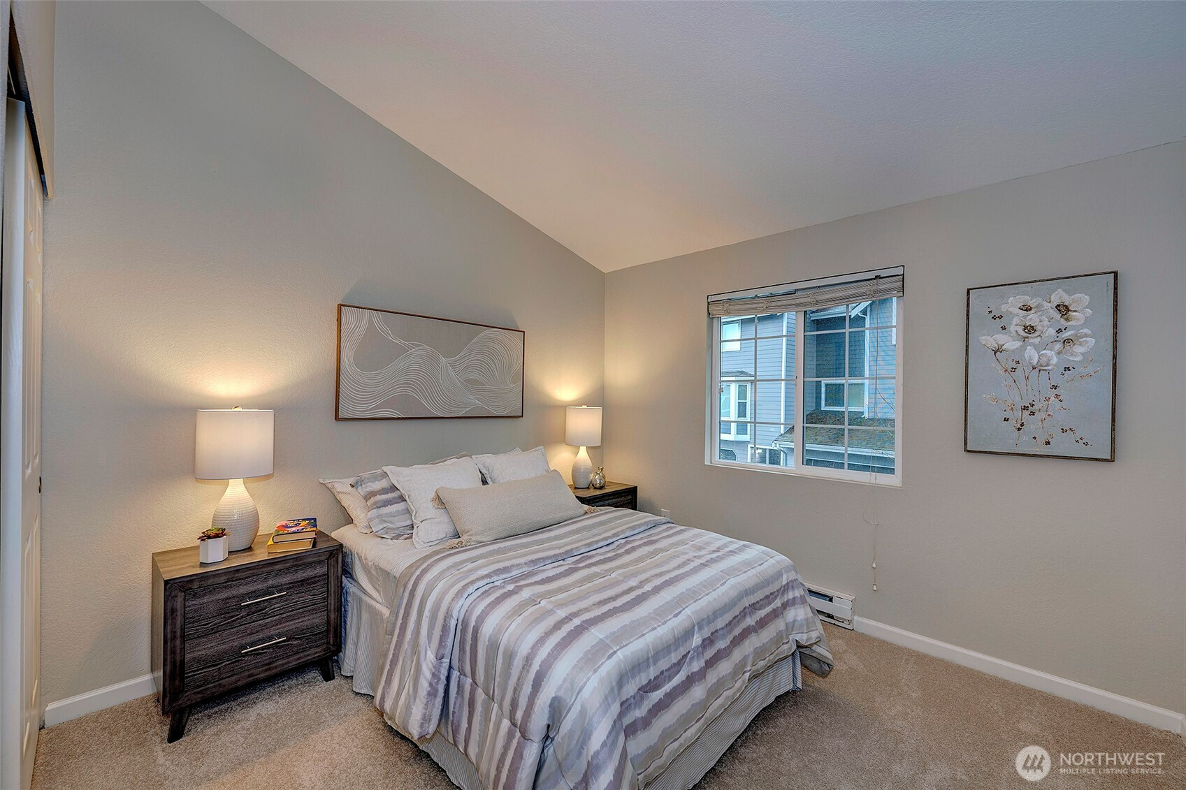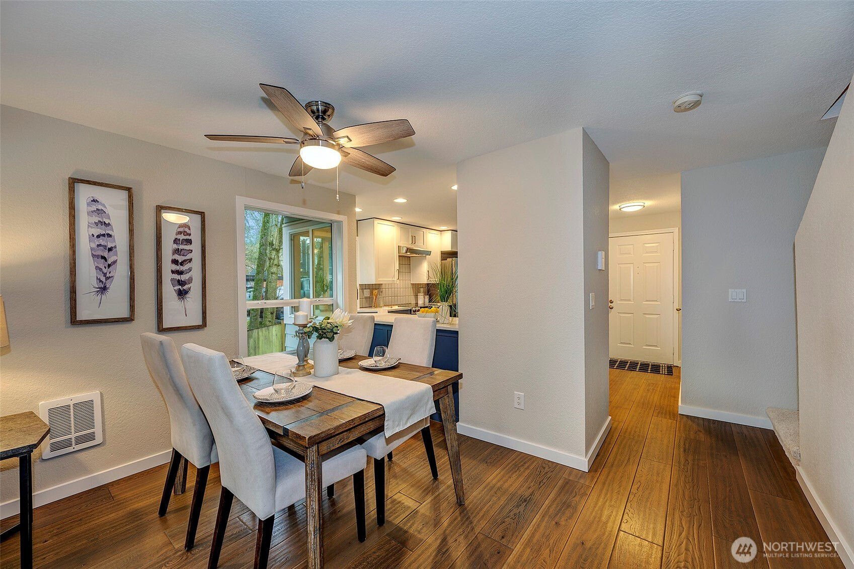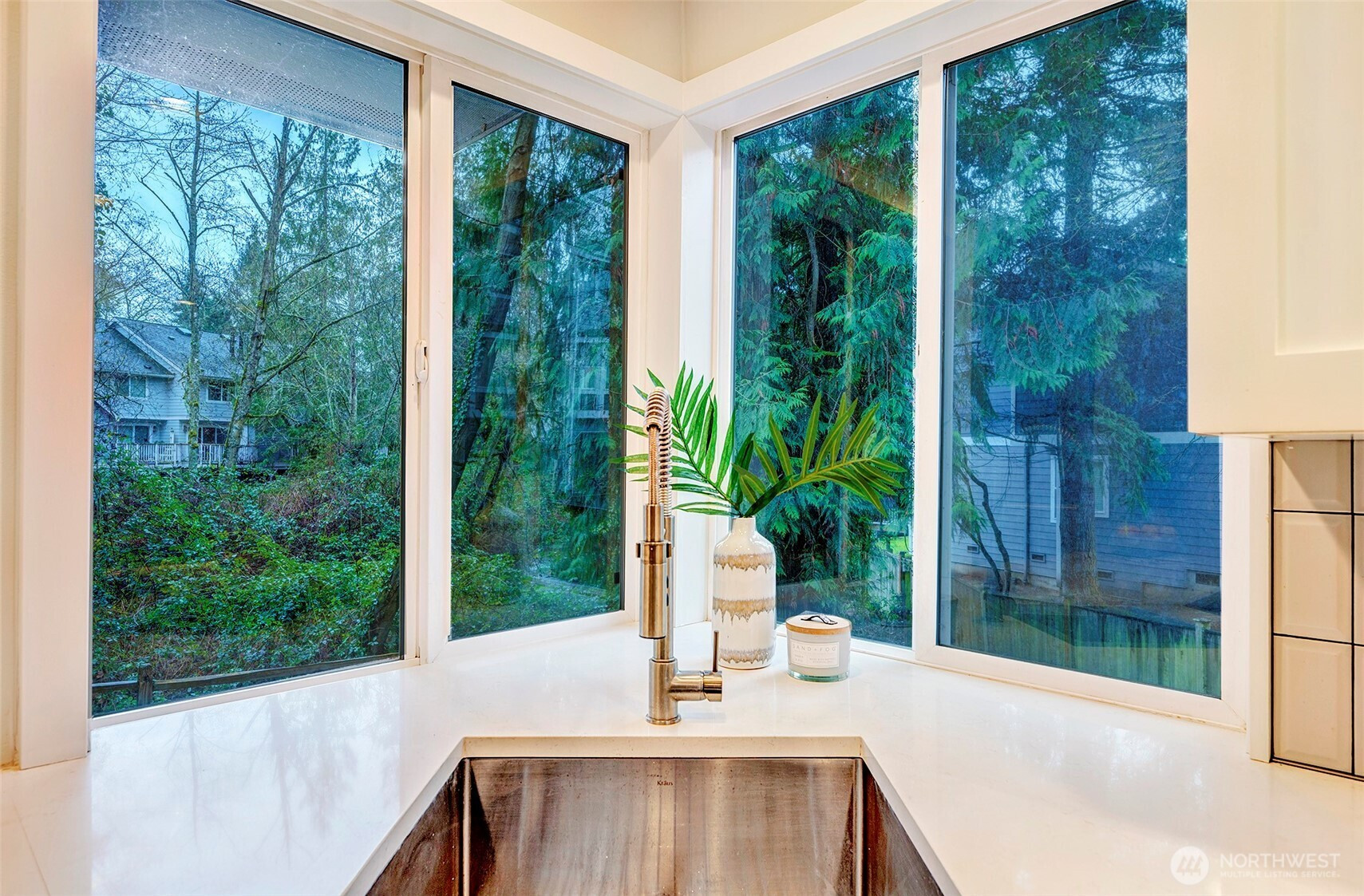 Welcome home to this beautifully updated 3-bed, 2.5-bath, end-unit townhome in Kirkland Village. The kitchen features quartz countertops, tile backsplash, SS appliances, & engineered hardwood floors throughout the main level. The open living & dining area offers a cozy wood-burning fireplace with built-ins & opens to a spacious deck overlooking a serene greenbelt & creek. 1/2 bath & laundry complete the main level. Upstairs are 3 beds & 2 full baths. Updates include new carpet, new vinyl flooring in all baths, & all new paint. An unbeatable location close to shopping, dining, transit, & freeways - a commuter’s dream. Desirable LW Schools with a strong, well-managed HOA & 2 designated parking spaces. A must see!