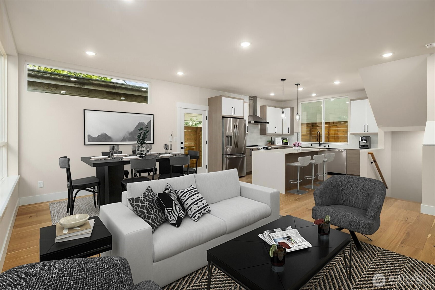 Modern living hits different when you’ve got city skylines & mountain peaks as your backdrop—best soaked in from a rooftop deck built for golden hours & late-night stargazing w/friends. Step inside to soaring ceilings, sleek finishes & hardwood floors that set a stylish tone. The chef’s kitchen w/quartz island & premium appliances is made for taco nights & dinner parties. The sun-drenched owner’s suite delivers spa-day energy w/expansive windows & luxe finishes. Zoned heating + A/C keep comfort dialed year-round. Oversized EV-ready garage. North Beacon's restaurants, coffee spots & the Light Rail station are just a short stroll away—connected to the best of Seattle. *Ask your broker about Sellers credit to Buyer!*