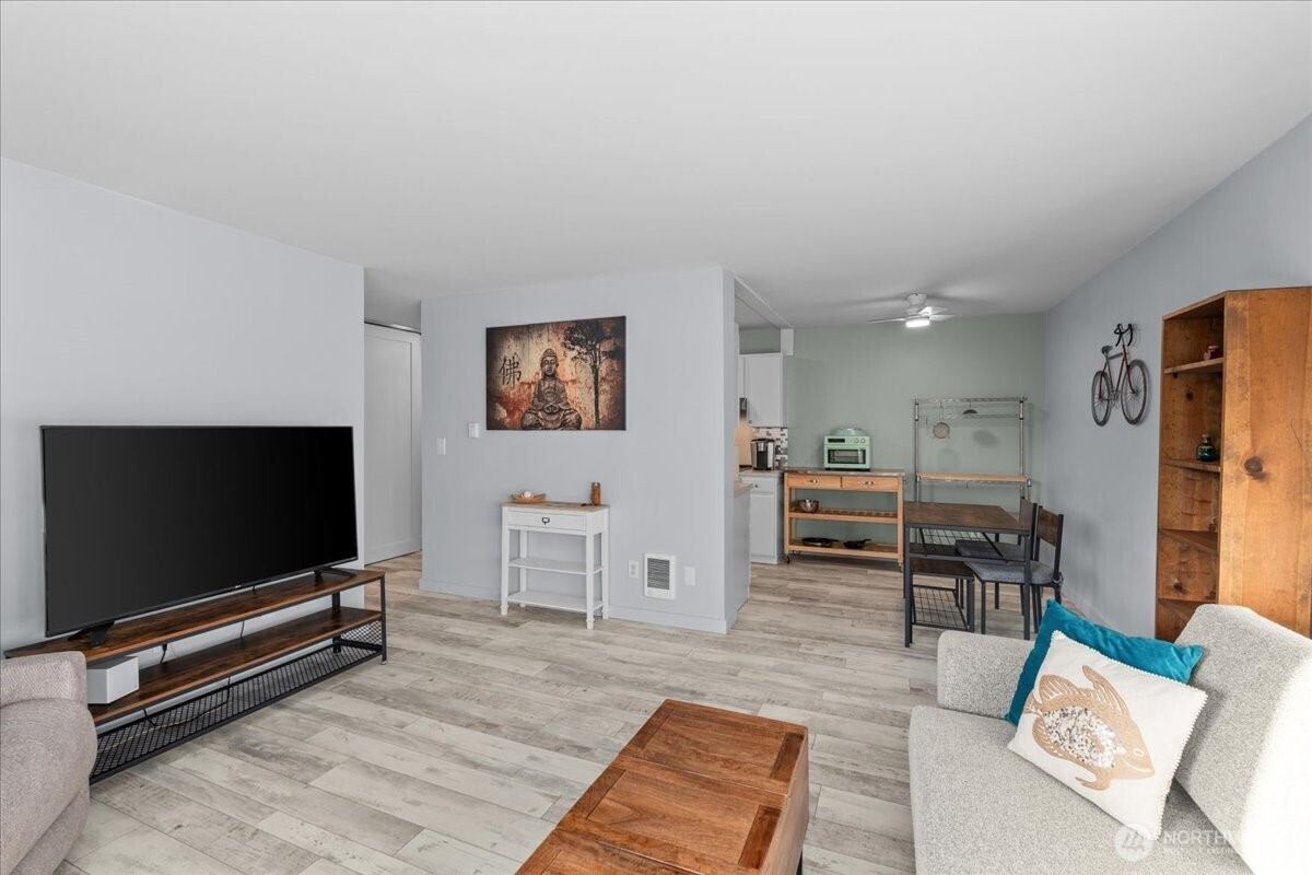(503) 893-8874Experience lakeside living at Bitter Lake Village! This beautifully updated 1-bed, 1-bath condo offers a bright, open layout with new luxury vinyl plank flooring and stylish modern finishes. Enjoy your private balcony with partial lake and territorial views. Community amenities include a sandy beach for paddleboarding and canoeing, sport court, sauna, outdoor heated pool with cabana, and an elegant club room with pool table, bar, and gathering space. Includes storage and convenient parking near entry.