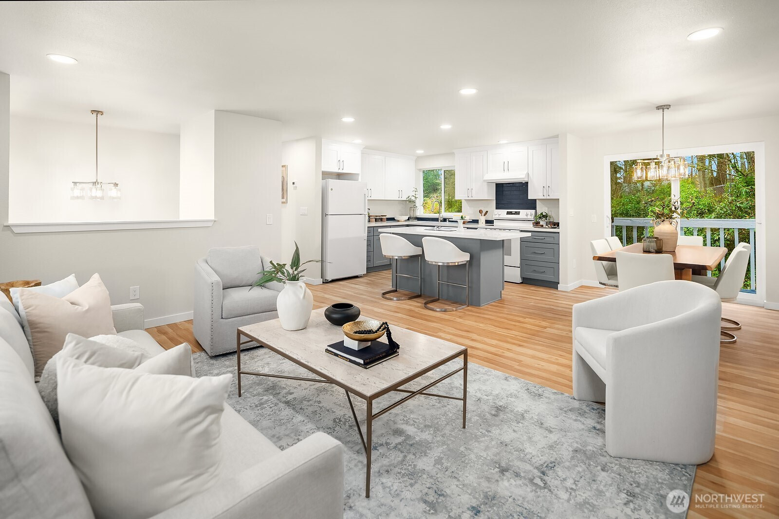 Stunning renovated home in a desirable Renton neighborhood! This move-in ready 4-bedroom, 2-bath residence features beautiful hardwood flooring throughout, creating a warm and modern living environment. A spacious entertainment room offers exceptional flexibility and can easily function as a second primary suite, allowing the home to live comfortably as a 5-bedroom layout. The fully updated kitchen showcases brand-new appliances, while new windows bring in abundant natural light and enhance energy efficiency throughout the home. Step outside and enjoy the rare advantage of having a community park right next door—perfect for morning walks, outdoor activities, or relaxing in the open green space just steps from your home. Conveniently located near shopping, dining, schools, and major commuting routes, this home offers the perfect blend of comfort, convenience, and lifestyle. A rare opportunity you won’t want to miss!