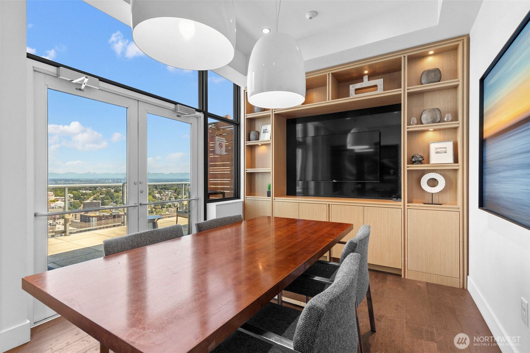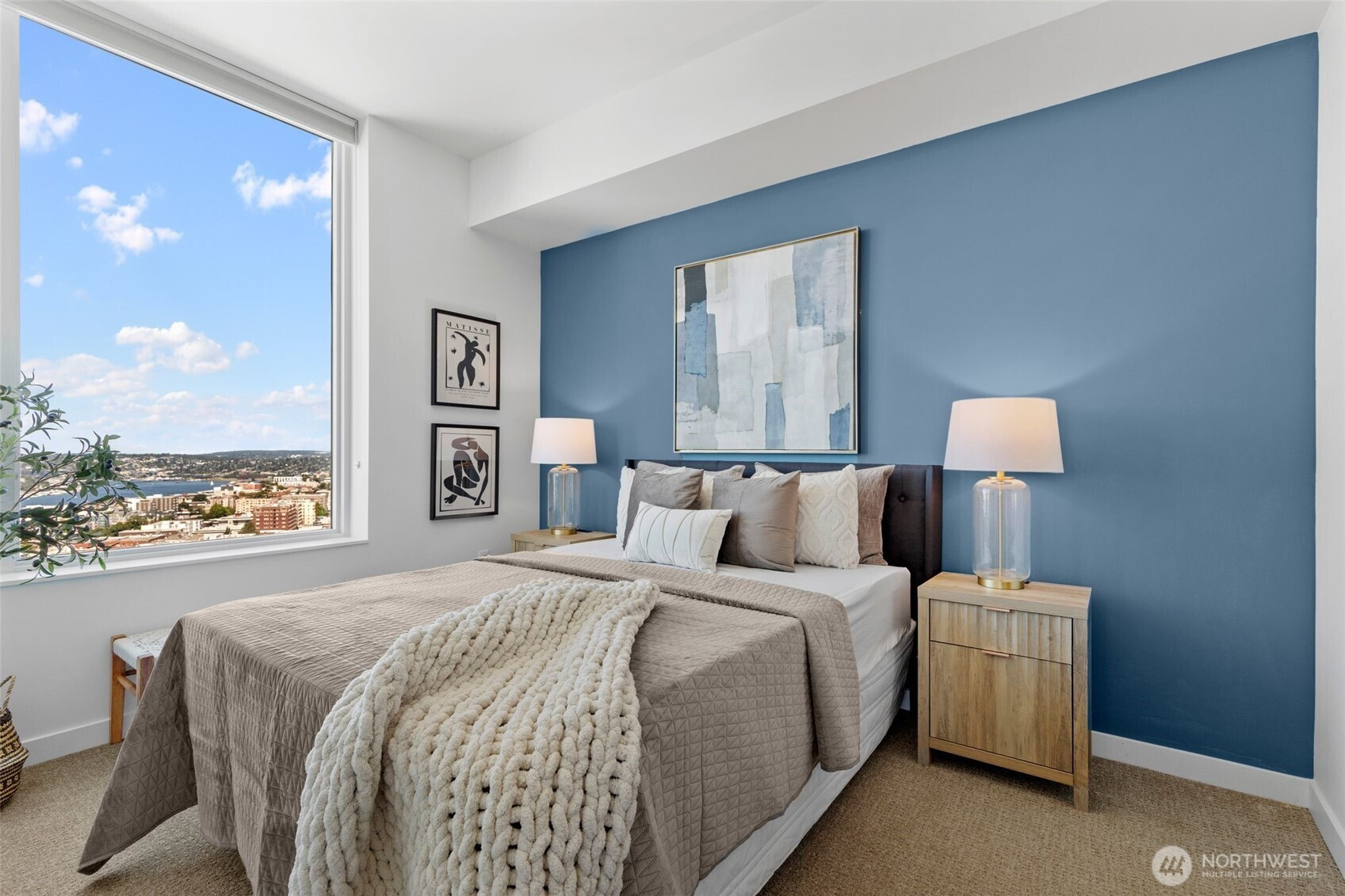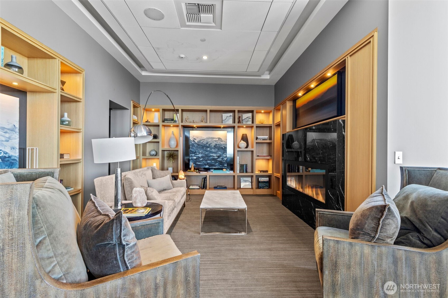 Spectacular northwest-facing condo at the Luma with views of the skyline, Sound, mountains, Space Needle and Lake Union. Large, luxurious living and dining areas with balcony and open, modern kitchen. Serene primary suite with spa-like bath and spacious walk-in closet. Second bedroom with sound and city views doubles as great office. Well-appointed home with high ceilings, tons of natural light, and central A/C. Top-tier amenities include rooftop terrace offering 360-degree city/water/mountain views, large jetted hot tub, lounges and more. Additional amenities include a 24-hr concierge, fitness center, pet lounge & EV charging stations. Luxury highrise living at the finest location: Steps to trendy bars, restaurants, & shops.