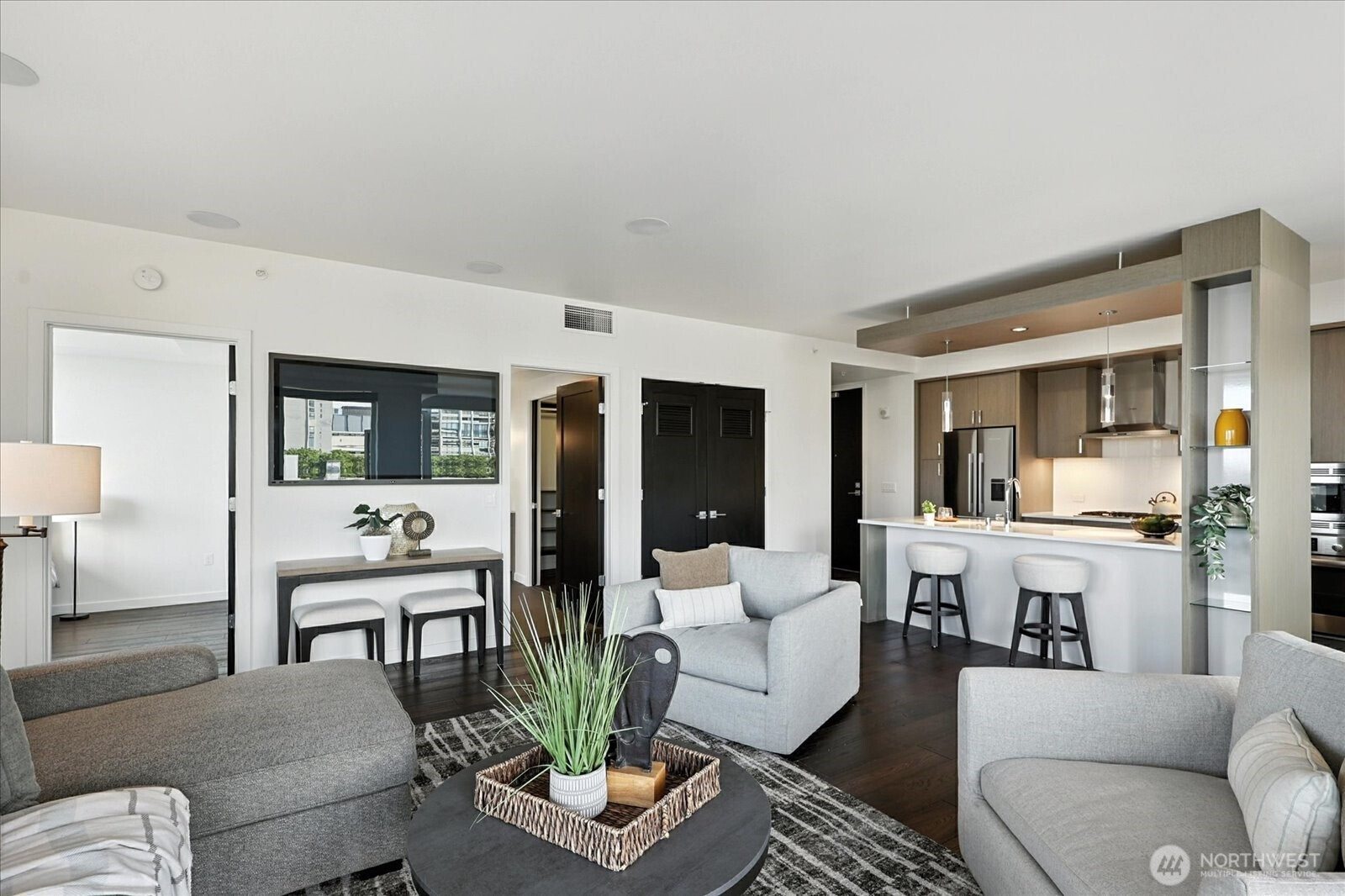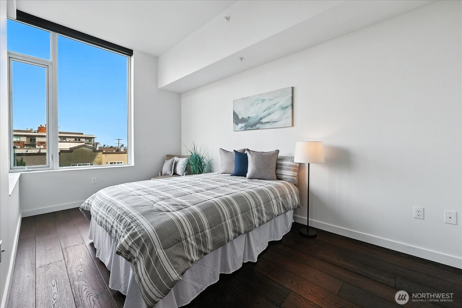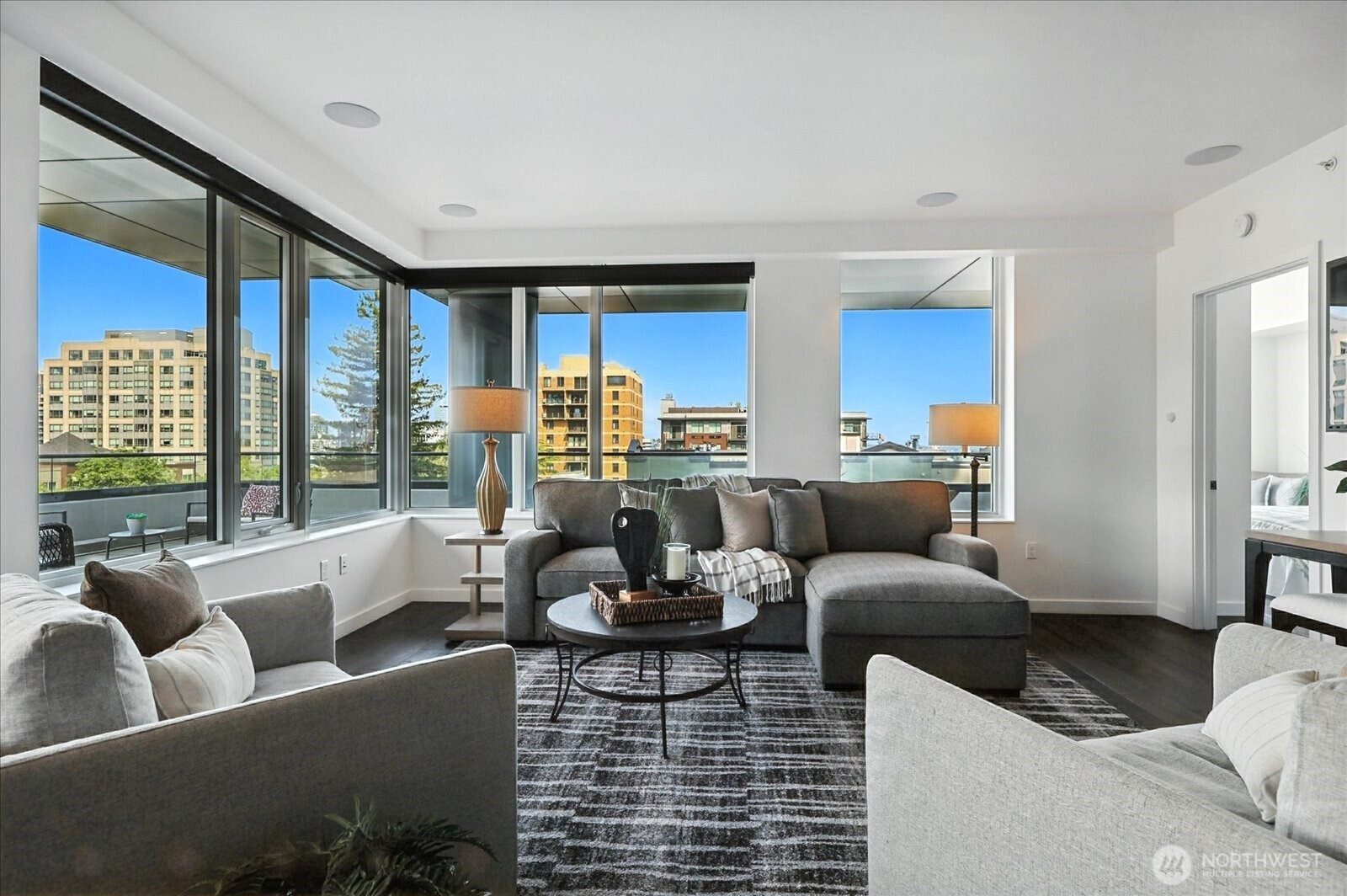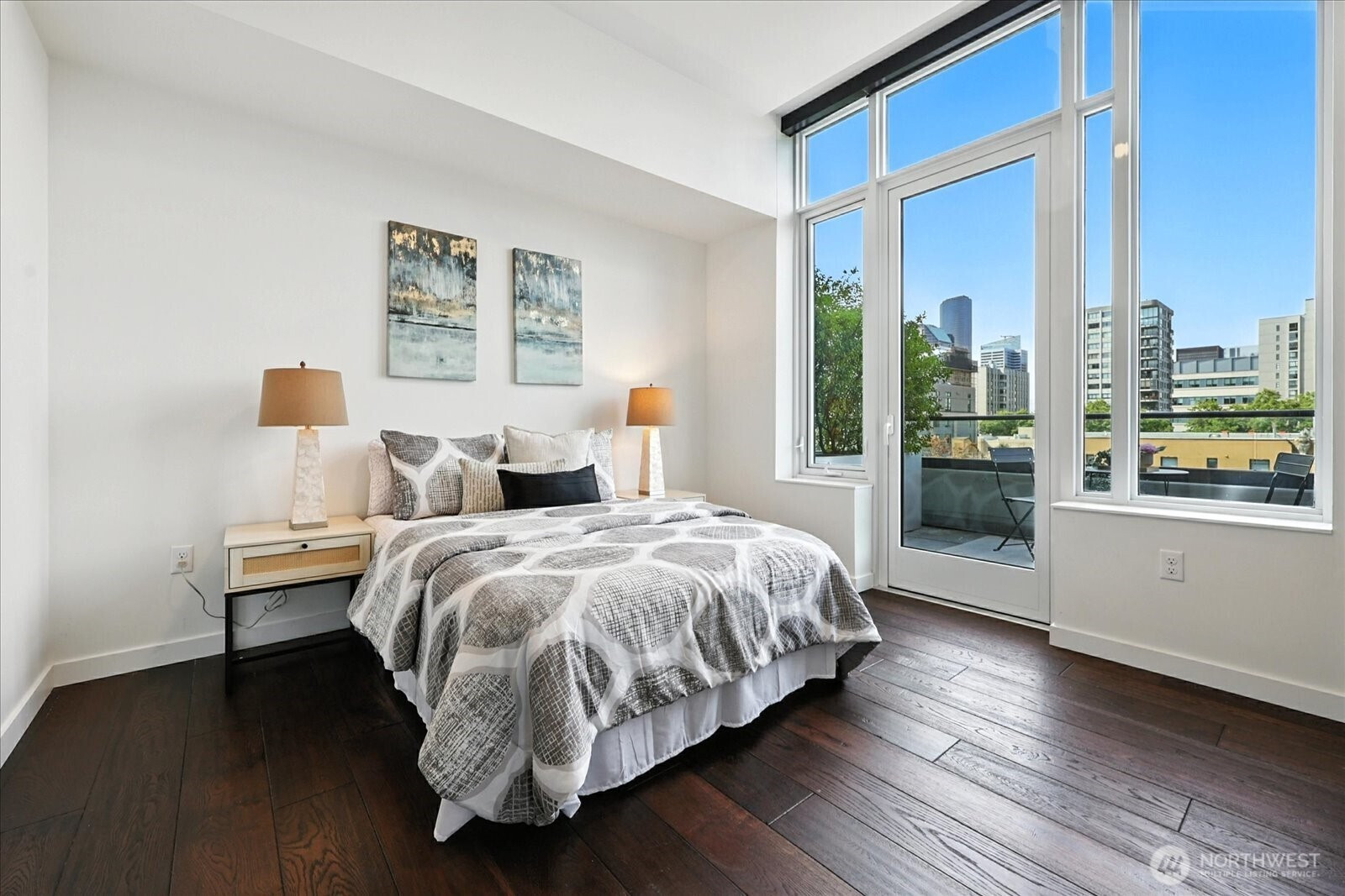 Rare opportunity to own this luxurious corner unit condo with 650 sq feet of private outdoor space across two terraces. This home is perched on the 5th floor with city skyline views, a/c, large windows, engineered hardwood floors, California Closets, Hunter Douglas electric blinds, & designer finishes throughout. This corner unit is one of the building's most unique floorplans. Kitchen includes S/S appliances, gas stove, quartz island & a pull-out pantry. Bedrooms are spacious with the master having its own 5-piece en-suite. Luma amenities include a gym, 24hour concierge, pet run, rooftop lounge & hot tub. With a 99 Walkscore you are within steps to many restaurants, shopping, parks & transit. 1 storage & 1 EV car parking included.