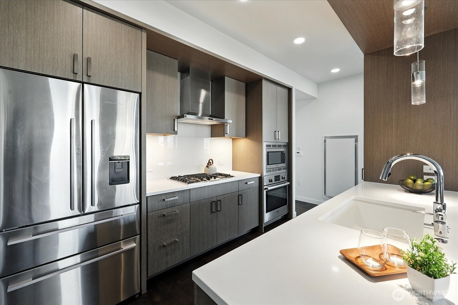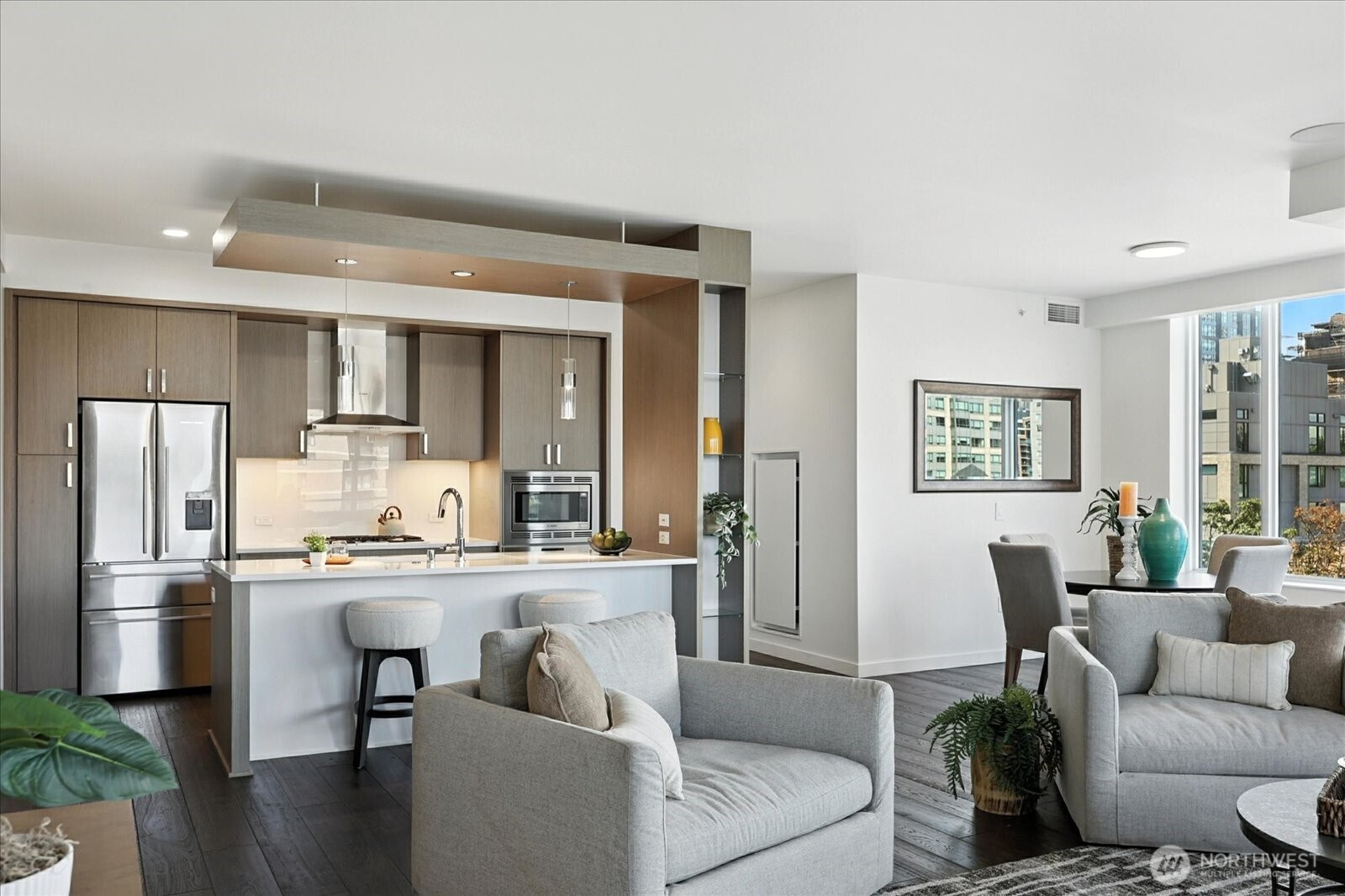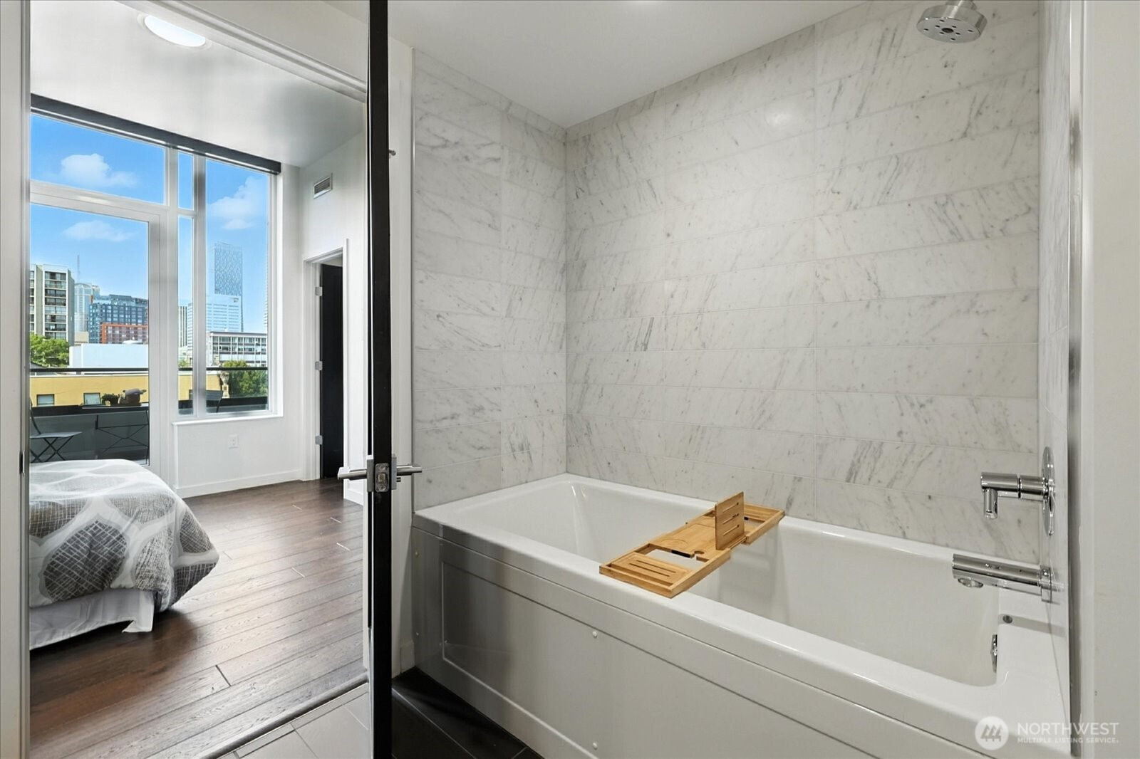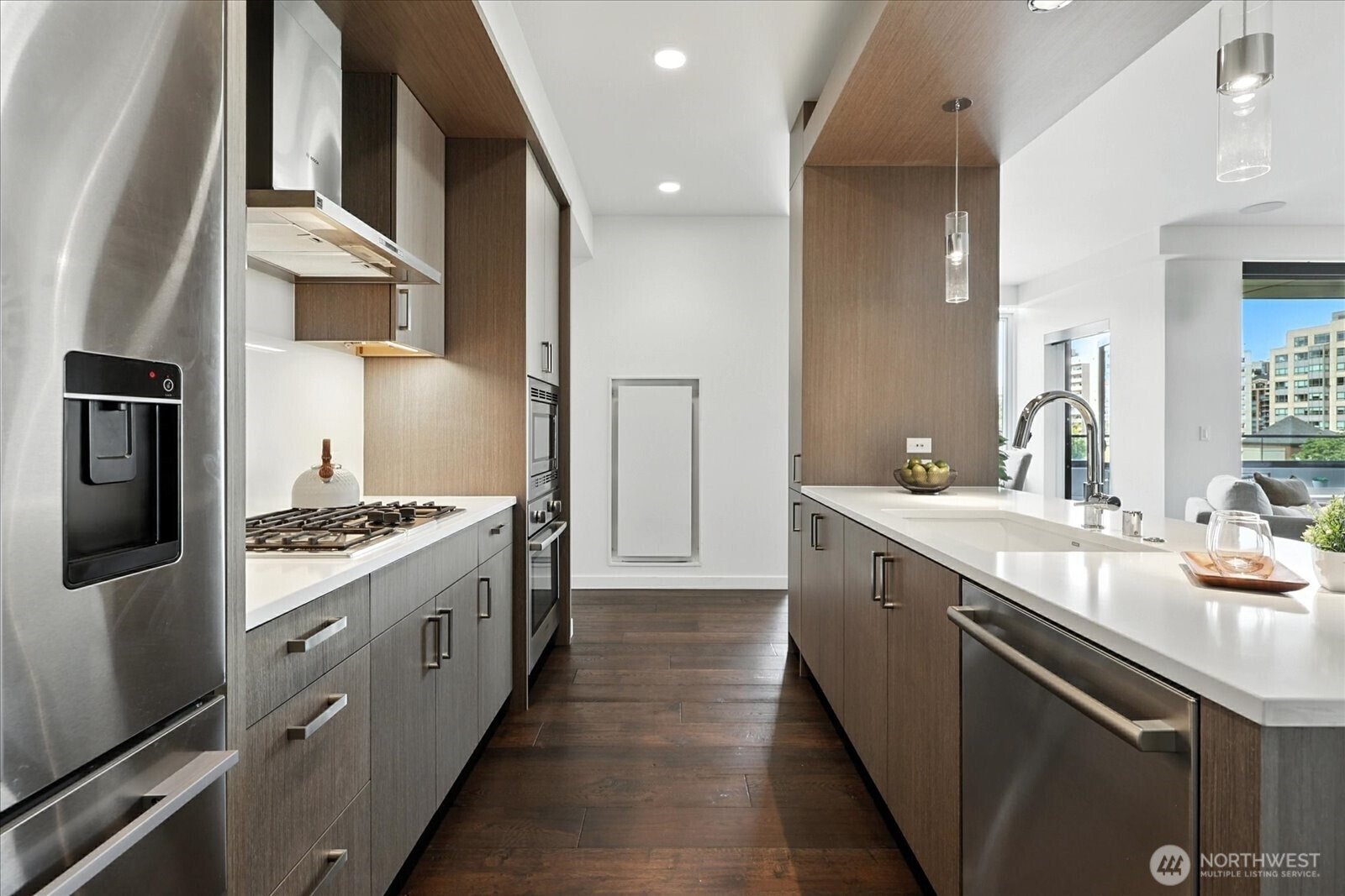 Rare opportunity to own this luxurious corner unit condo with 650 sq feet of private outdoor space across two terraces. This home is perched on the 5th floor with city skyline views, a/c, large windows, engineered hardwood floors, California Closets, Hunter Douglas electric blinds, & designer finishes throughout. This corner unit is one of the building's most unique floorplans. Kitchen includes S/S appliances, gas stove, quartz island & a pull-out pantry. Bedrooms are spacious with the master having its own 5-piece en-suite. Luma amenities include a gym, 24hour concierge, pet run, rooftop lounge & hot tub. With a 99 Walkscore you are within steps to many restaurants, shopping, parks & transit. 1 storage & 1 EV car parking included.