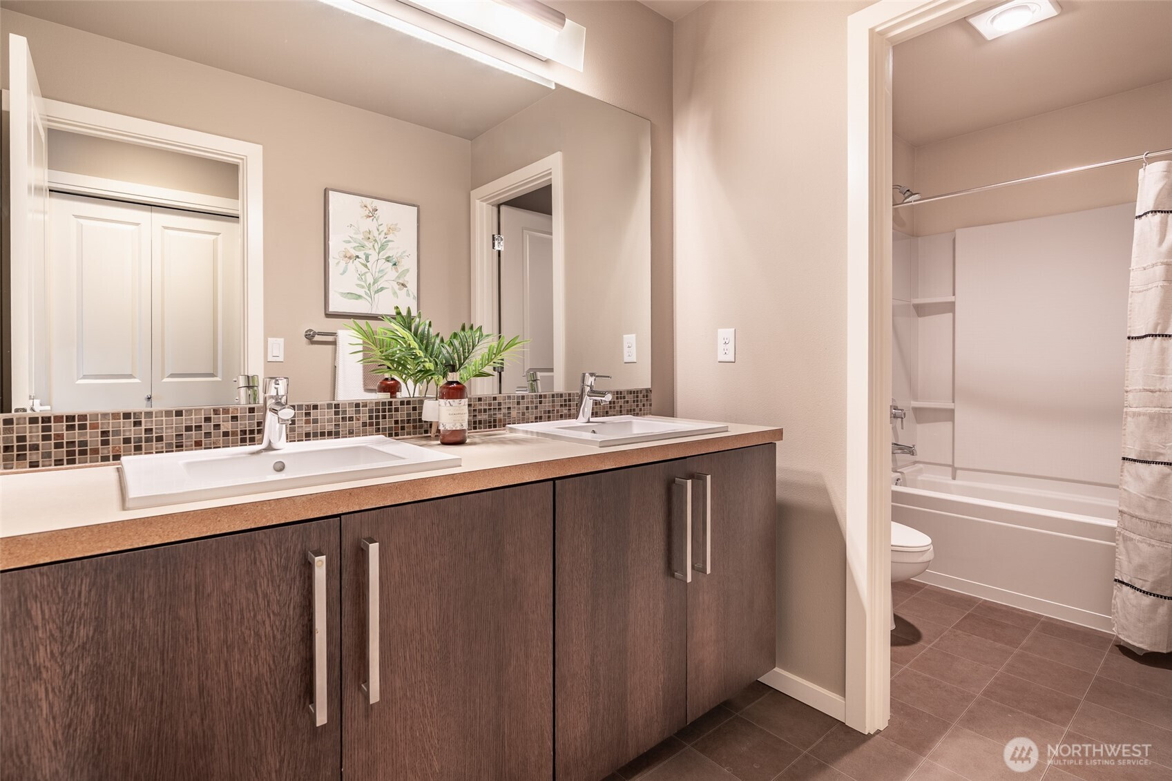 Lea Hill Luxury in Auburn! This gorgeous MainVue home in a beautiful area of Auburn boasts 5 bedrooms, 2.5 baths, and nearly 2,800 square feet of space to grow into! The main floor consists of an open concept style living room, dining room and kitchen with large island and 10 foot ceilings. Loads of windows let in ample amounts of natural light and the large island allows a maximum entertaining space! Quartz countertops, stainless steel appliances, gas range, and a walk-in pantry are just a few features that make this kitchen stand out. On the main floor, there is also a main floor bedroom with a closet that could be used as an office or guest room. The garage includes ductless mini-splits for heating and cooling providing a temperature controlled space for the garage for any hobby. Upstairs you'll find a giant loft area for a 2nd family/living room and 4 additional bedrooms. The oversized primary bedroom includes a 5 piece bath and a GIANT walk-in closet. There is a designated laundry room with additional storage. Outside includes a covered patio with a fireplace and a fully fenced backyard. Partial mountain views show from the top floor. Close to Hwy. 18 for great commuting and stores and restaurants just around the corner. Don't miss your chance to live in this incredible neighborhood in a high-quality construction home!