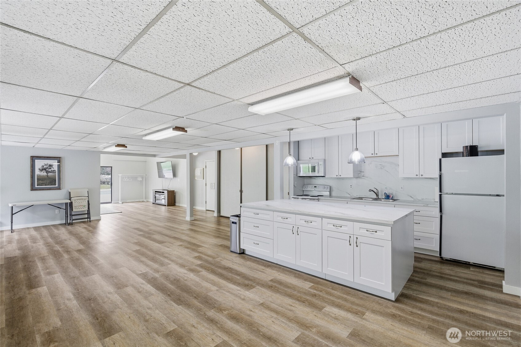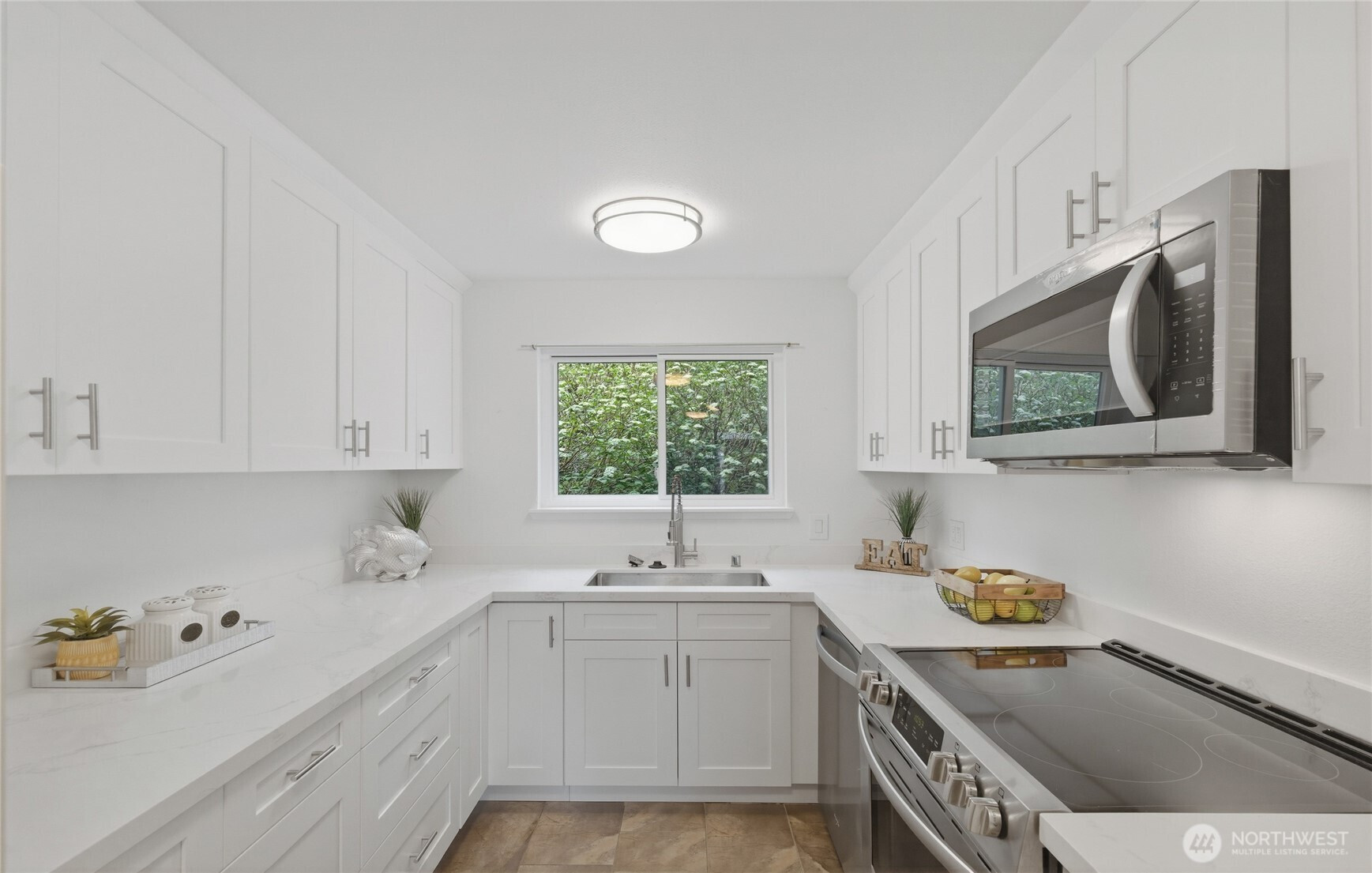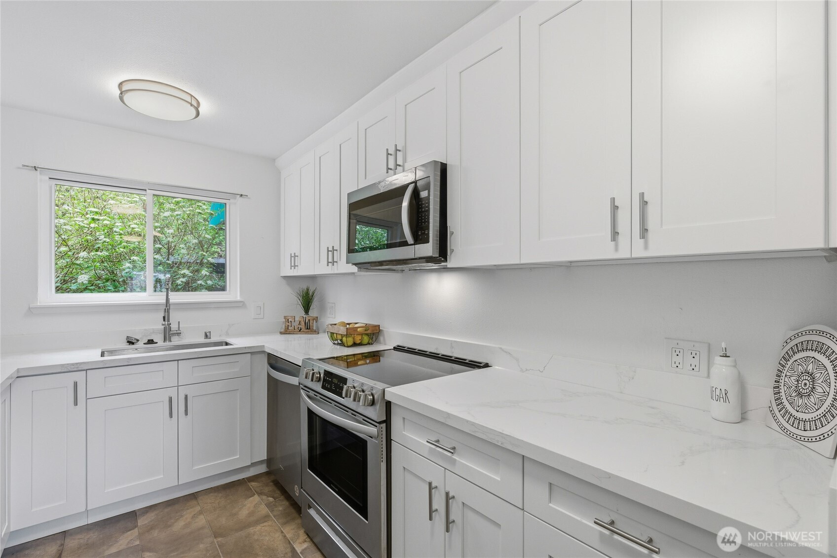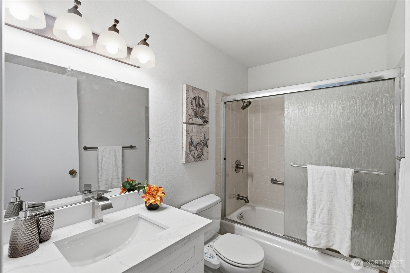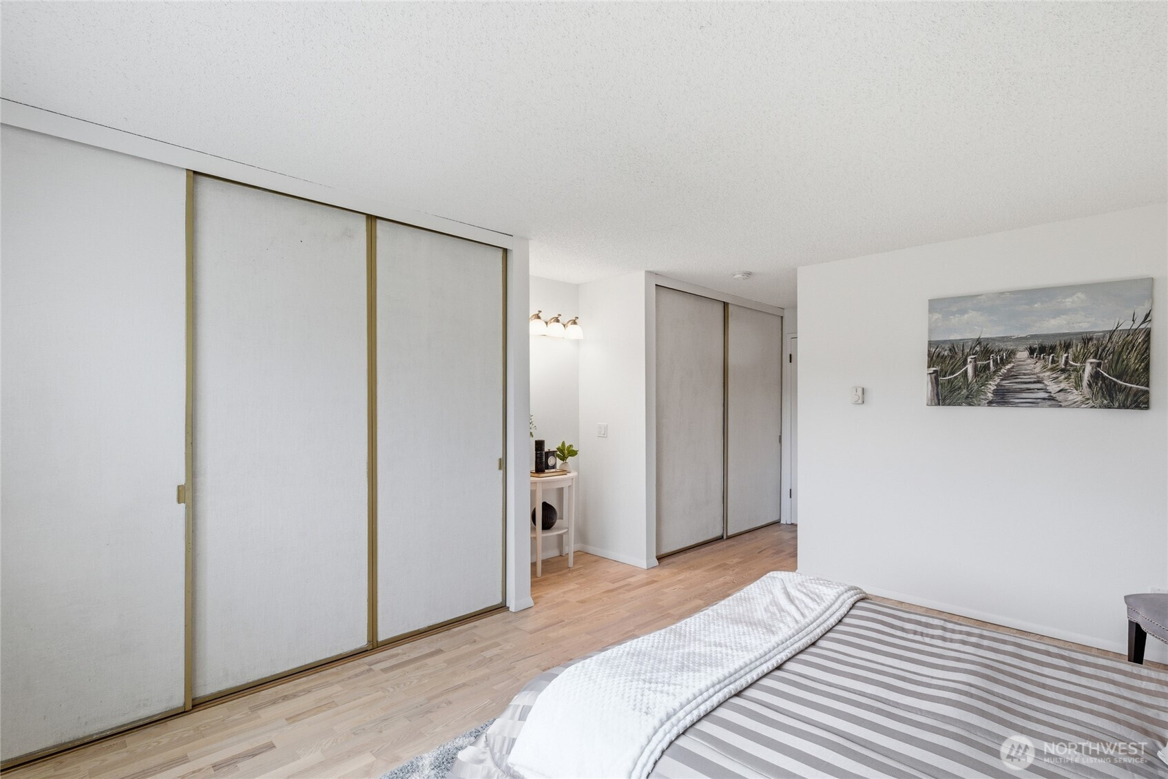 Welcome to this beautifully updated residence in the Bridgehaven community, offering a rare combination of space, comfort, and convenience. This mid level unit features ground level entry with no stairs, providing easy access. Inside, the home opens to an expansive living space rarely found in today’s market, creating flexibility for both relaxing and entertaining. The renovated kitchen features modern appliances and clean finishes, while updated bathrooms bring a cohesive feel throughout. Newer windows and a recently replaced water heater add comfort and long term value. Generously sized bedrooms with oversized closets offer exceptional storage, while an in unit washer and dryer enhances everyday functionality. A wet bar adds an ideal touch for hosting. Step out to your private balcony and enjoy the peaceful, park like setting surrounded by mature landscaping. Additional highlights include two covered parking spaces, a valuable and hard to find feature. Residents enjoy amenities including a pool, hot tub, sauna, and clubhouse, all within a well established community. Ideally located near Jackson Park Golf Course, with easy access to I 5, transit along 15th Ave NE, and the Northgate light rail for connectivity to downtown, UW, and beyond. A rare opportunity to own a spacious, updated condo in one of North Seattle’s most convenient locations.