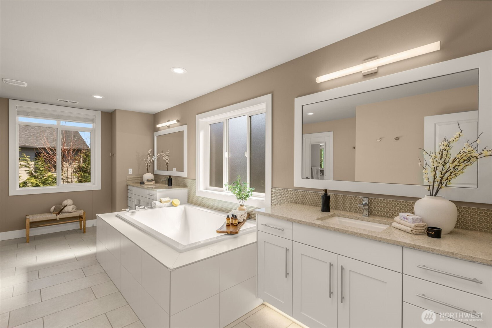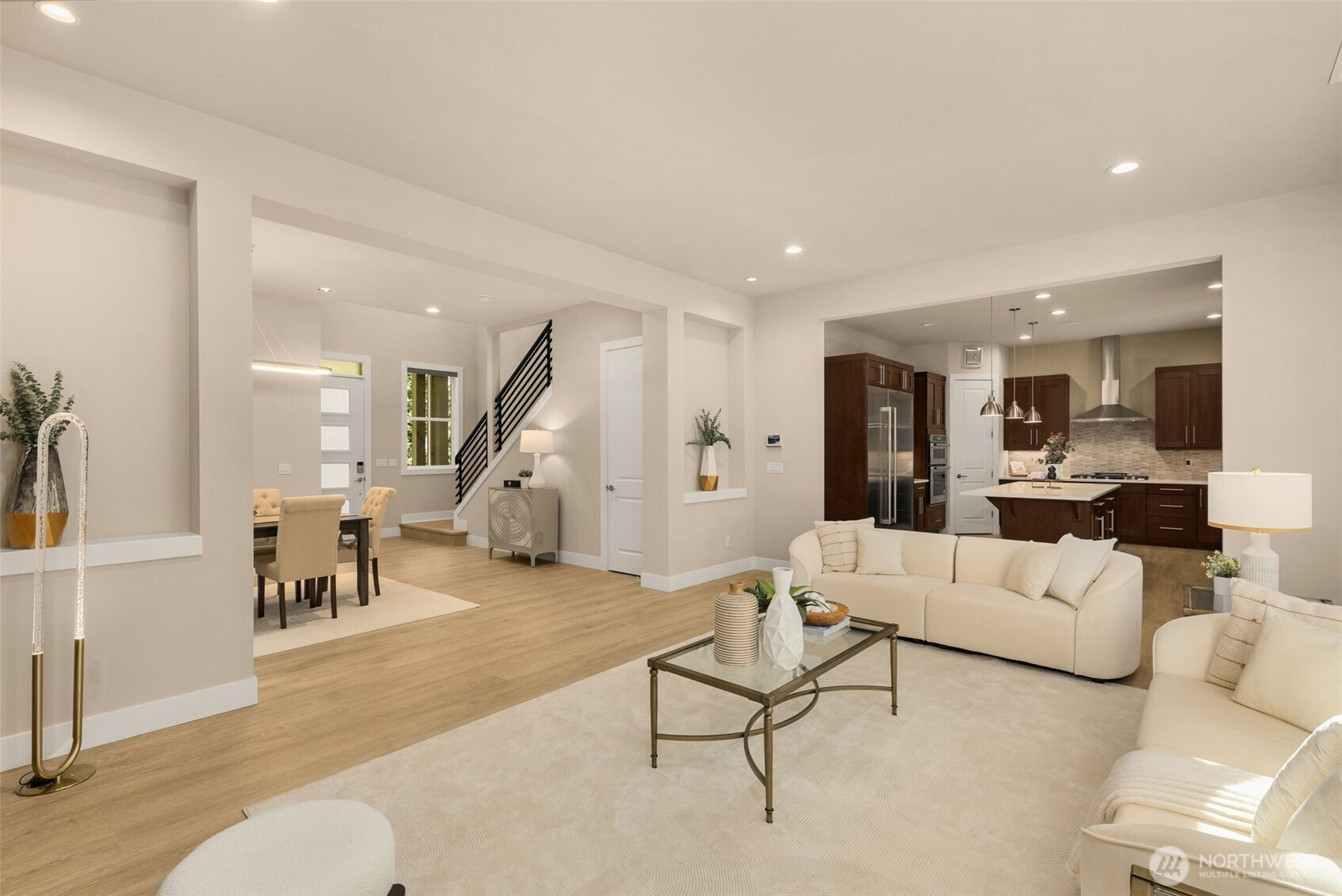 Better than new, this beautifully designed 2020-built home is tucked away in a private neighborhood setting with minimal traffic noise, yet just minutes to I-405, Downtown Kirkland, Totem Lake Village, Evergreen Hospital, and Juanita Beach. This light-filled home features high-end finishes throughout, including hardwood floors, designer touches, and an open-concept floor plan ideal for modern living and entertaining. The expansive kitchen and living areas flow seamlessly to an updated backyard, creating the perfect indoor-outdoor lifestyle. The luxurious primary suite offers a true retreat with spa-like, oasis-inspired finishes, while the generous guest bedrooms provide comfort and flexibility. Fresh interior paint and PRE INSPECTION make this home truly move-in ready. Exceptional location, quality, and style—this is Kirkland living at its best.