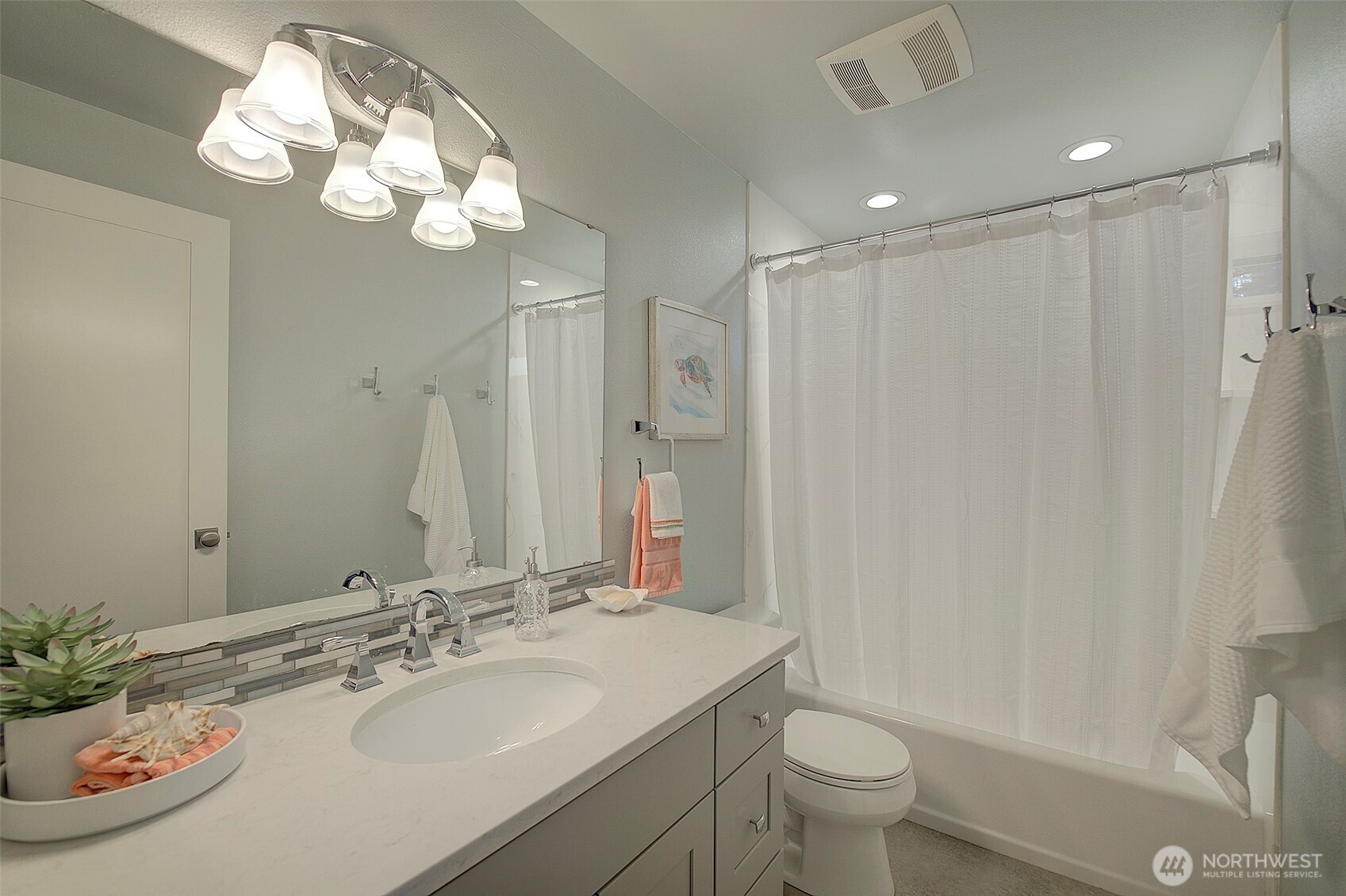 Discover casual elegance and modern comfort in this updated 4-bed, 2.5-bath home on a quiet dead-end street. Designed for today’s lifestyle, it offers inviting spaces, refined finishes, and exceptional convenience. The open-concept Great Room is perfect for everyday living and effortless entertaining, anchored by a stunning chef’s kitchen with a 9-foot island, stylish details, and generous workspace. A welcoming family room with a gas fireplace adds warmth and comfort. Upstairs, the serene Primary Suite features a walk-in closet and an en-suite bath with a tile shower and quartz countertop. Three additional bedrooms and a full bath provide flexible space for any need. Enjoy outdoor living in the fully fenced, south-facing backyard with a large entertaining deck and an expansive lawn. A one-year-old heating system and air conditioning keep you comfortable year-round. 4 blocks to 132nd Square Park (impressive 9-acre Kirkland City park). Close to vibrant Totem Lake Village, Evergreen Hospital, Woodinville Wine Country, and the Cross-Kirkland Corridor Trail, with schools served by the Lake Washington School District. Pre-inspected for your peace of mind.