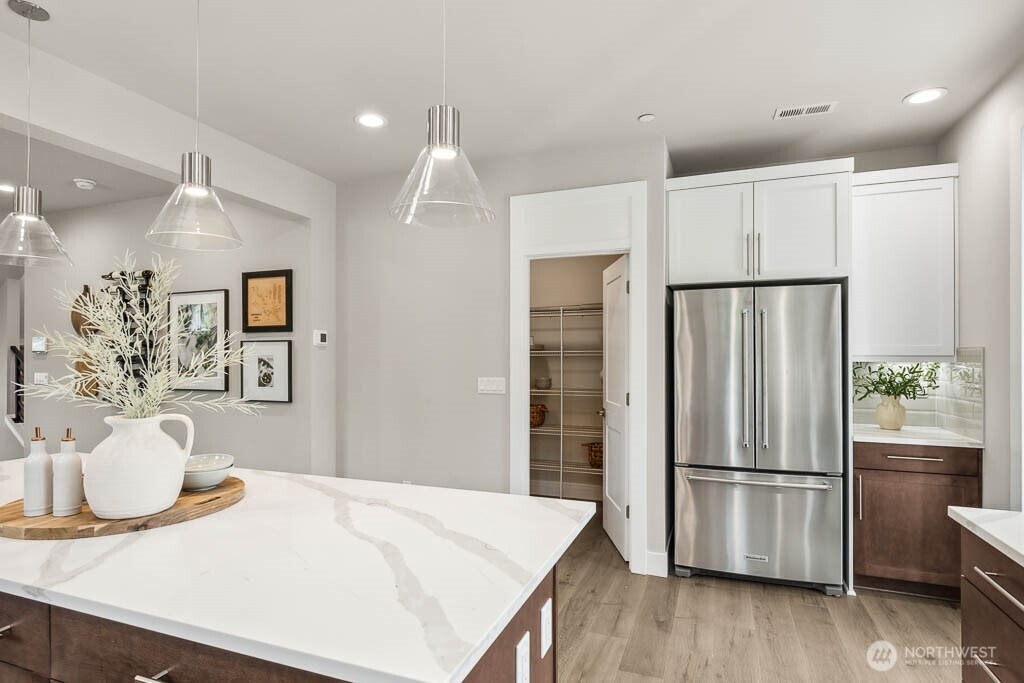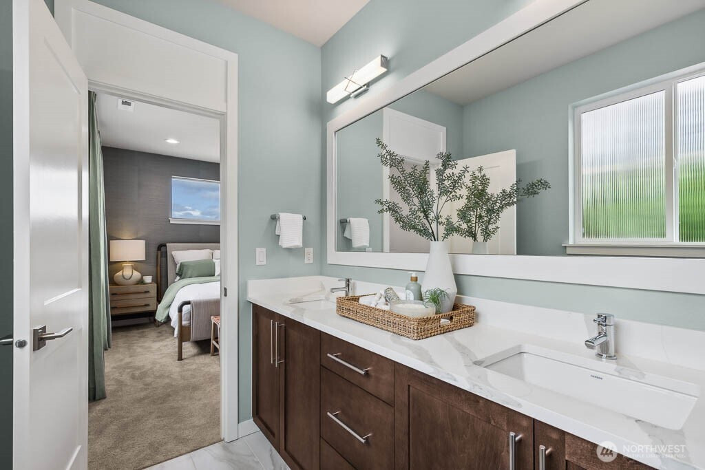 Model home now available! This North facing home fronts an open landscaped area with a huge SW facing deck! All homes come w/ a 2-car garage. 3 bedrooms upstairs & a lower-level bedroom/den w/ its own entrance & bathroom! Enjoy cooking in your open kitchen w/ oversized island, 6 burner Smart gas cooktop, & walk in pantry. Spacious private suite boasts separate sinks & walk-in closet. You'll love the slab quartz counters, undercabinet lighting, blinds, surround sound, ALL APPLIANCES, ample storage, & huge covered Trex deck off the kitchen. Lake WA schools, 220V car outlet, Smart Home features & A/C too! Buyers must register their broker on site at first visit, including open houses. Below market rates for qualified Buyers.