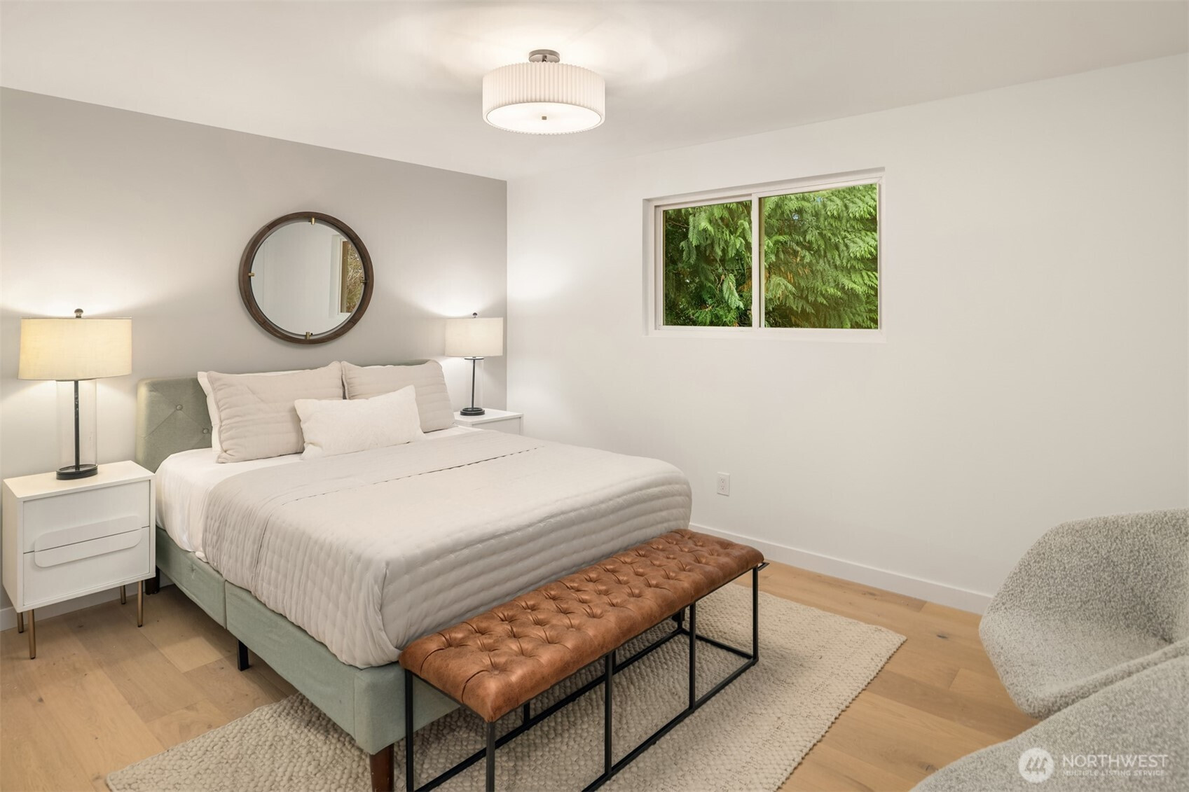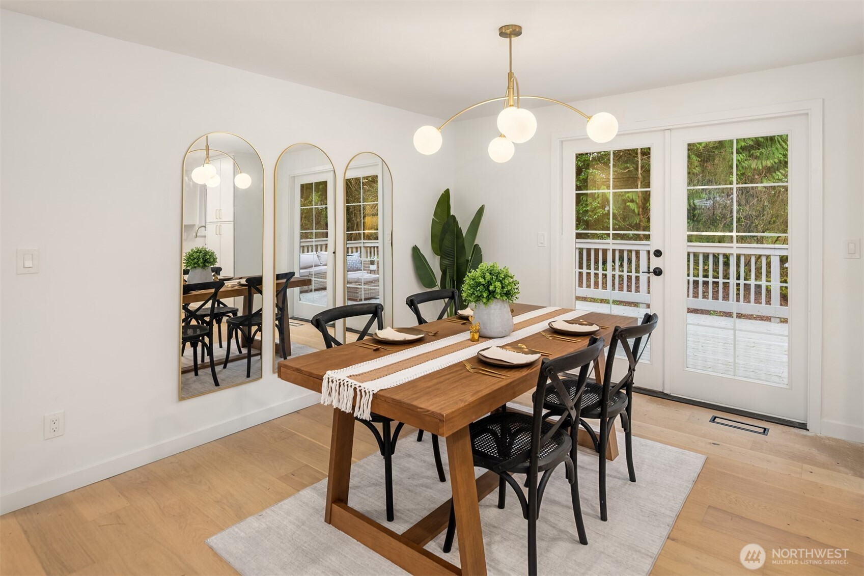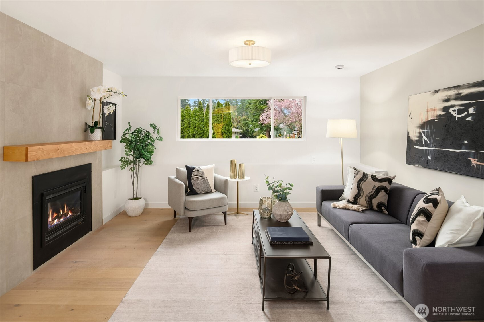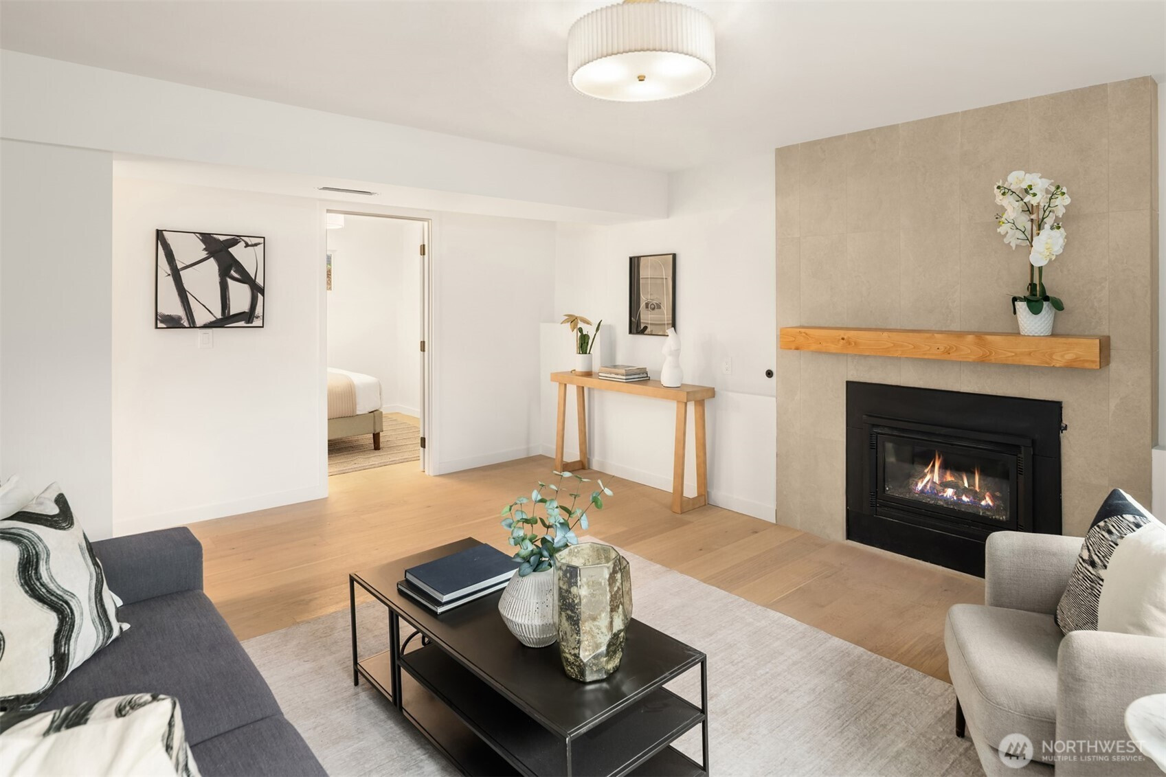 Completely reimagined home with DADU potential on 12,450 sq ft lot in highly sought-after South Rose Hill . Tucked away at the end of a private drive, this beautifully appointed residence offers style, comfort, and functionality throughout. The main level showcases white oak hardwood flooring, a stunning high-end kitchen featuring quartz countertops, shaker-style cabinetry, and stainless steel appliances. The open-concept living and dining areas are anchored by a cozy gas fireplace and provide seamless access to the outdoor deck, making it ideal for entertaining and enjoying warm summer evenings. The spacious primary suite includes a luxurious bath with tile floors and a custom surround. Two additional bedrooms and a full bathroom complete the main floor. Upon entering the lower level you'll find a large family room ideal for gatherings or movie nights, an additional bedroom/flex space, a three-quarter bath, and a dedicated laundry room. Fully finished two-car garage adds convenience and practicality. Located within the top-rated Lake WA school district and offering an easy commute to both downtown Redmond and Kirkland and tech hubs. This home is just minutes from highly rated restaurants, parks, and everyday amenities.