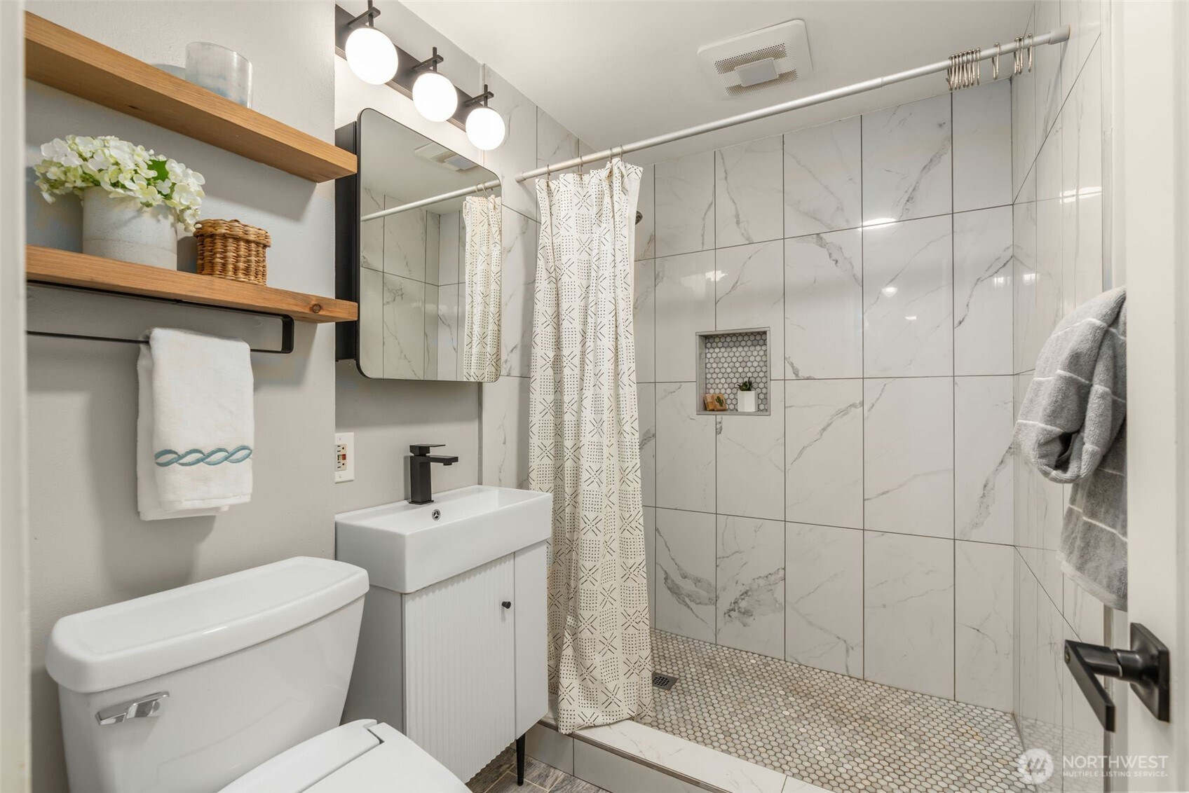 Tucked into the charm of Haller Lake, this beautifully curated 3-bedroom home blends warmth, style, and thoughtful updates. Sunlight fills the interiors while the functional layout creates an easy flow from room to room, perfect for everyday living and effortless entertaining. The refreshed kitchen shines with new quartz countertops, and the updated bathrooms offer a clean, modern feel with calming finishes throughout. Step outside to a fully fenced backyard retreat featuring mature evergreens, tiered decking, and natural stone pathways, private, peaceful, and ready to enjoy. Enjoy the convenience of easy Light Rail access, shops, Northacres Park, and Jackson Park Golf just minutes away! A quiet standout with upgrades in all the right places.