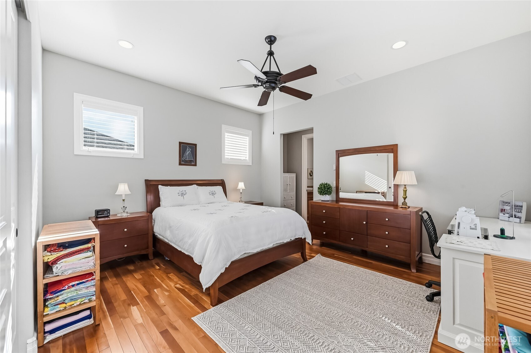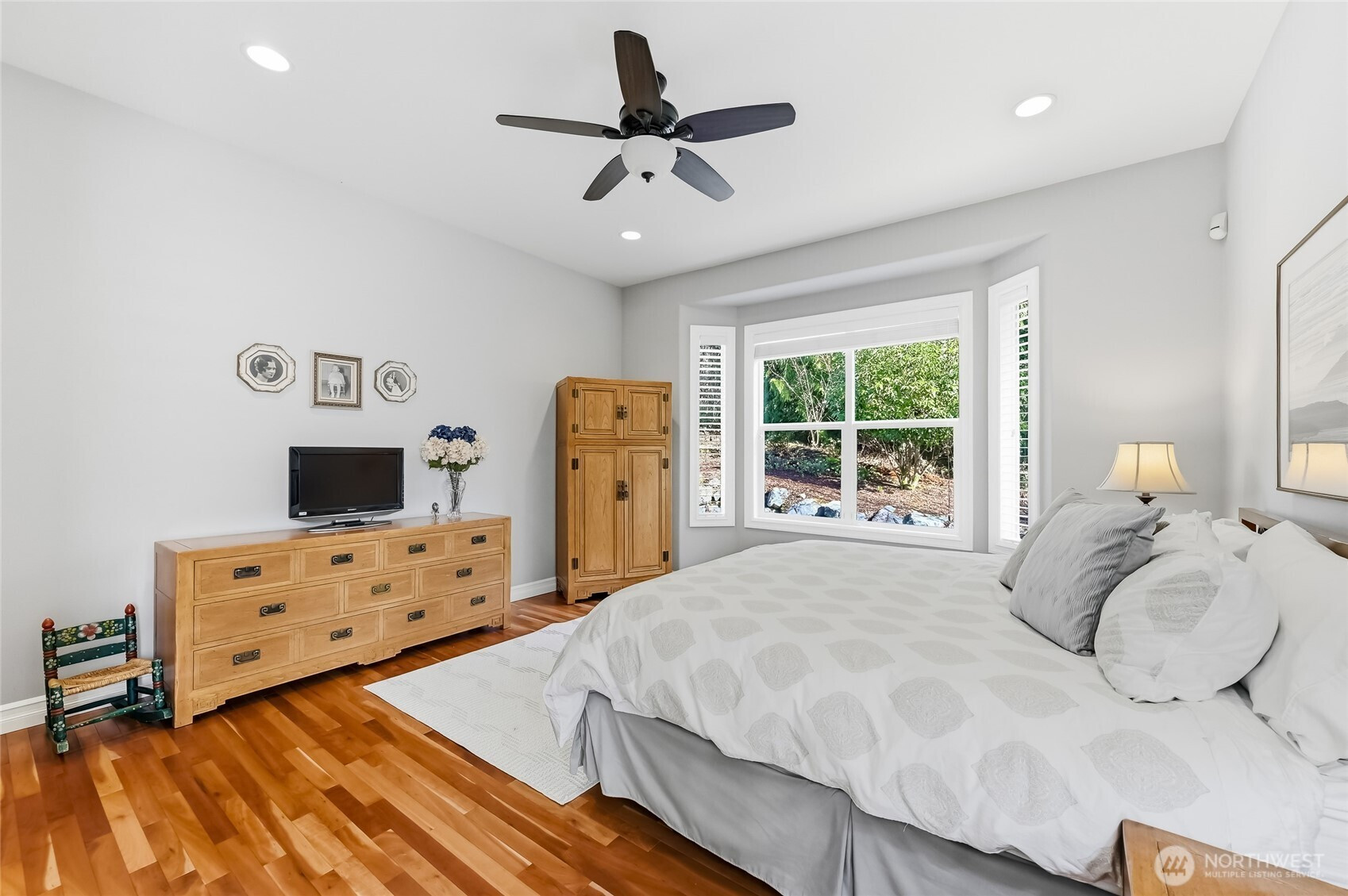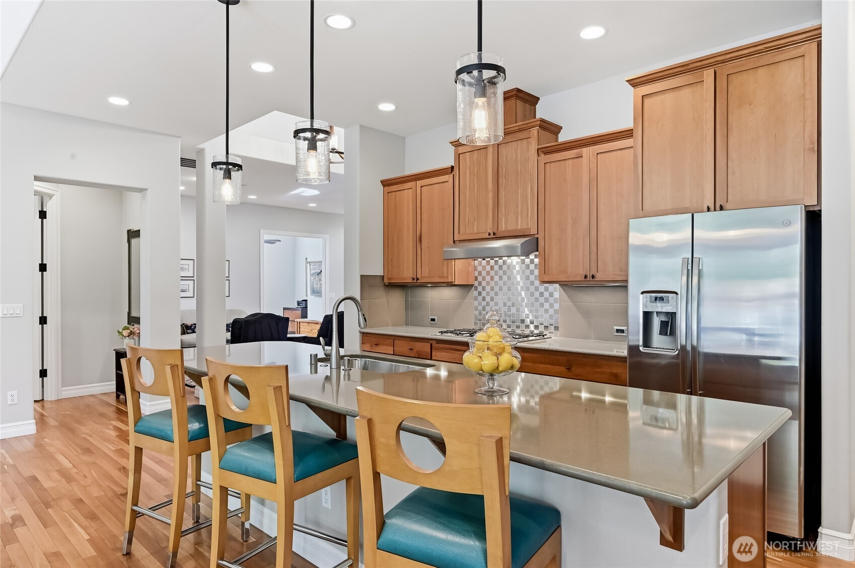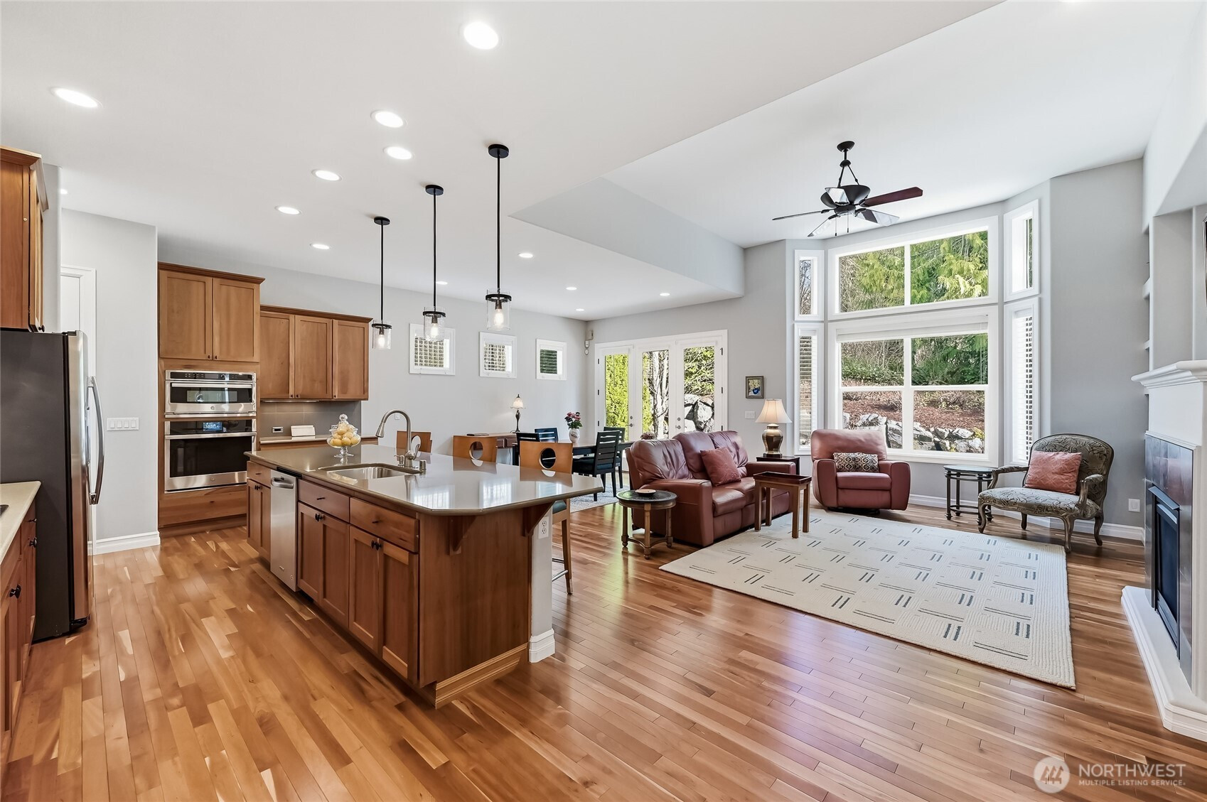 Welcome to easy living in this 1-level, Hemlock plan home offering 2 bedrooms, 2.5 baths and a den. The large paver patio is a fantastic outdoor living space surrounded by nature and a wonderful place to entertain. Cherry hardwoods thru-out the home, no carpet. Kitchen w/42” cherry cabinets with pull-out shelves in the lowers, designer lighting, slab granite counters & custom backsplash. Great room w/gas fireplace and walls of windows. The primary bedroom has a beautifully tiled 5-piece bathroom, dual walk-in closets and looks out to the private backyard. The second bedroom is also en-suite. Large office with glass French doors and a powder room for day guests. Golf cart garage for your sports car, storage or hobbies. New furnace & A/C in 2022, oven & micro in 2021, fridge 2020. Ext paint 2019. Sprinkler system in the front,Low HOA dues of $347/mo include access to the clubhouse, front yard & front sprinkler maintenance. One occupant must be age 55 or older and no permanent occupant under age 18.