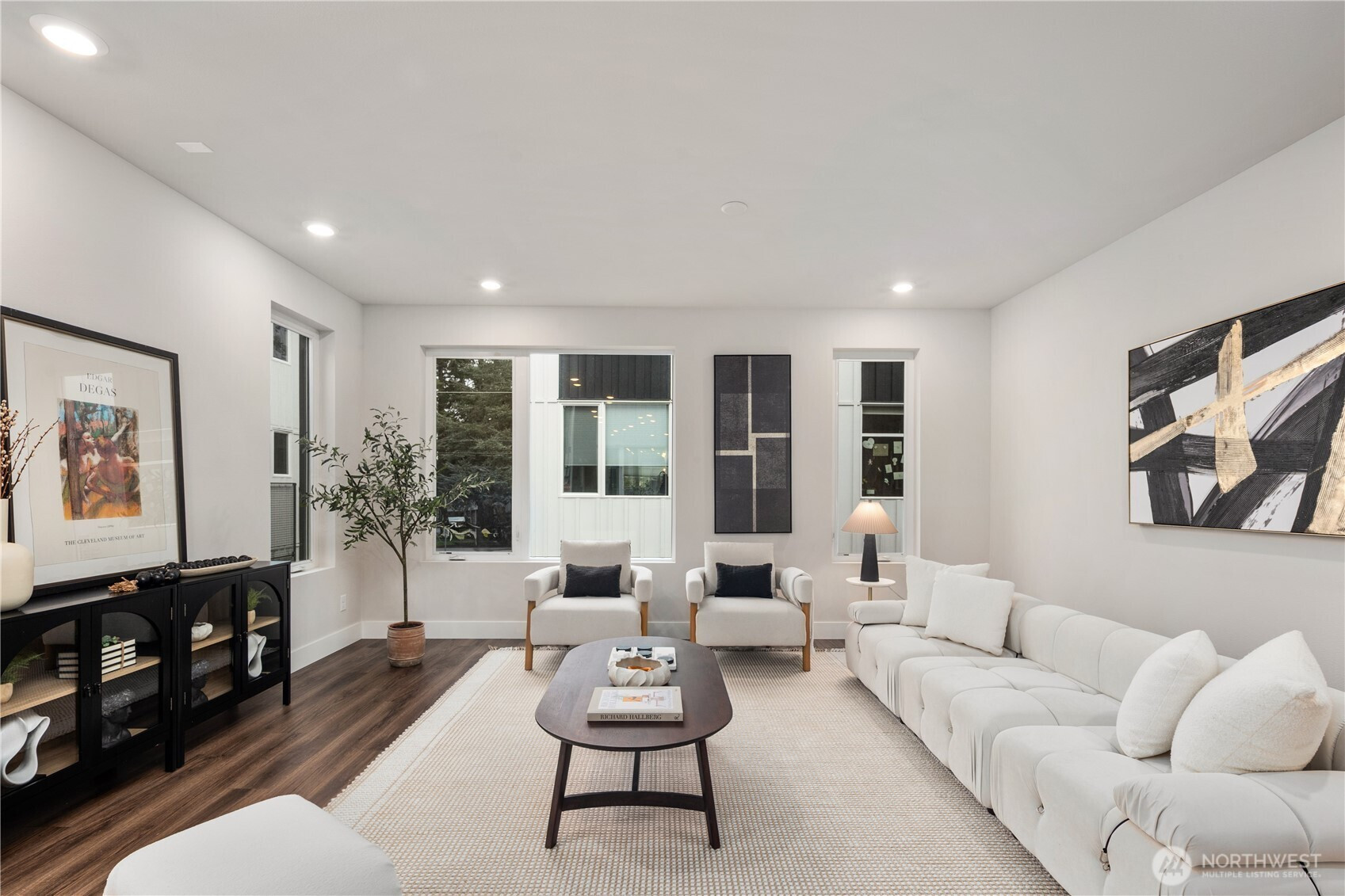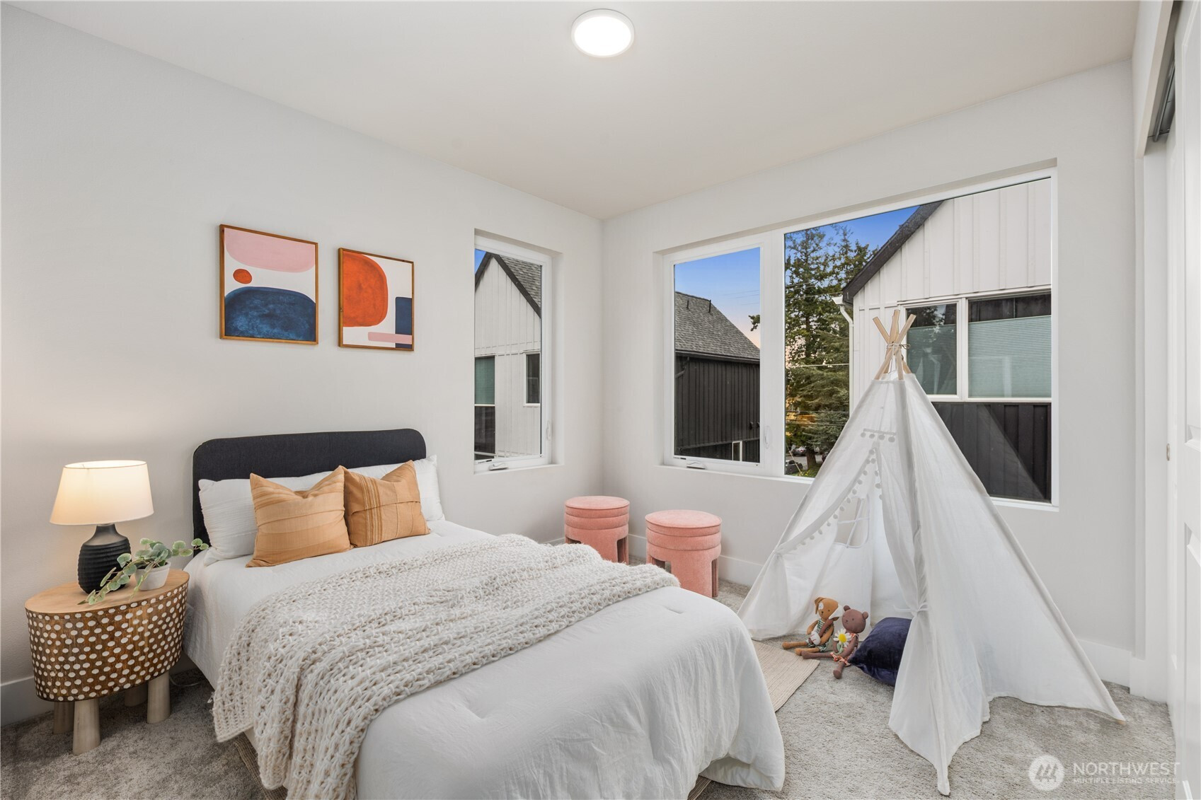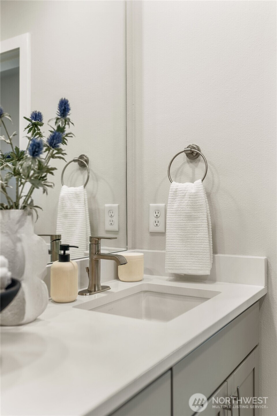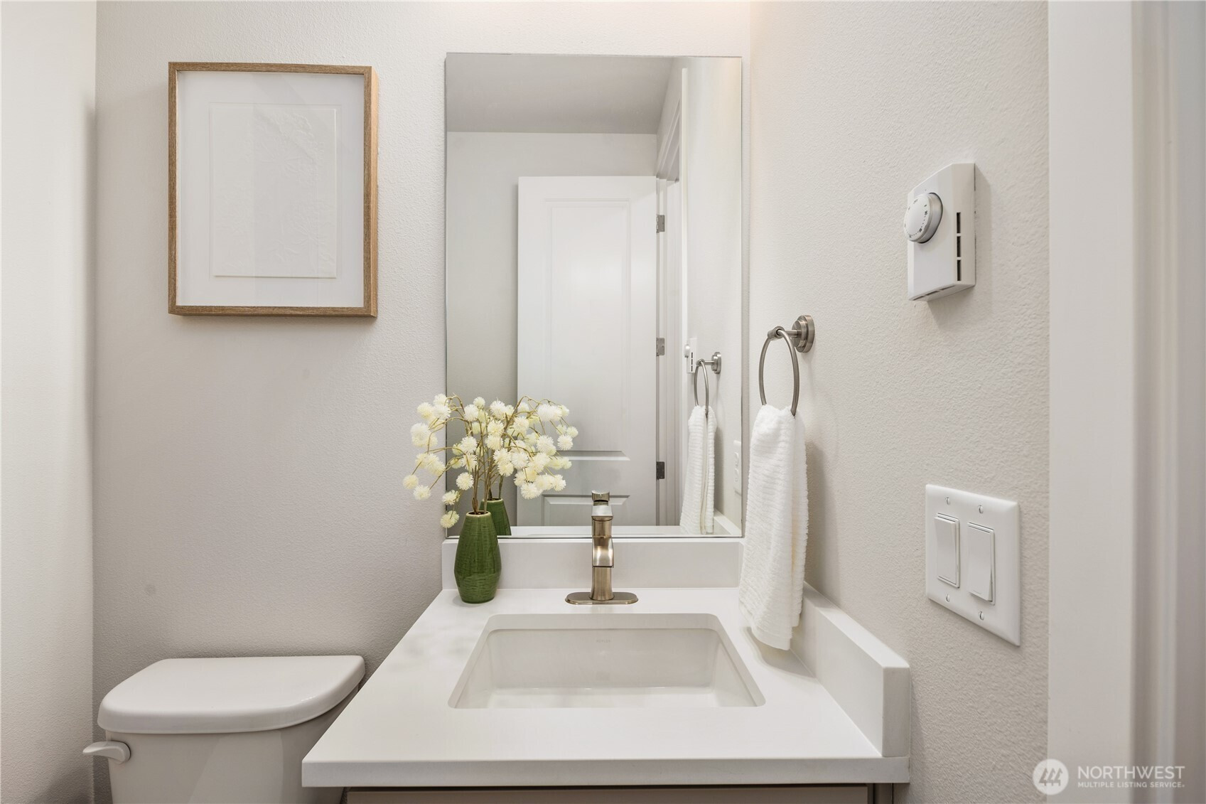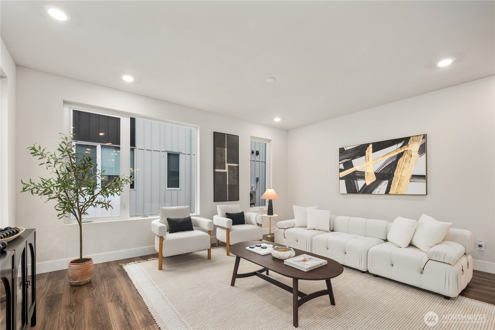 Pulte Homes new construction resale offering a rare corner end unit offering a wider, more livable layout than typical Seattle townhomes, quietly tucked away from the main road for added privacy. Built in 2021 but occupied in 2023, this thoughtfully maintained home blends modern design with everyday functionality. The open concept main level is anchored by a chef’s kitchen featuring an oversized 10ft quartz island, white soft close cabinetry, farmhouse sink, and premium KitchenAid appliances with Samsung refrigerator, flowing seamlessly into sunlit living and dining spaces framed by expansive windows unique to its corner positioning. Enjoy indoor outdoor living with 2 covered balcony’s off the main level, ideal for year round use, entertaining, or unwinding. Upstairs, the vaulted primary suite offers a spa-inspired retreat with dual vanities, floor to ceiling tiled shower with bench, frameless glass enclosure, and a generous walk in closet. Spacious secondary bedrooms provide flexibility for guests, work from home, or lifestyle needs, while a full bedroom and bath on the entry level adds even more versatility. A rare find in Seattle, the home is built over a true side by side 2 car garage, offering both convenience and additional storage without compromise. EV charger ready and no sewer capacity charges. Ideally located near Dunn Gardens, Carkeek Park, Green Lake, and Bitter Lake, with quick access to I-5, Northgate Station, and downtown Seattle. No Sewer capacity charge!