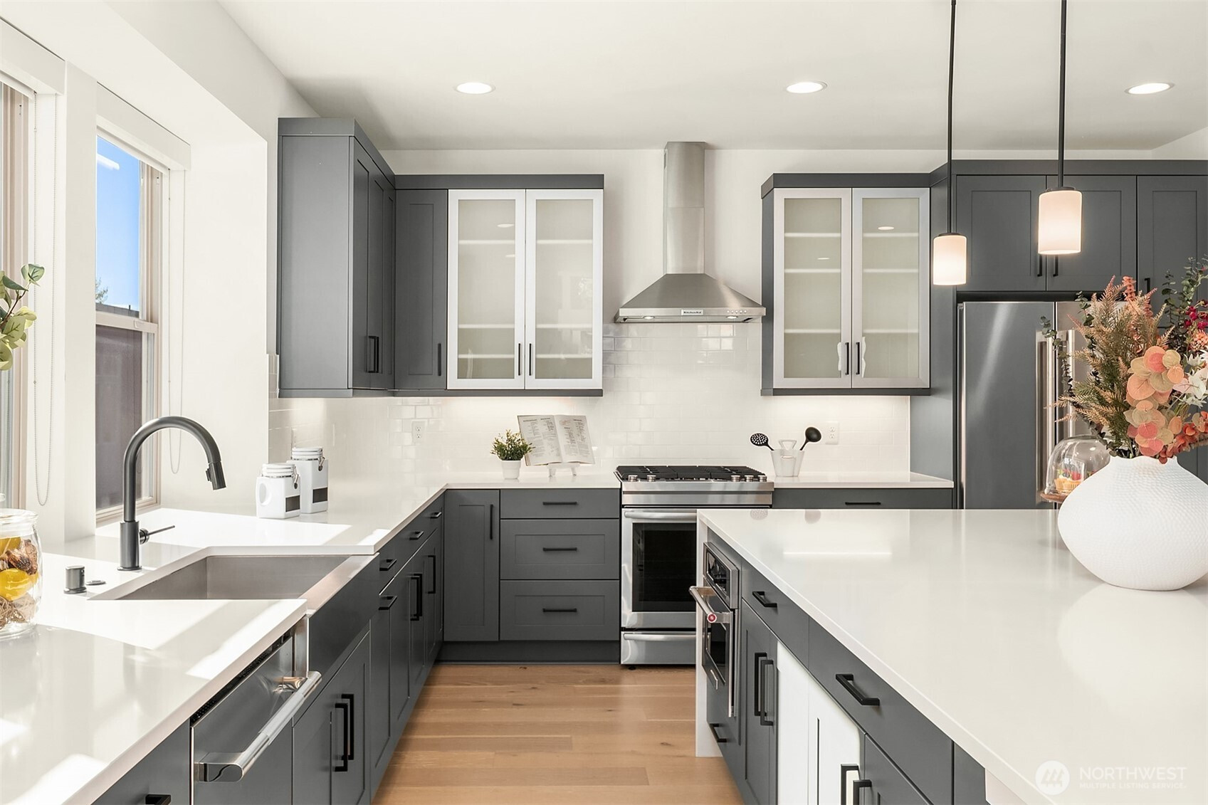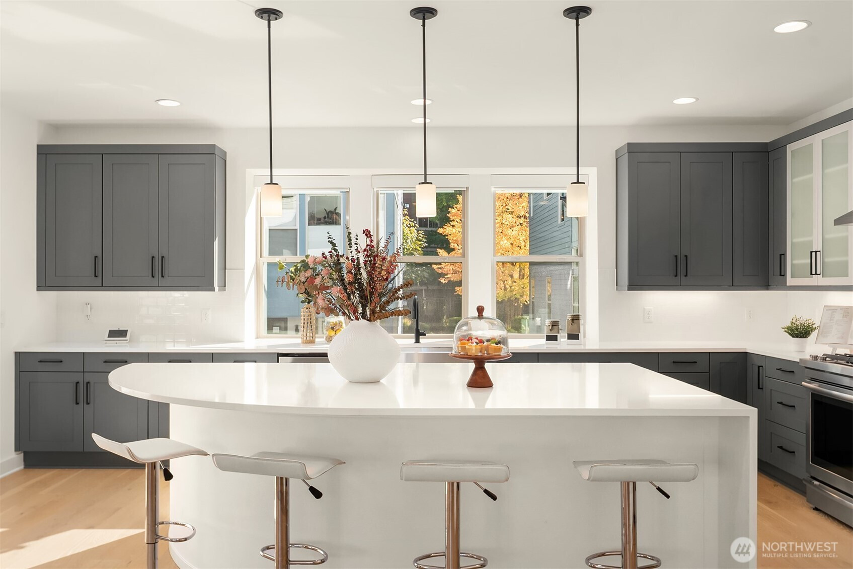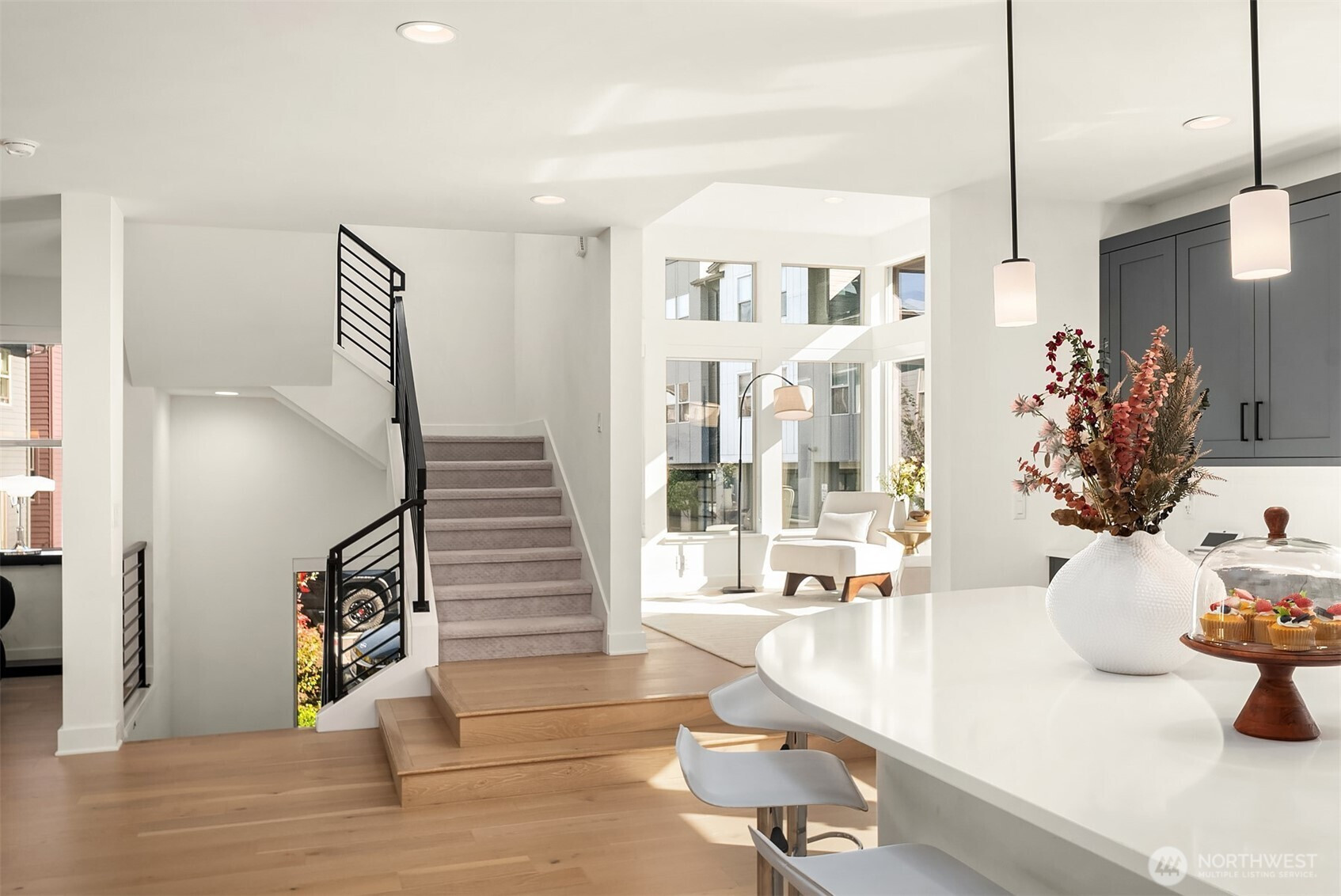Discover luxury living in this sought-after 2,668 sq ft end-unit townhome. Located in the vibrant Aldea at Newcastle Commons. This spacious floor plan offers 3 bedrooms, a private main-floor den or playroom, and a versatile upstairs flex space—ideal for a second office, media room, or creative studio—all enhanced by floor-to-ceiling windows. Designed for both comfort and entertaining, the open-concept layout features a chef’s kitchen complete with a massive 10-foot quartz island, walk-in pantry, and generous cabinetry. Luxurious primary suite includes a large walk-in closet and a spa-inspired bathroom. An oversized two-car garage provides ample storage. Community amenities including an outdoor pool, fitness & common areas. Issaquah Schools.