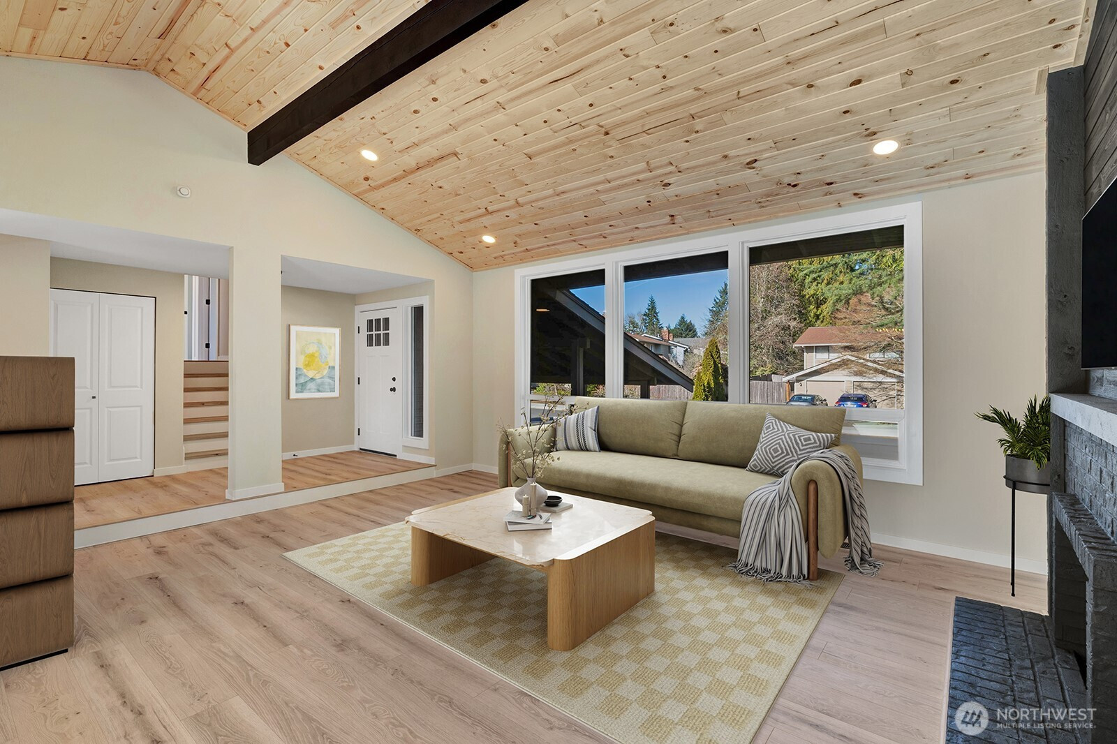 Welcome home to this fully remodeled 4-bedroom, 2.25-bath home in desirable Forest Estates. This home features new flooring throughout, brand-new windows, a new furnace, and updated millwork throughout the entire house. Upon entry, you’re greeted by soaring vaulted ceilings accented with beautiful wood cladding, creating a warm and inviting atmosphere. The brand-new kitchen boasts modern cabinetry, stainless steel appliances, and quartz countertops, perfect for everyday living and entertaining. Upstairs offers three spacious bedrooms which includes the large primary suite. In addition, you will also find two fully remodeled bathrooms showcasing custom tile work, new vanities, and updated hardware. The lower level includes a large family room, a half bath with laundry, a fourth bedroom, and ample storage space. The oversized two-car garage features new garage doors plus a custom pull-through third garage door, ideal for a boat, small RV, or additional equipment. Enjoy outdoor living in the fully fenced backyard with a huge multi-tiered deck that has just been refinished and is ready for year-round enjoyment. This move-in-ready home offers quality updates, flexible space, and exceptional functionality throughout. A MUST SEE!!