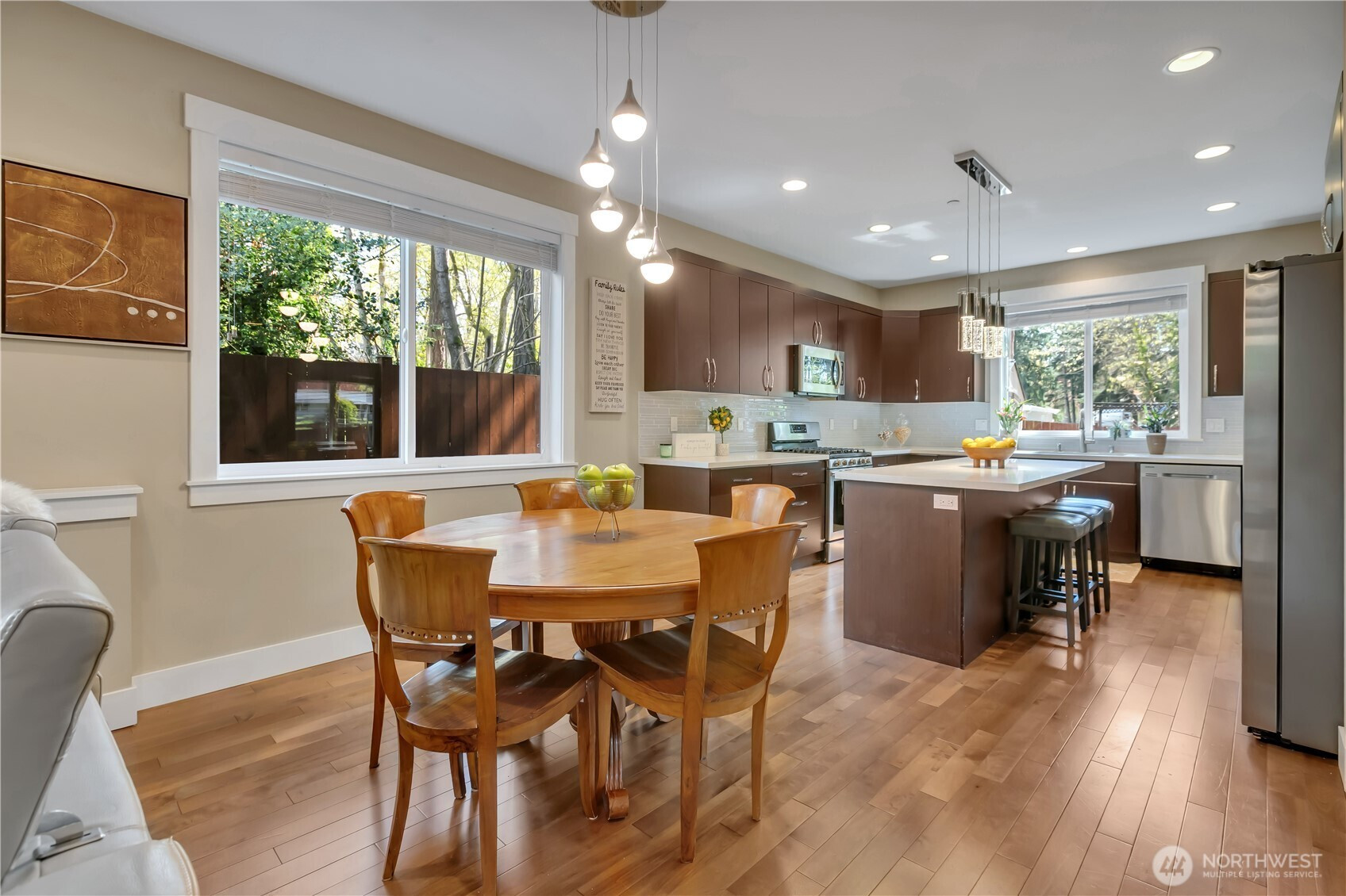 Meticulous custom built 2,800 sq. ft. home with 4 bedrooms and 2.75 baths on shy of 1/2 acre lot in Briarwood. Issaquah SD. No HOA. Entrance with modern light, main floor offers both formal living & dining room that leads to gourmet kitchen with breakfast nook and open to great room. Hardwood floors, quartz countertops, center island with modern pendant lighting. Gas fireplace surrounded by floor to ceiling ceramic tiles. Office/guest bedroom & 3/4 bath. Large walk-in pantry. Upper level has beautiful modern custom railings, a bonus room, laundry room, 2 bedrooms with walk-in closets and primary suite with 5 piece bath and custom walk-in closet. Great yard for entertaining with sand volleyball court, patio, engineered wood deck, fruit trees, flowering shrubs & herb garden. Extra space for RV/boat parking and a 3 car garage. Tankless water heater, high efficiency gas furnace & central A/C. Close to schools, Renton Landing, shops, grocery stores, restaurants & theater.