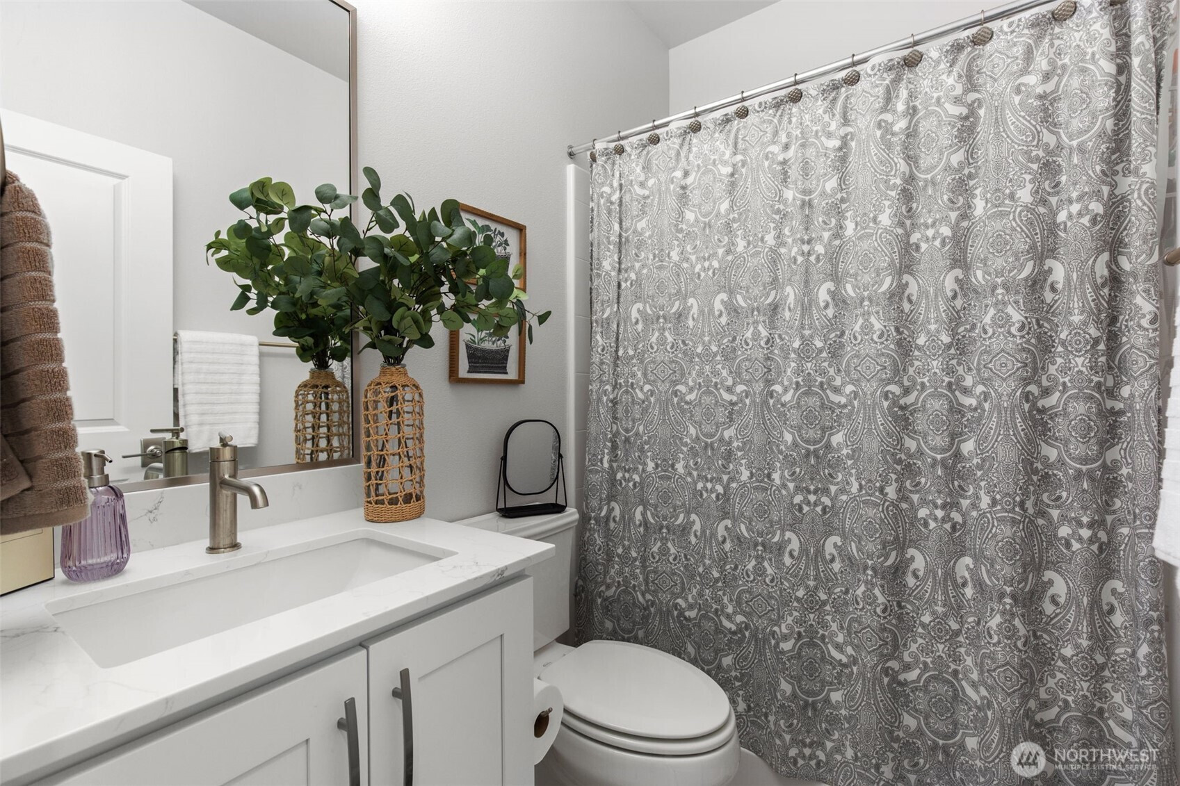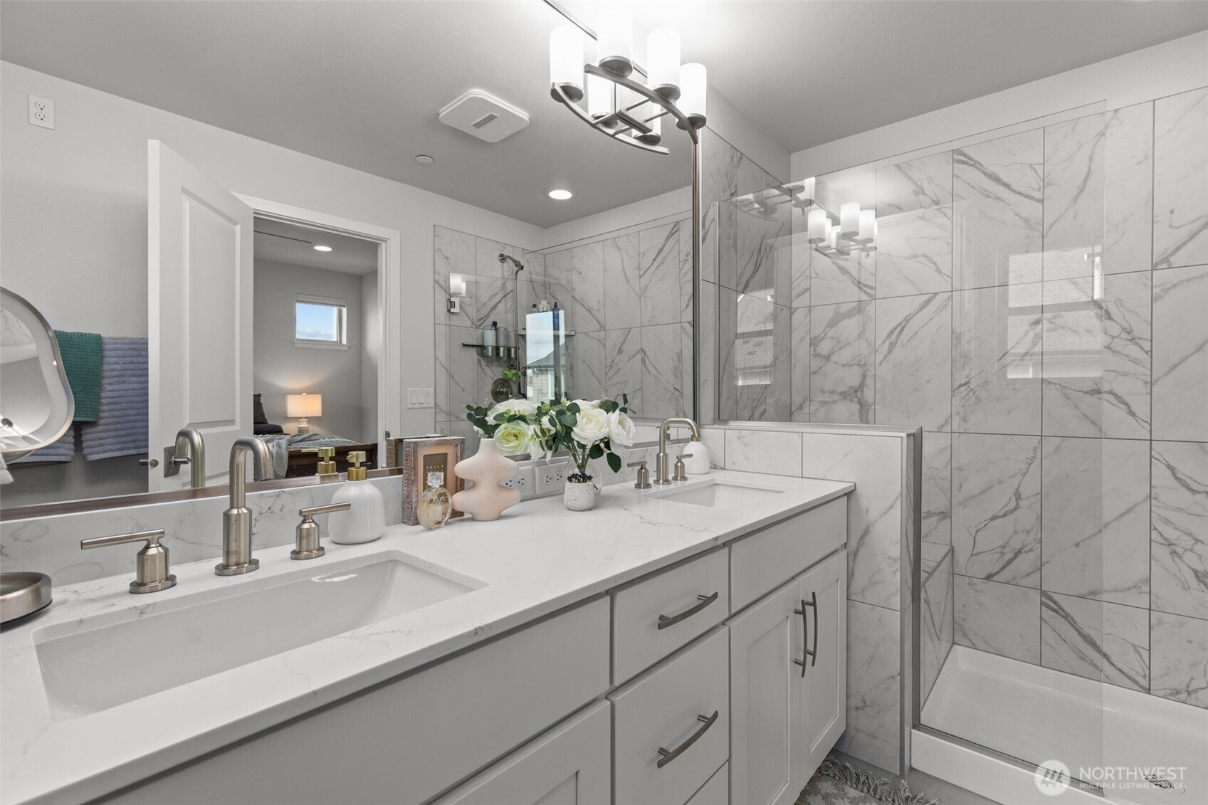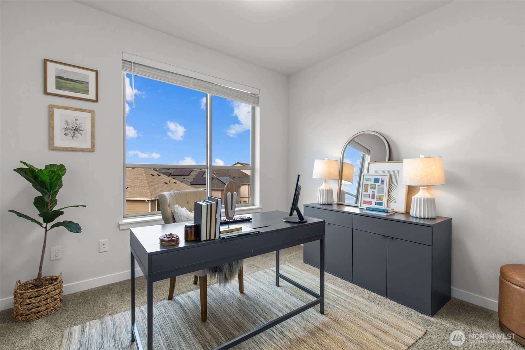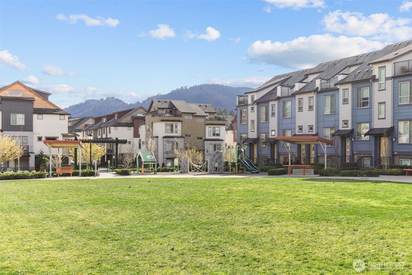 Exceptional townhome in the Westridge community at Issaquah Highlands offering abundant natural light and flexible living across four levels. Open-concept main floor features a gourmet kitchen with quartz counters, stainless appliances, and seamless flow to dining, living, and private deck. Upper level includes spacious primary suite with walk-in closet and two additional bedrooms. Top-floor bonus room opens to a west-facing rooftop deck with sunset views, Olympic Mountains on clear days, and prominent views of Lake Sammamish, along with additional outlooks toward the Cascade Range, Bellevue, and Issaquah, with the added bonus of viewing fireworks on the Fourth of July. Lower level provides private office or guest suite with en-suite bath and patio access. Double wall construction between units offers added sound separation, and fire sprinkler system throughout residence. Side-by-side two-car garage with storage. Convenient access to parks, shopping, dining, and I-90.