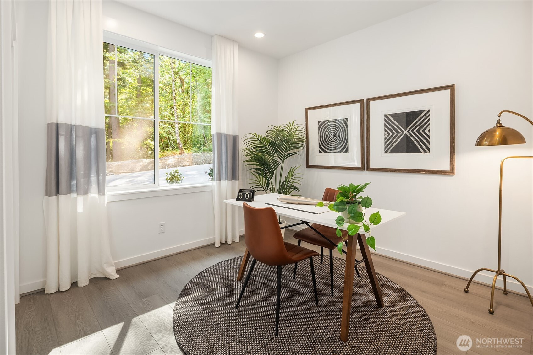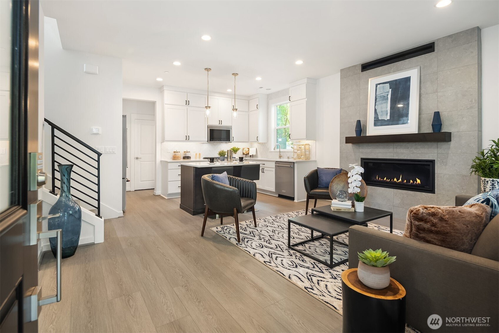 The Poppy at Canopy Cottages by Toll Brothers. Nestled in a serene, forested setting just mins from downtown Kirkland. Only a handful of Poppy opportunities remain! Enjoy green space views to the front and forest views behind this charming but modern cottage. A large front porch to relax and take in the forest views. The open-concept kitchen flows seamlessly into the cozy living room and additional flex room for den or dining. Full appliance package included in home. An impressive primary bedroom retreat and bath have vaulted ceilings. Meet your neighbor for coffee at the community's Clubhouse or reserve for a party or work meeting. Enjoy convenient lock-and-leave lifestyle. This darling home is fully staged. Close to all major centers.