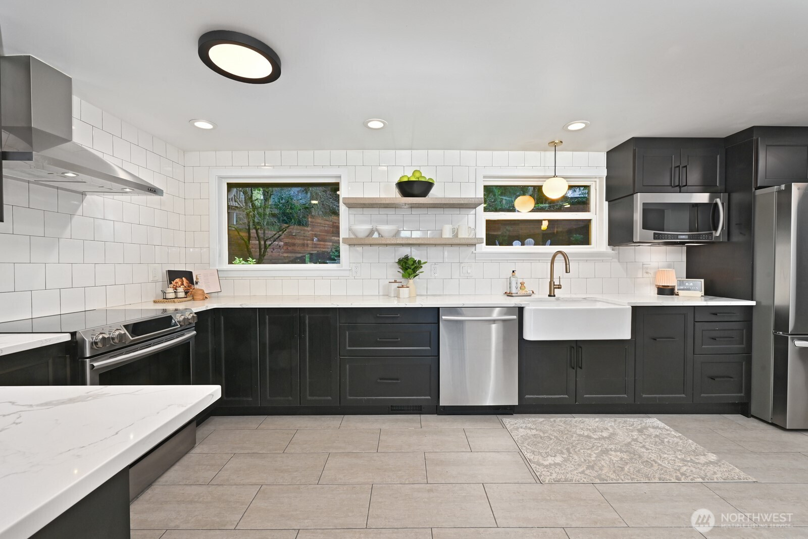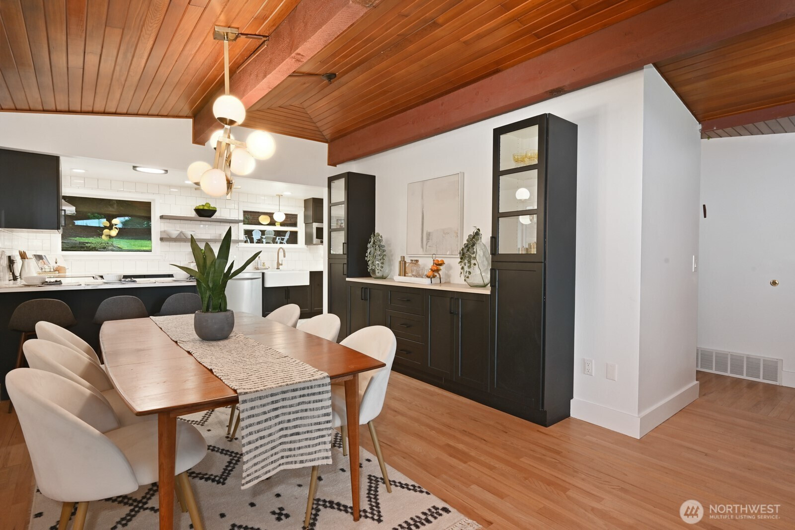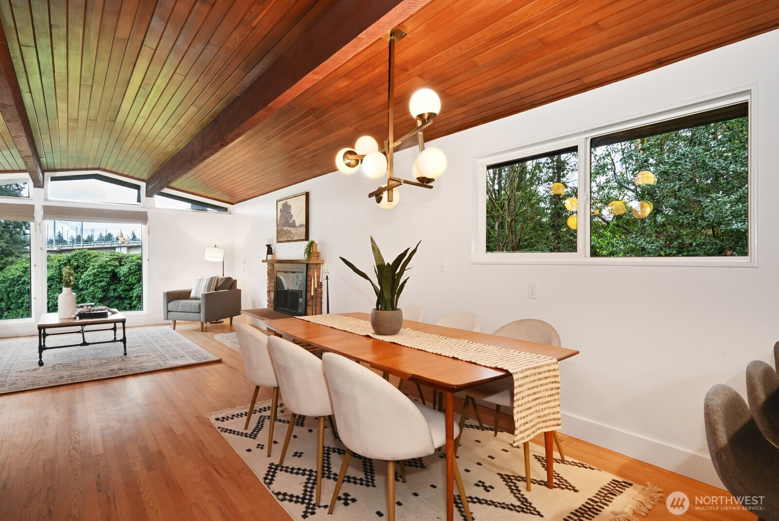 Welcome home to this meticulously cared-for, mid-century modern gem, completely renovated from top to bottom. Nestled among towering evergreens on an oversized 9,760 SF lot, this ~2,500 SF stunner is a rare find under $1 million. The showstopping kitchen features a built-in coffee bar, high-end stainless steel appliances, and a seamless open-concept flow into the living and dining areas — made for entertaining and everyday living alike. Cozy up beside one of two wood-burning fireplaces in this one-of-a-kind home, offering ultimate privacy at the end of a secluded street. When spring arrives, step outside into a landscape transformed by over $100,000 in investment: beautifully terraced grounds with a new paver patio, and full drip irrigation keeping everything lush year-round. An indoor playset with slide and monkey bars, plus EV charging complete the picture of a home built for modern life. All of this just steps from the planned Pinehurst Light Rail Station. Don't miss your chance to call this one home.