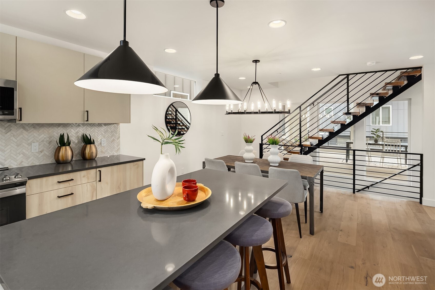 From Ashworth Homes, a modern new home in Northeast Seattle. Ultimate hosting or work from home set up with lower level family room with sliders to yard, plus office and full bath. Main floor features stylish slatted feature wall, open concept great room with ample living space and kitchen offering premium appliances and spacious island. Walk-in pantry and tucked-away guest powder room. Expansive heated and covered deck for all-season outdoor enjoyment. Upstairs, find your primary suite plus additional bedrooms, bath & laundry. Completed by EV-ready two-car garage. Near to the Burke-Gilman Trail and quick access to 522 and I-5 for a simple commute.