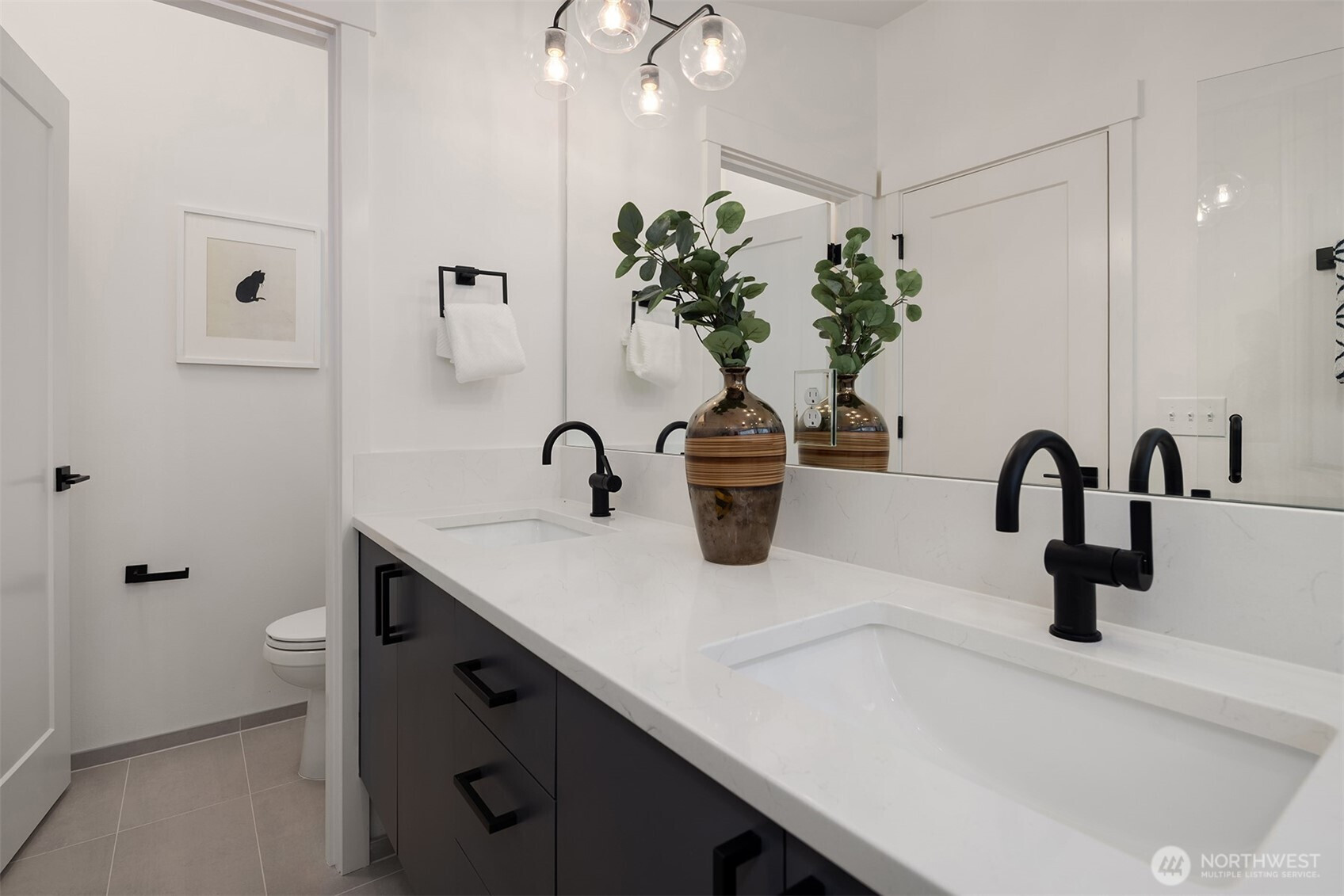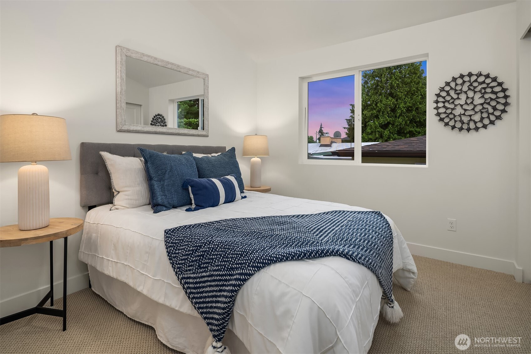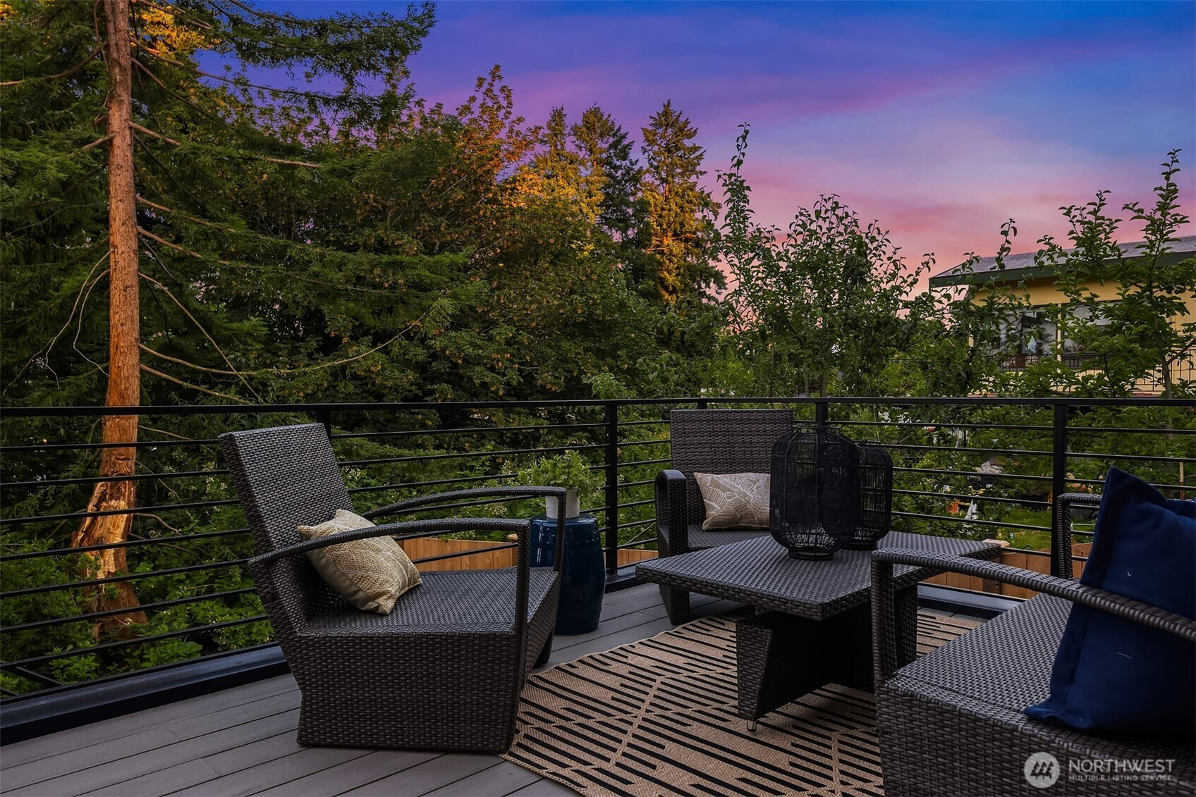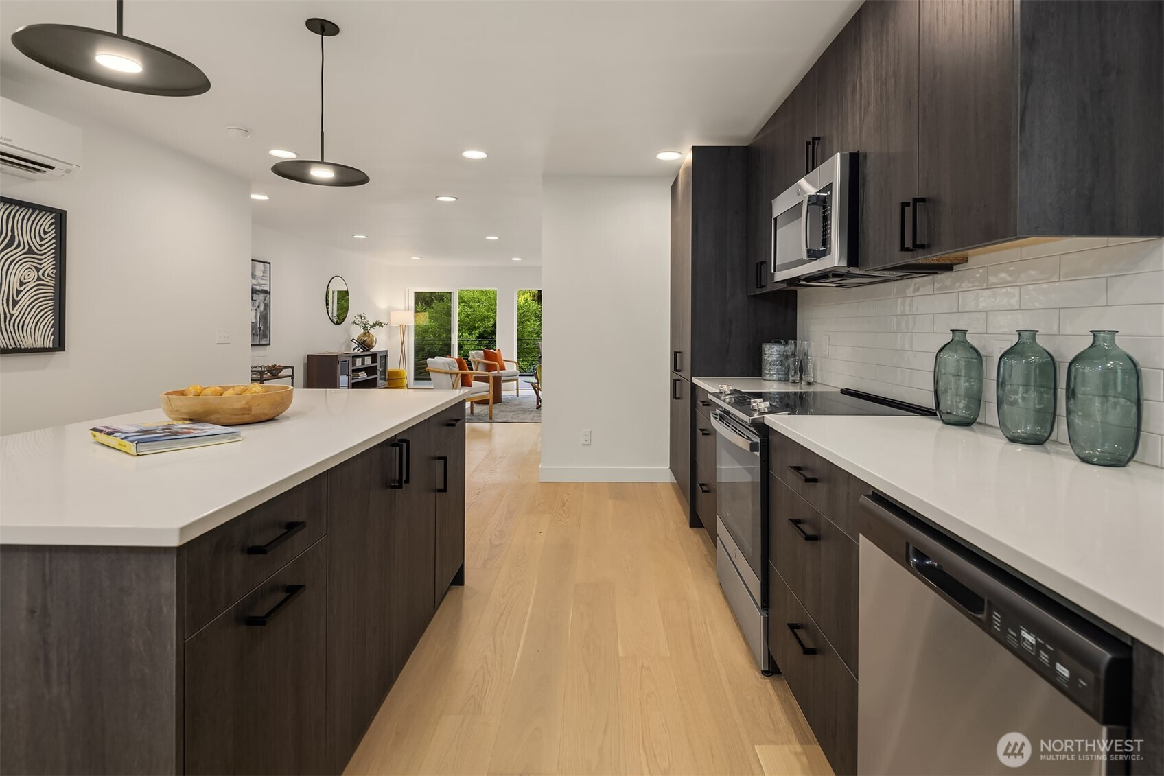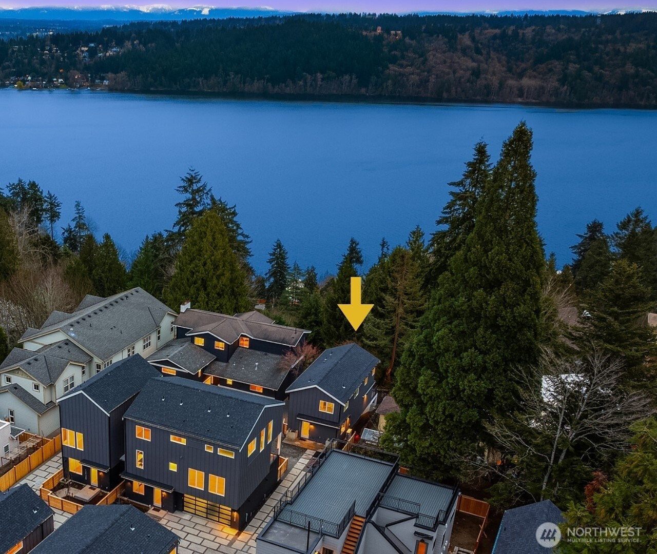 Modern detached cottage by Ashworth Homes in Northeast Seattle offers style and function in a prime location with stunning Lake WA & Cascade views. Tucked away from the street, this home is a hidden gem. The open main level features a designer kitchen with premium appliances & quartz counters, flowing seamlessly into the spacious living area. Sliders open to a private deck overlooking the lake —creating indoor-outdoor living space that is perfect for BBQs & entertaining. Upstairs, you'll find your primary suite with stunning lake view, luxe en-suite & spacious closet plus 2 additional bedrooms, full bath & laundry. EV-ready off-street parking included. Enjoy quick access to Burke-Gilman Trail, Magnuson Park, UW, 522 & I-5.