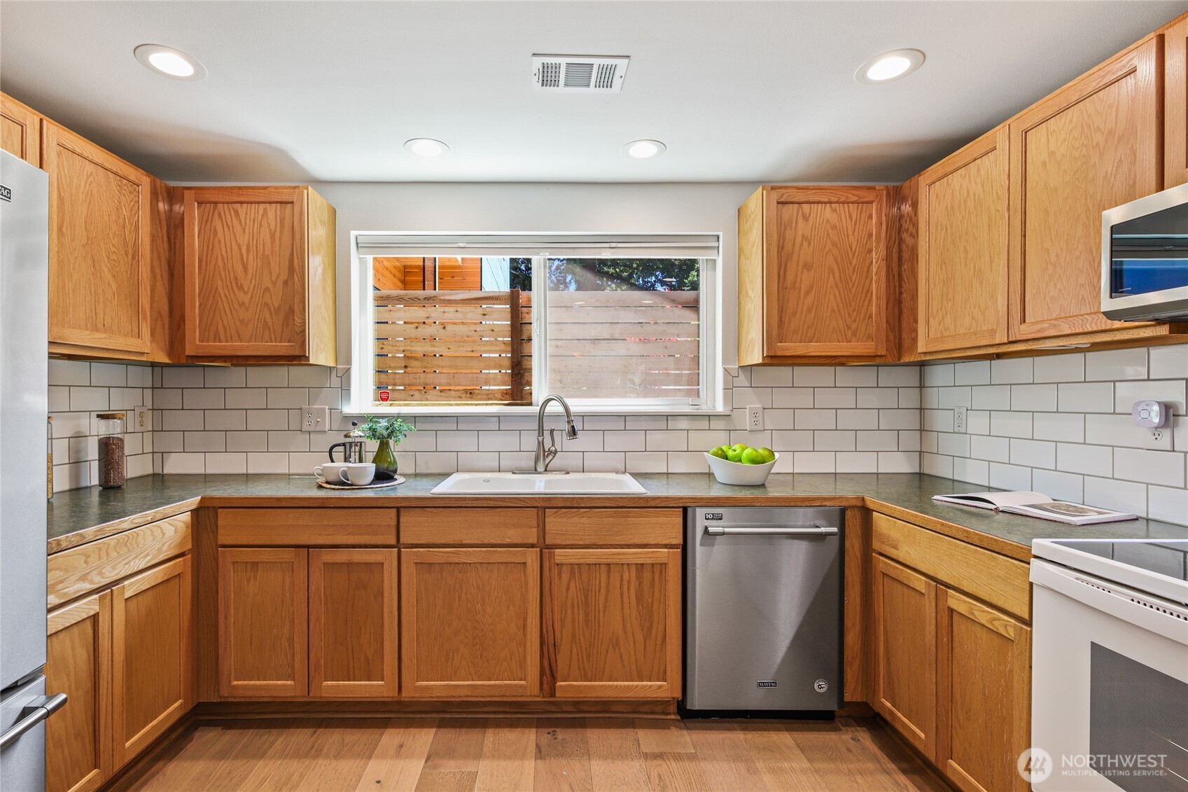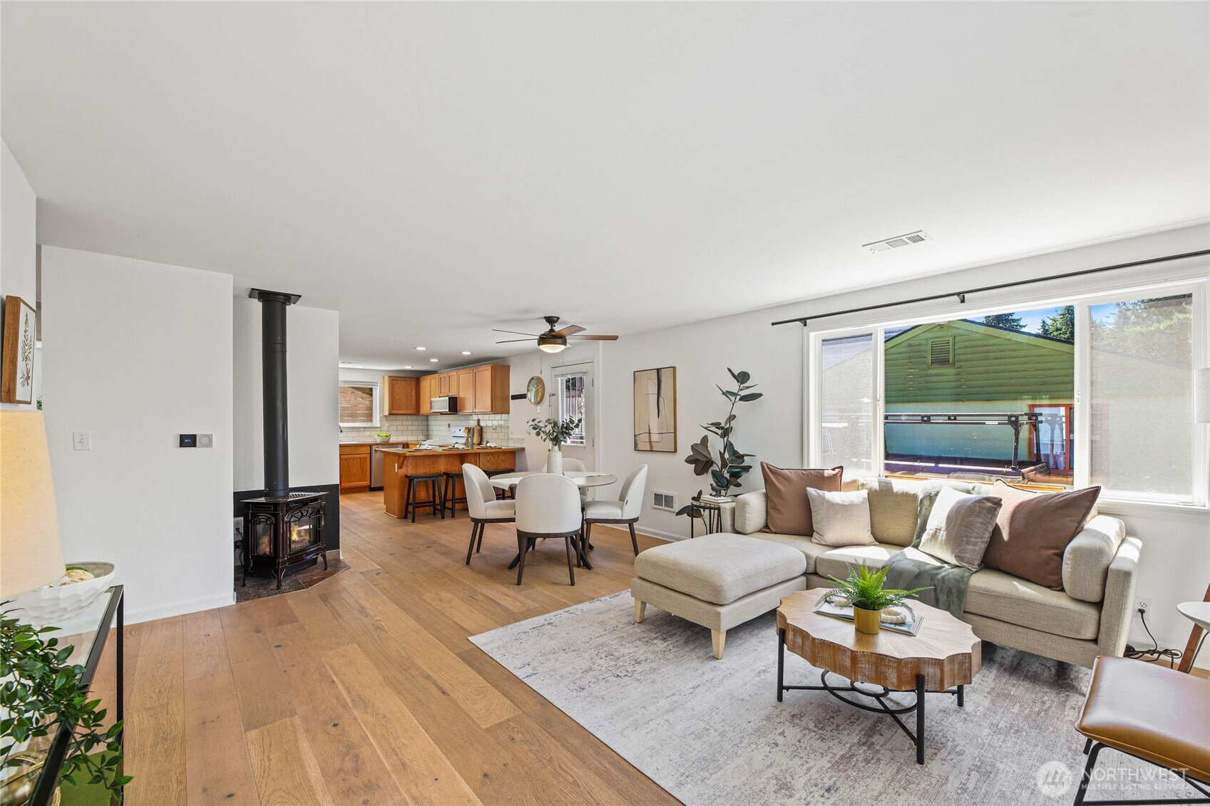 This is the one! Super cute rambler in Seattle's Haller Lake neighborhood and jammed pack full of goodies. Are you looking for that perfect one level home full of modern updates? Close by amenities like Sprouts Farmers Market, 24-hour fitness, Helene Maidson Pool and numerous eateries and coffee shops. Big 2-bedroom home with great layout and 2 baths! New engineered hardwood floors, new carpet in bedrooms, fully remodeled bath with tub and shower plus another 3/4 bath, New Gas fired tankless water heater, Ducted ceiling mounted mini splits throughout house for heat/air and a new roof! New Paint inside and out. Fully separate home with no common walls. Fully fenced yard with new landscaping and off-street parking! Minimal HOA