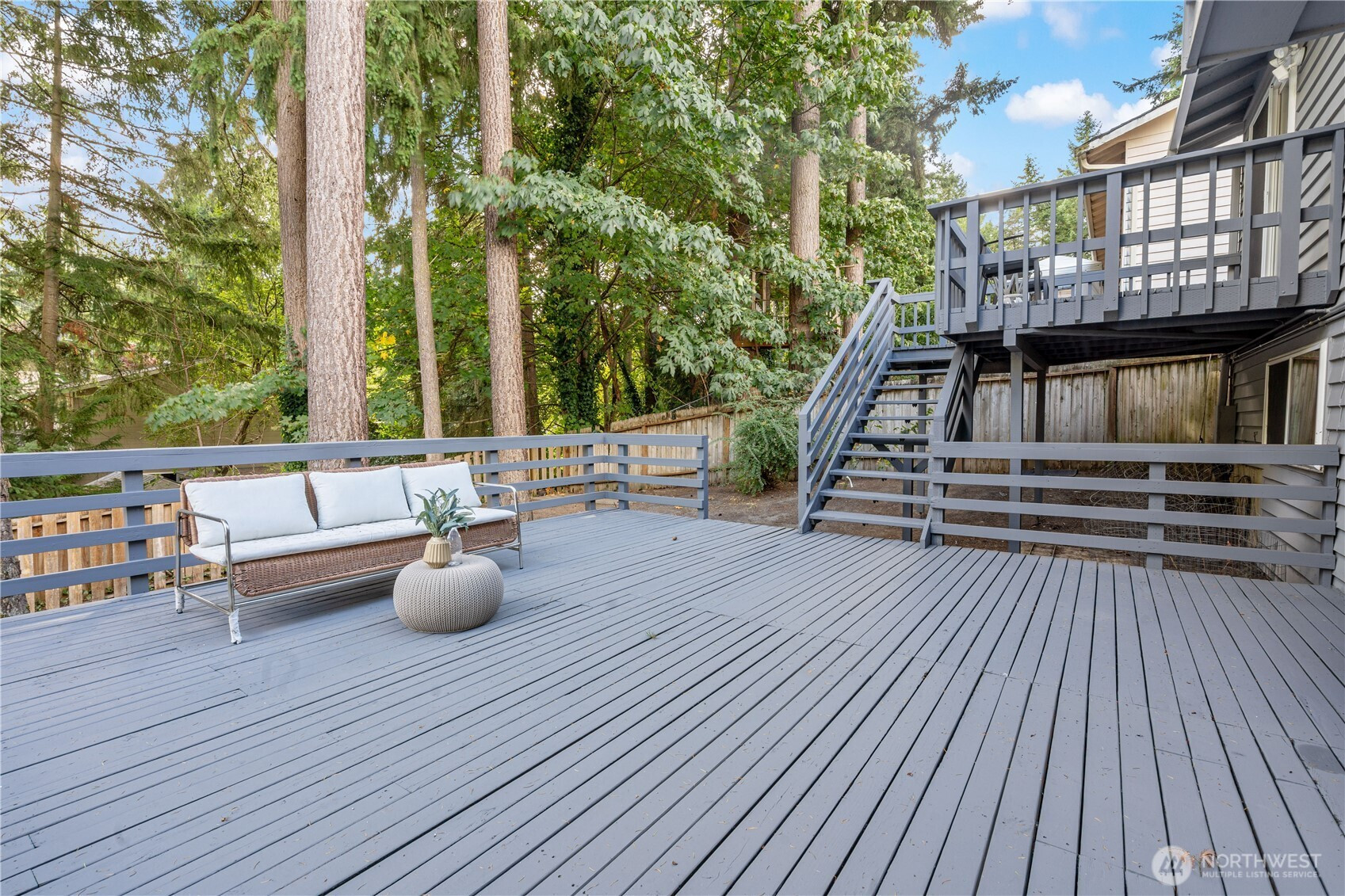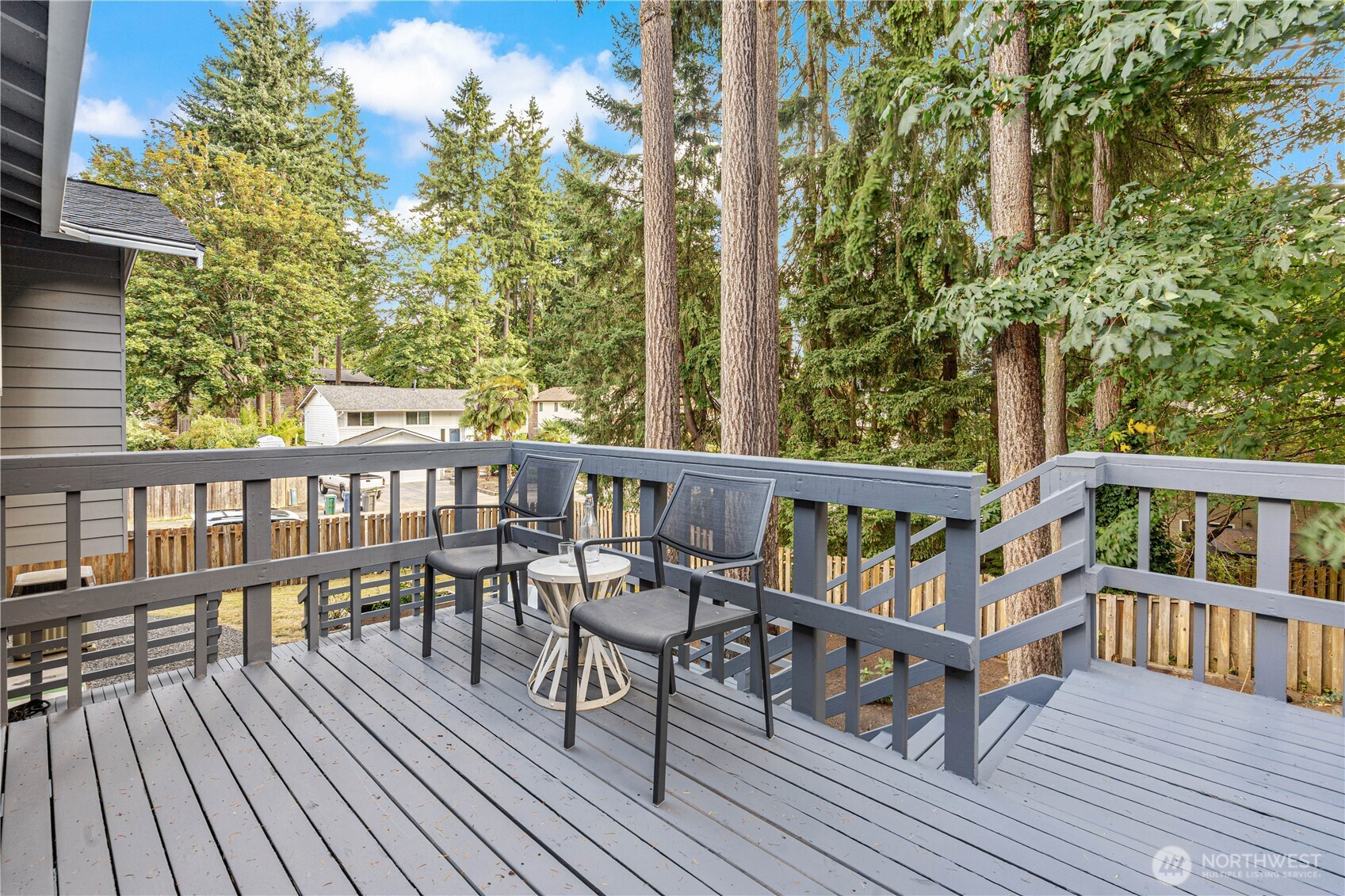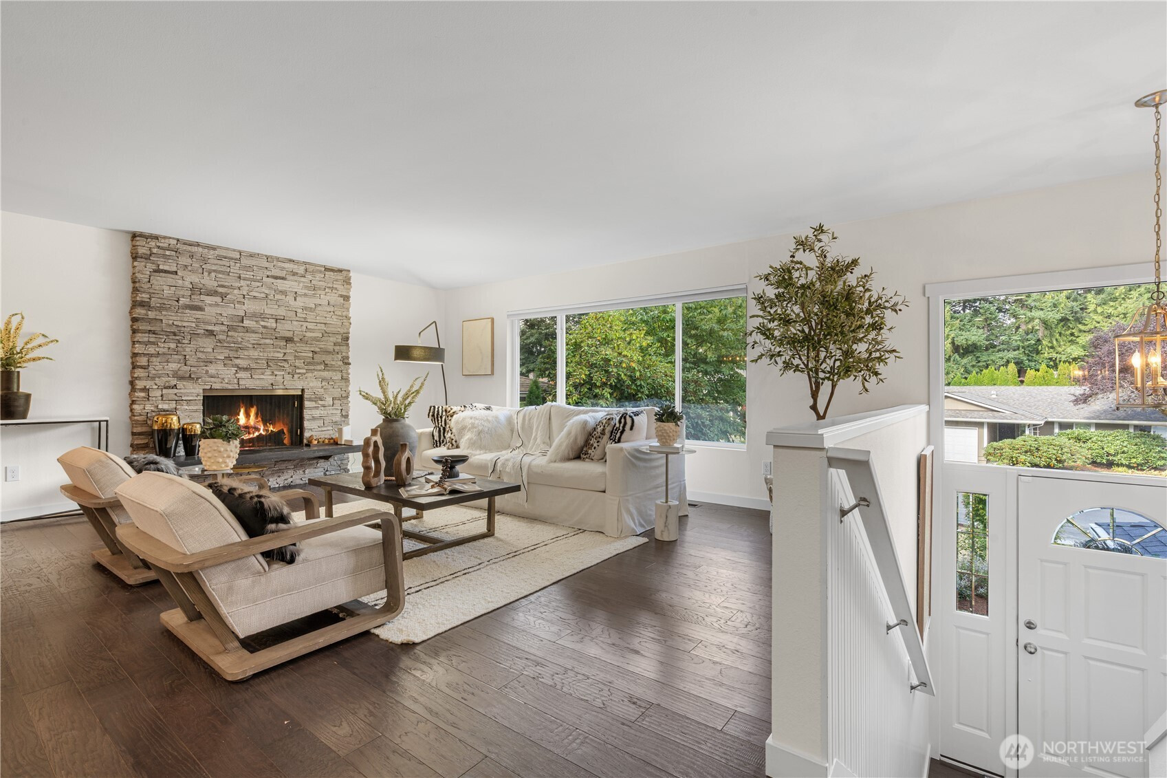 Welcome to your beautifully updated Kirkland corner-lot home backing to lush greenbelt privacy! Enjoy a spacious kitchen with granite counters, stainless steel appliances, and engineered hardwoods flowing through the open-concept living, dining, and kitchen—perfect for entertaining. Sun-drenched living room with large picture windows and floor-to-ceiling stone fireplaces on both levels. Upstairs features a primary suite with en-suite bath and three additional bedrooms. Two generous bonus/family rooms below with walk-out to the backyard oasis. Fresh interior paint, new driveway, AC for year-round comfort, and a freshly painted two-tiered deck overlooking serene greenbelt views with fenced yard. Minutes to Totem Lake, I-405, and Bellevue.