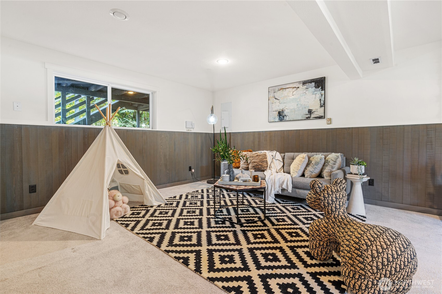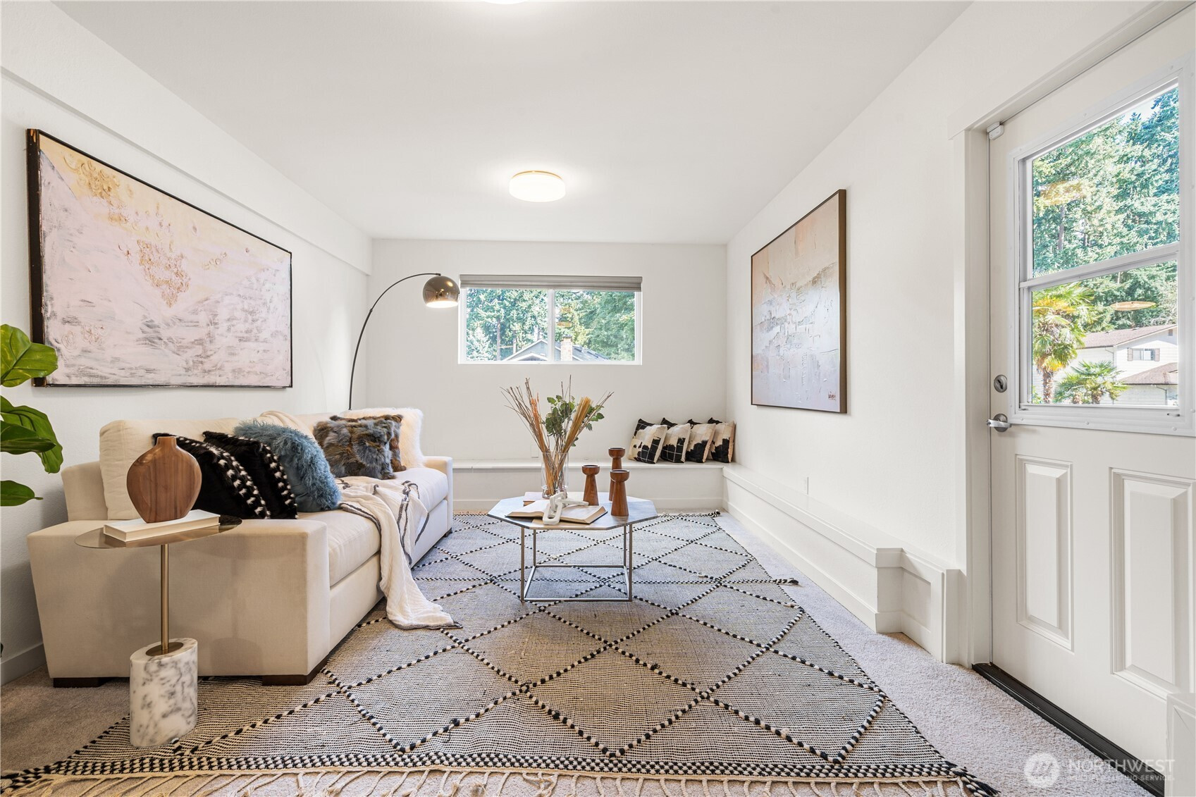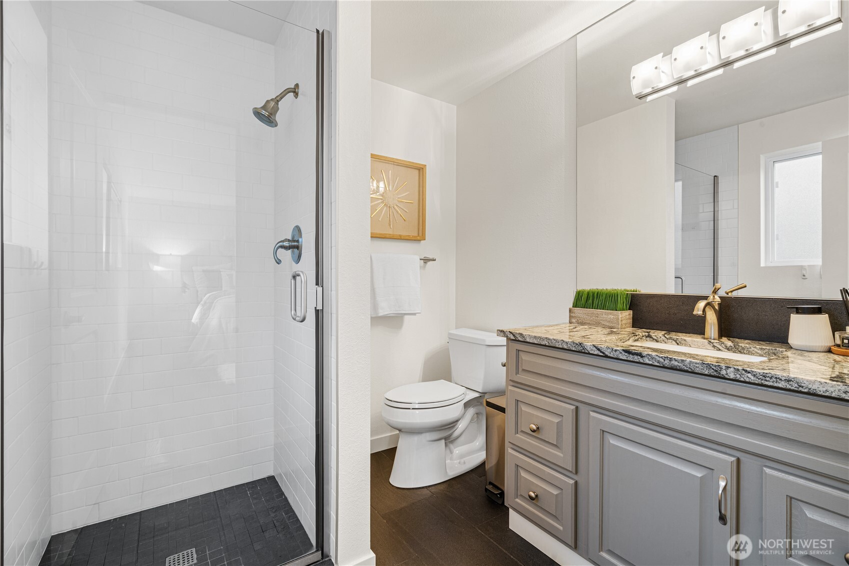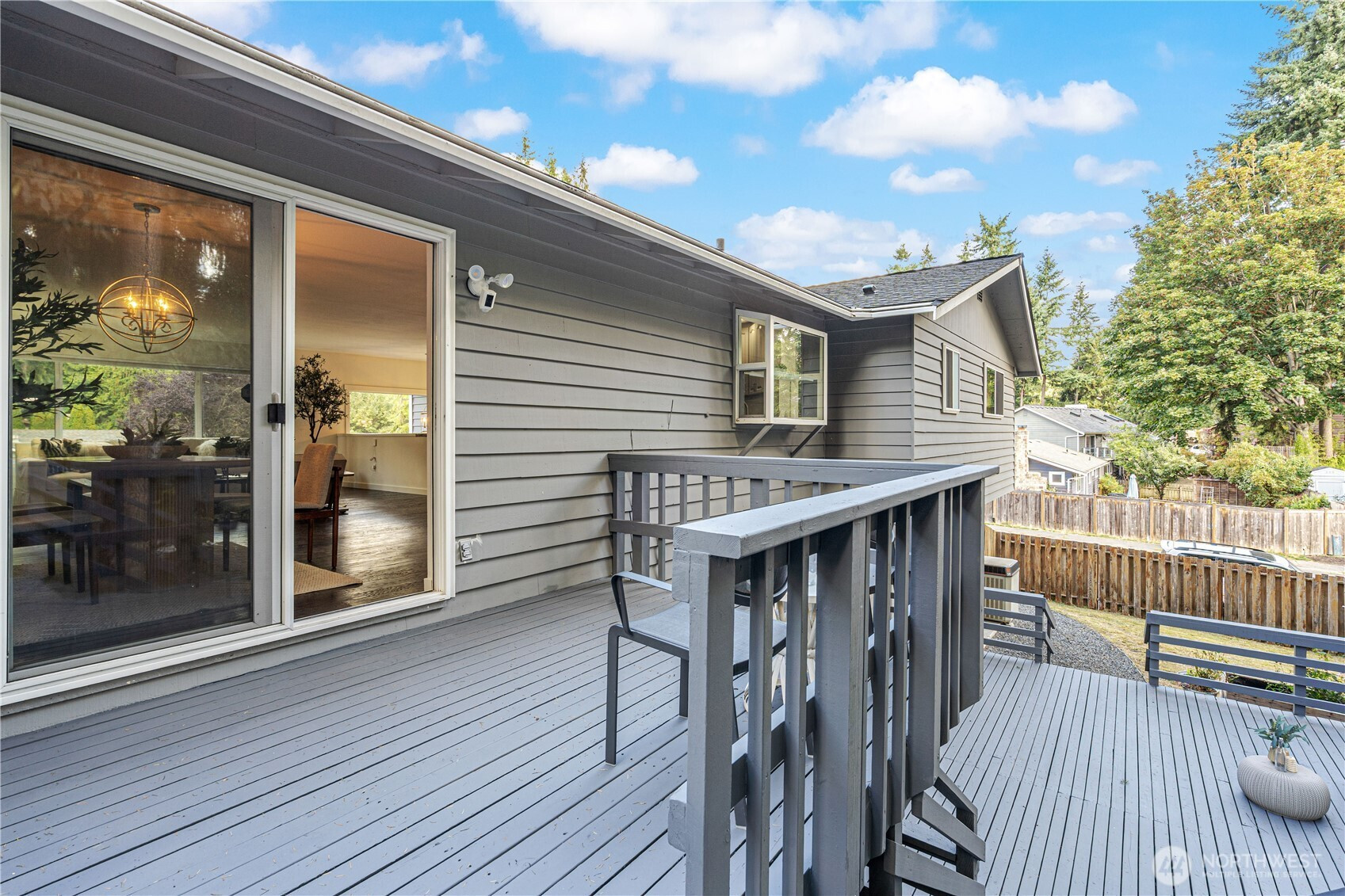Welcome to your beautifully updated Kirkland corner-lot home backing to lush greenbelt privacy! Enjoy a spacious kitchen with granite counters, stainless steel appliances, and engineered hardwoods flowing through the open-concept living, dining, and kitchen—perfect for entertaining. Sun-drenched living room with large picture windows and floor-to-ceiling stone fireplaces on both levels. Upstairs features a primary suite with en-suite bath and three additional bedrooms. Two generous bonus/family rooms below with walk-out to the backyard oasis. Fresh interior paint, new driveway, AC for year-round comfort, and a freshly painted two-tiered deck overlooking serene greenbelt views with fenced yard. Minutes to Totem Lake, I-405, and Bellevue.