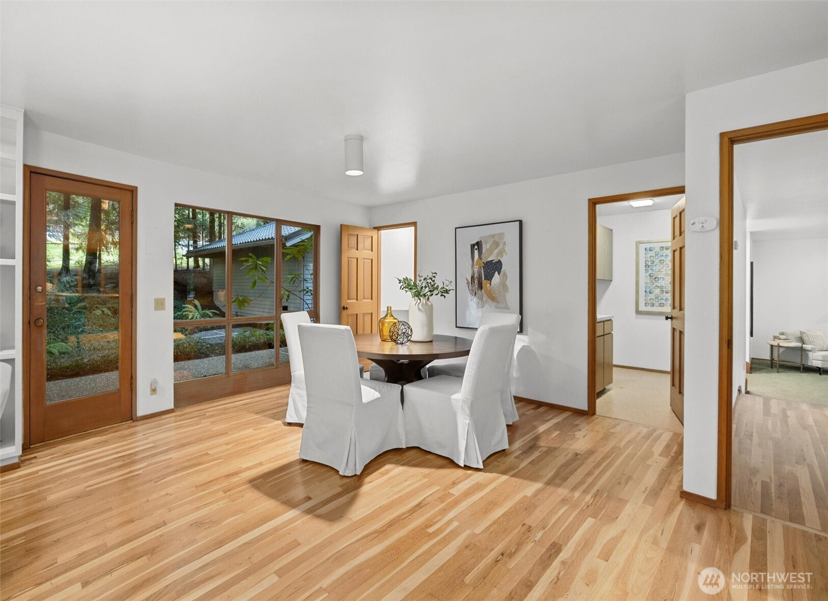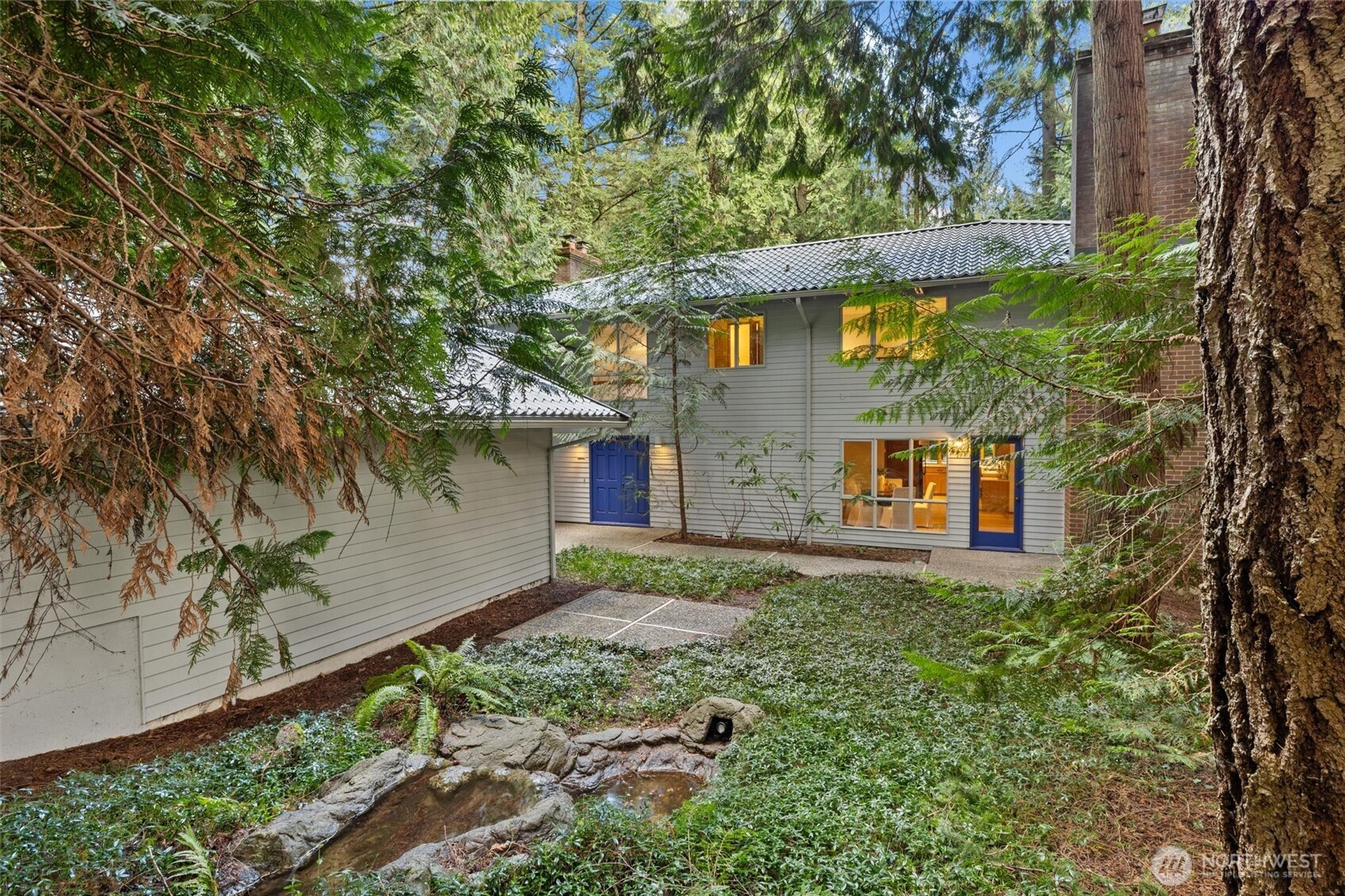 Welcome to the forest—where style meets space and convenience is just minutes away. Soaring ceilings and architectural windows frame stunning views of the evergreen canopy, bringing natural beauty into every room. A sensible layout offers flexibility and function for everyday living. The main floor flows seamlessly from the open living and dining rooms to a cozy family room. An eating nook and laundry room sit just off the kitchen for added ease. A generous entertainment deck stretches from the family room to the dining room, immersing you in the peaceful setting. A dedicated office near the entry adds versatility. Upstairs, the home becomes a true sanctuary. The spacious primary suite offers comfort and serenity with a warm fireplace and private deck overlooking the grounds. Three additional bedrooms and a full bath provide ample space for guests, work, or play. Set on a shy acre, the property offers room to entertain and explore in remarkable privacy. Lovingly maintained by one owner since 1981. Unbelievably secluded, yet only minutes to downtown Bellevue, Redmond, and Kirkland. Located in desirable Cherry Crest Elementary and Bellevue schools. Seller-procured inspection reports available after viewing.
