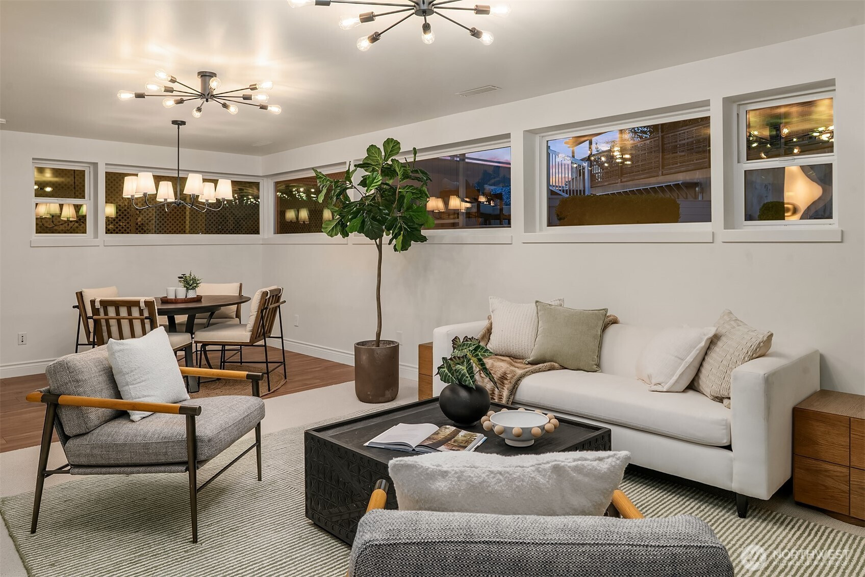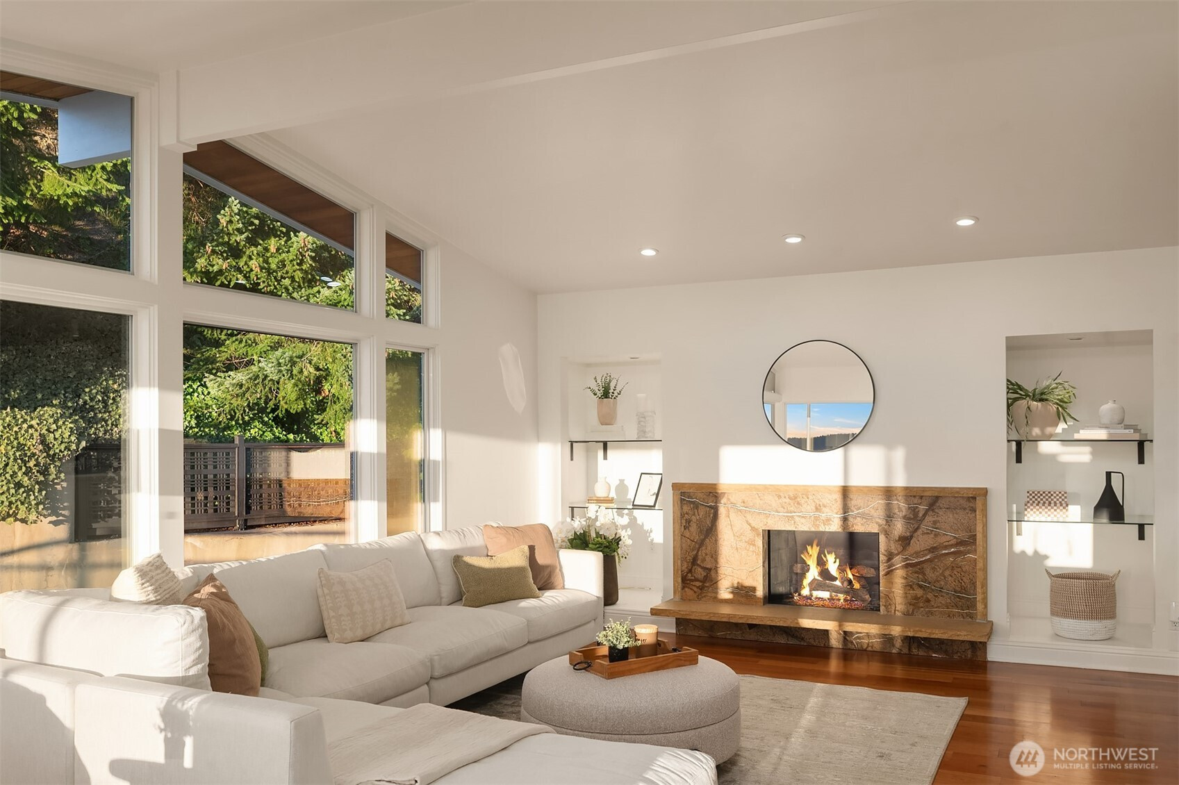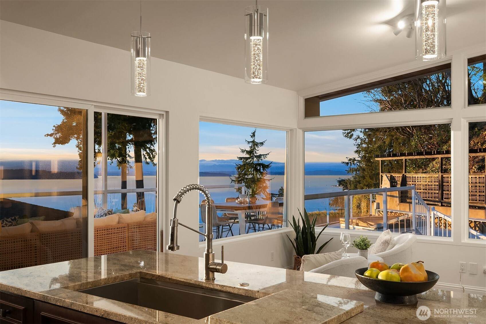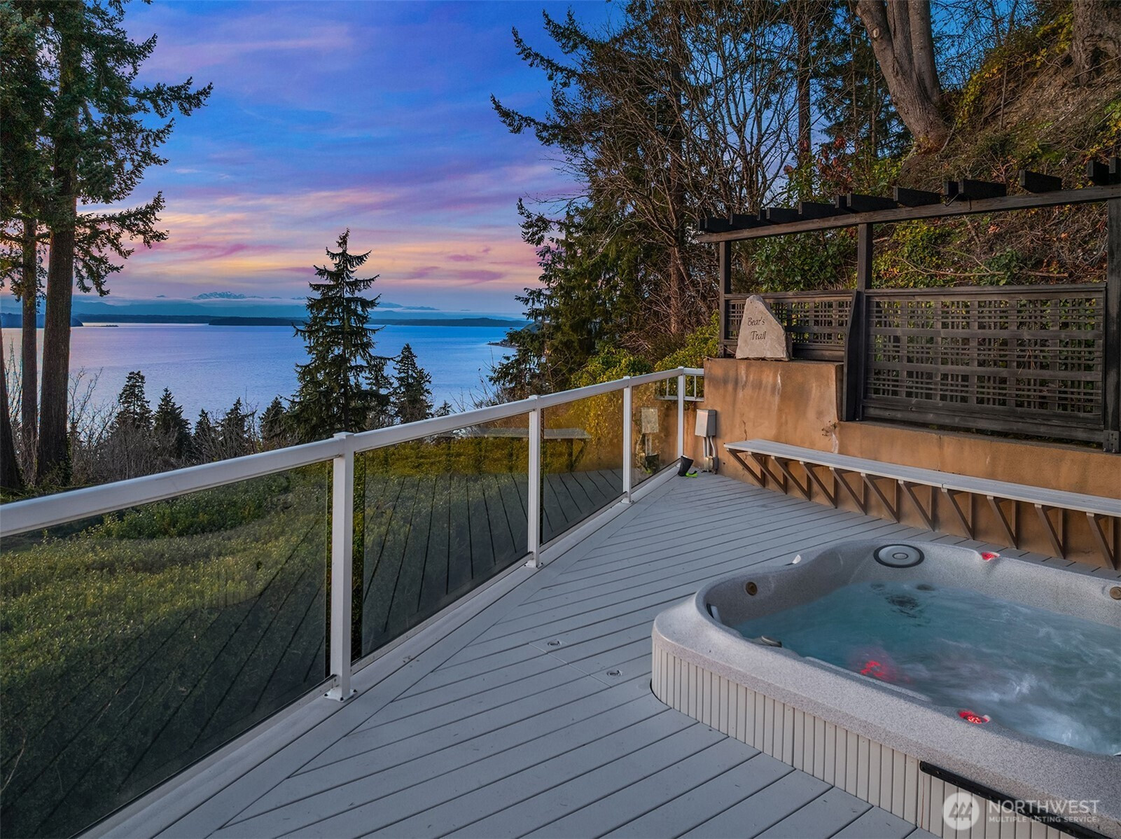 Perched high above the shoreline in coveted Seahurst/Hurstwood, this extraordinary retreat captures sweeping, unobstructed views of the Puget Sound stretching all the way to the majestic Olympic Mountains. Watch ferries glide across the water as sunsets paint the sky from your own private sanctuary. Designed for both grand entertaining and effortless everyday living, the home features a chef’s kitchen outfitted with Wolf and Sub-Zero appliances, seamlessly flowing into a covered outdoor living space complete with automated sunshades, Trex decking, a tranquil water feature, and a hot tub — creating a year-round resort experience. The luxurious primary suite is a true escape, showcasing a custom walk-in closet with its own private washer and dryer, offering elevated convenience and indulgence. Downstairs, a fully permitted ADU with private entrance and second kitchen provides exceptional flexibility for guests, multi-generational living, or income potential. Above the garage, a massive loft offers abundant storage. Commercial-grade air conditioning, solar panels, a Tesla whole-home battery system, and a whole-house water filtration system ensure comfort, efficiency, clean living, and uninterrupted power. The low-maintenance, drought-tolerant landscaping complements the eco-conscious design, allowing you to spend more time enjoying the view and less time on upkeep. A rare and distinctive offering where luxury, sustainability, and breathtaking scenery converge. Welcome home.