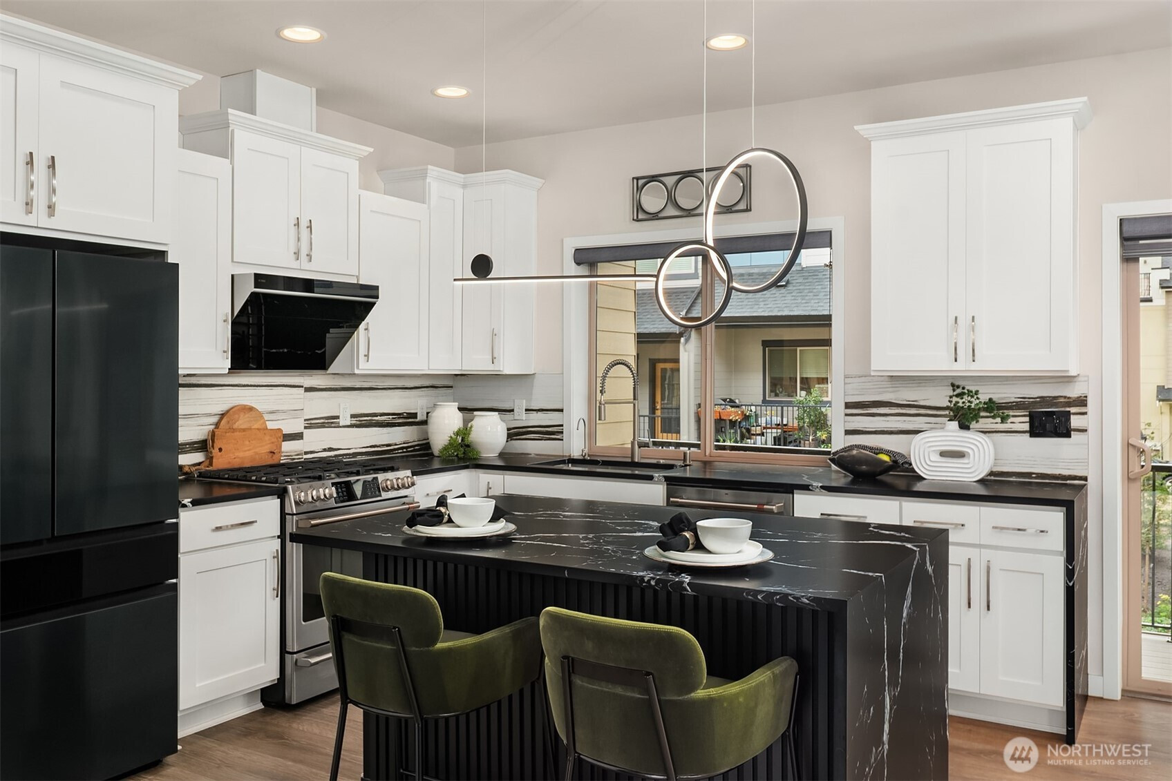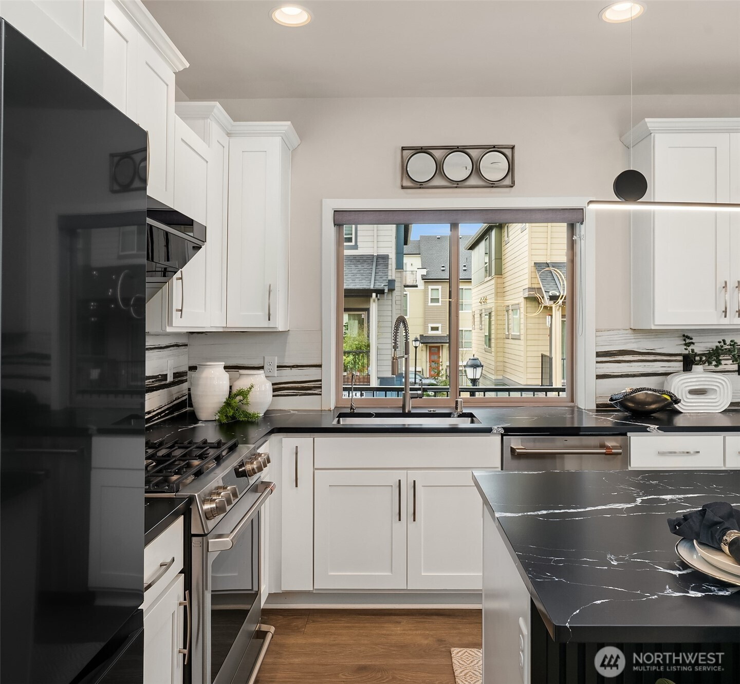 A stunning, one-of-a-kind corner unit custom home in the Westridge community of Issaquah Highlands! Open concept main floor is highlighted by a floor-to-ceiling backlit porcelain media wall, CB2 lighting, a built-in wine fridge & hardwood floors. The ultimate chef’s kitchen features a leather-finished waterfall-edge island, top-of-the-line appliances, a dual-sensor DC motor vent hood, plus ample storage & pantry. The largest home at Westridge, offering 4 bedrooms, 3.75 baths, plus a huge top-floor bonus rm w/ rooftop deck. The owner’s suite features a fully finished walk-in closet and a chic en-suite bth. Customized side-by-side two-car garage with extra storage. A+ location next to retail and shopping. It’s all here in Issaquah Highlands!