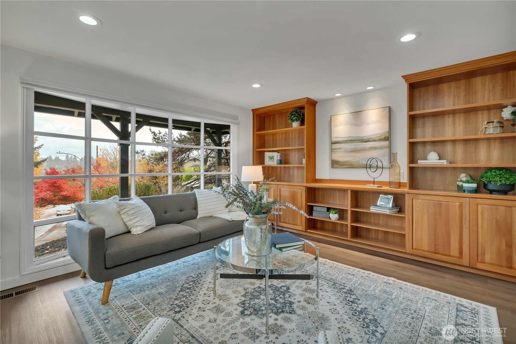 Experience turn-key living in this beautifully reimagined College Hill home. Living room showcases custom wood built-ins and an expansive picture window overlooking the cul-de-sac. The kitchen impresses with white cabinetry, quartz counters, full-height backsplash, waterfall island & stainless-steel appliances. French doors lead to the private deck, patio, and large backyard. The upstairs primary bath is gorgeous with double vanity, quartz counters & a walk-in frameless glass shower. A wood-burning fireplace anchors the family room and down the hall is the versatile 4th BR. New roof, floors, carpet, deck, interior/exterior paint and more. A/C, 2-car garage, Bellevue schools and convenient Seattle/Eastside commutes. Pre-inspected. No HOA.