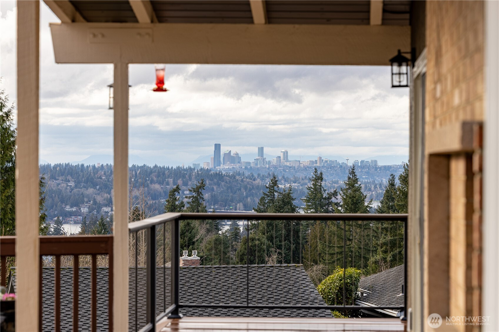 Somerset Corner-Lot View Home. Experience sweeping western views of the Olympic Mountains and the Seattle/Bellevue skyline from nearly every room in this exceptional residence. Bathed in natural light, the home features vaulted wood-framed ceilings, skylights, and a statement fireplace anchoring the expansive living room. A picture window frames unforgettable sunsets over a new composite deck—perfect for evening entertaining. The spacious primary suite offers a private retreat with an oversized bath and custom built-ins, plus two additional bedrooms upstairs. The lower level provides flexible living with a nautically inspired rec room with fireplace, guest bedroom and bath, laundry, and dedicated gym—ideal for multi-generational living. An updated eat-in kitchen offers privacy and seamless access to the grand patio with built-in BBQ for effortless gatherings. Hardwood floors, new exterior paint, updated electrical, heat pump with A/C, and a 50-year metal roof add lasting value. Quiet street with two car garage and ample street parking. Prime commuter location near I-405 and I-90. Walk to Somerset Elementary (.8 mi), Tyee (.5 mi), Newport High (1 mi) and Factoria Mall & restaurants (1.4 mi). Welcome Home.