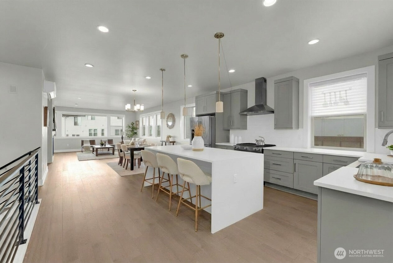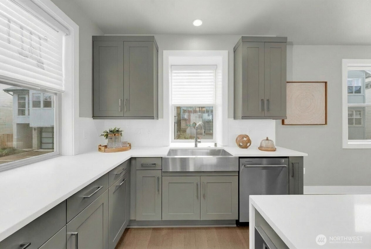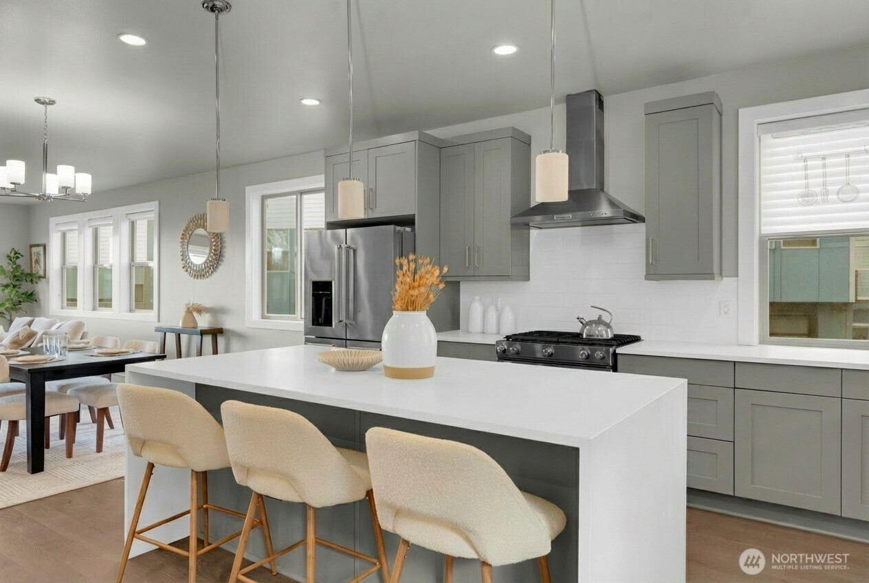 Built by Tri Pointe Homes in sought-after Aldea at Newcastle Commons, this light-filled end-unit townhome offers a rare 4-bedroom layout and a compelling first resale opportunity since new. A bedroom and full bath on the entry level provide ideal flexibility for guests, multigenerational living, or a private office. Inside, 9-foot ceilings, open-concept living, quartz counters, KitchenAid appliances, hardwood floors, metal railings, and smart home features create a modern, airy feel throughout. The end-unit position brings in exceptional natural light, while visitor parking just behind the home adds everyday convenience. Residents enjoy a clubhouse-style recreation center with pool, fitness space, lounge and gathering areas, playgrounds, trail access, and a dog park. Quietly tucked away, yet close to both Newcastle and Factoria, this home offers an ideal blend of luxury, convenience, and