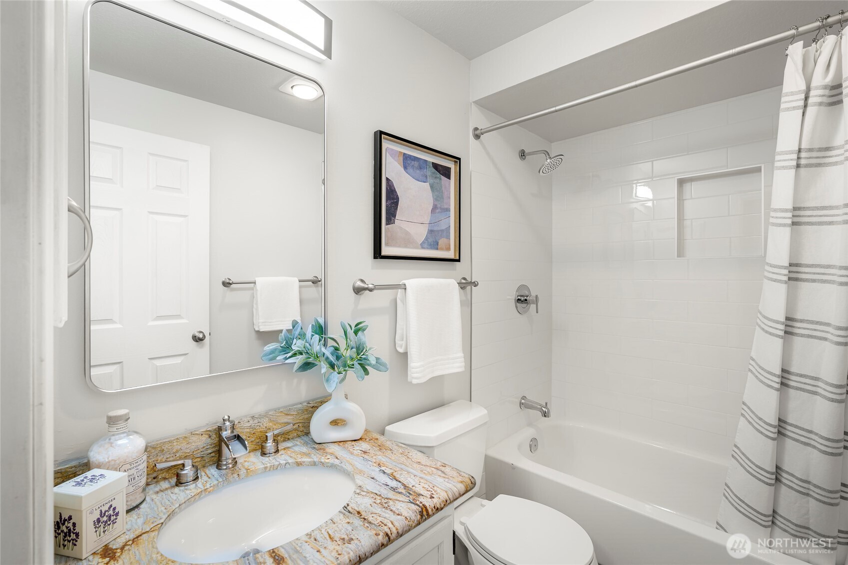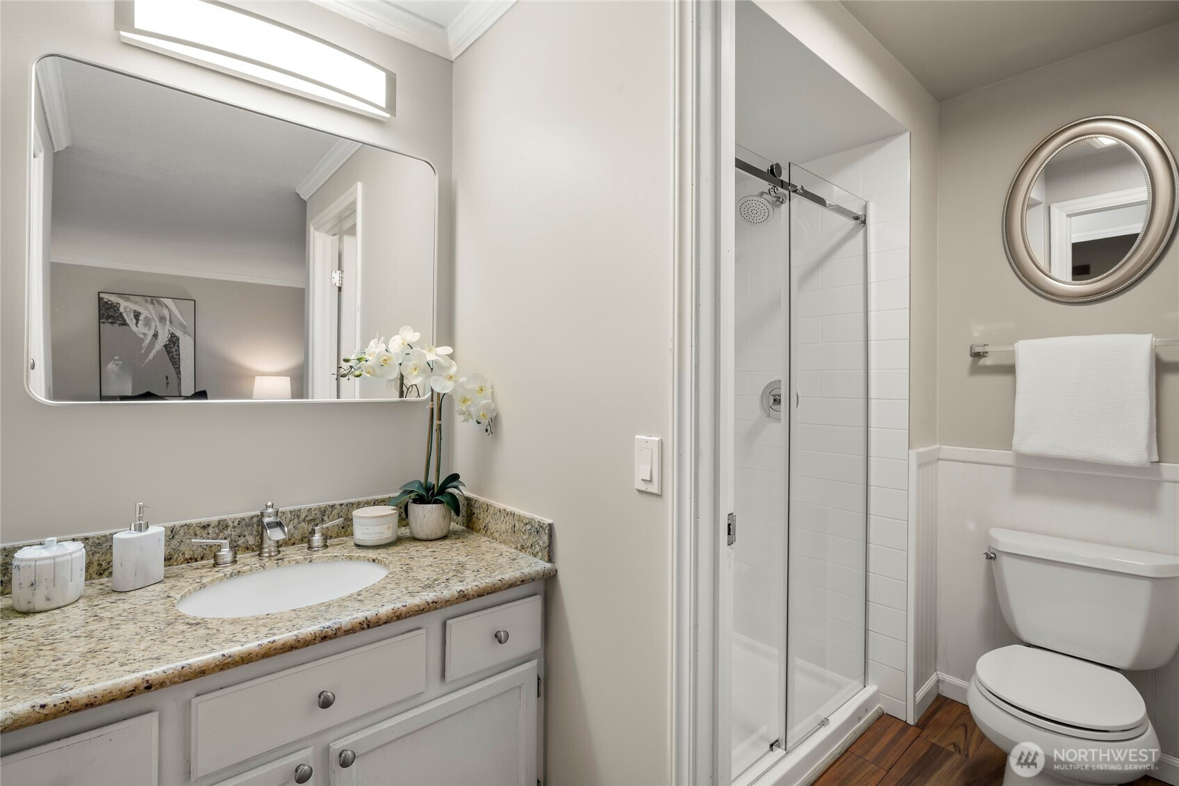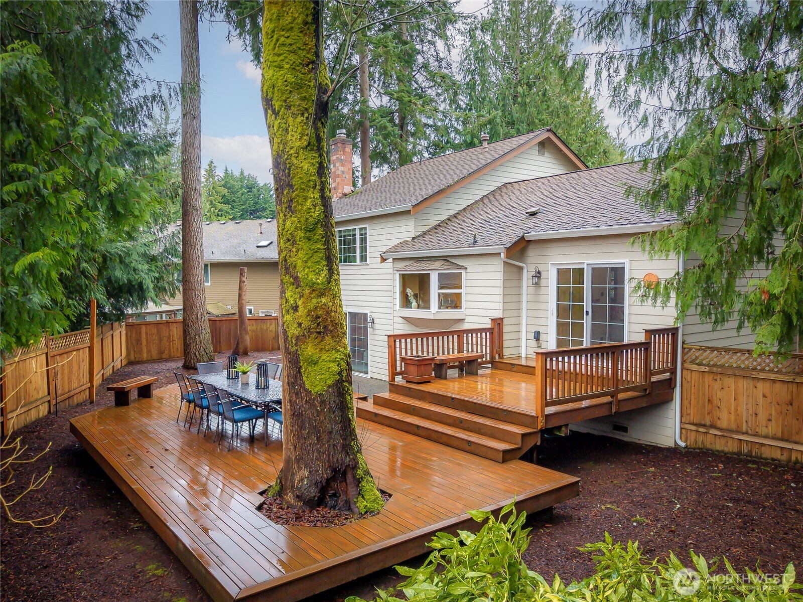Price Improvement! Rare opportunity for a 4-bedroom in English Hill at an incredible value. At the end of a quiet cul-de-sac and surrounded by towering evergreens in the coveted Northshore School District, this beautifully maintained home offers the kind of updates and comfort buyers hope to find already done. Rich hardwood floors bring warmth to the main living spaces, while tile and new carpet add comfort underfoot. The kitchen flows easily into the surrounding gathering spaces and features a charming garden window—the perfect sunny spot for herbs, houseplants, or simply enjoying views of the backyard while you cook. When Northwest evenings turn cool, a cozy gas fireplace insert creates the perfect place to unwind. Upstairs, two newly remodeled bathrooms bring a fresh, modern touch, while a brand-new furnace provides year-round comfort and peace of mind. Step outside and the lifestyle continues. A stunning ironwood deck—both beautiful and incredibly durable—overlooks the landscaped, fully fenced yard and invites outdoor living all season long. All of this in a sought-after neighborhood, where generous lots, mature trees, and a peaceful, established setting combine with easy proximity to Redmond’s tech campuses, Woodinville wine country, and everyday amenities. Welcome to your own English Hill Haven.