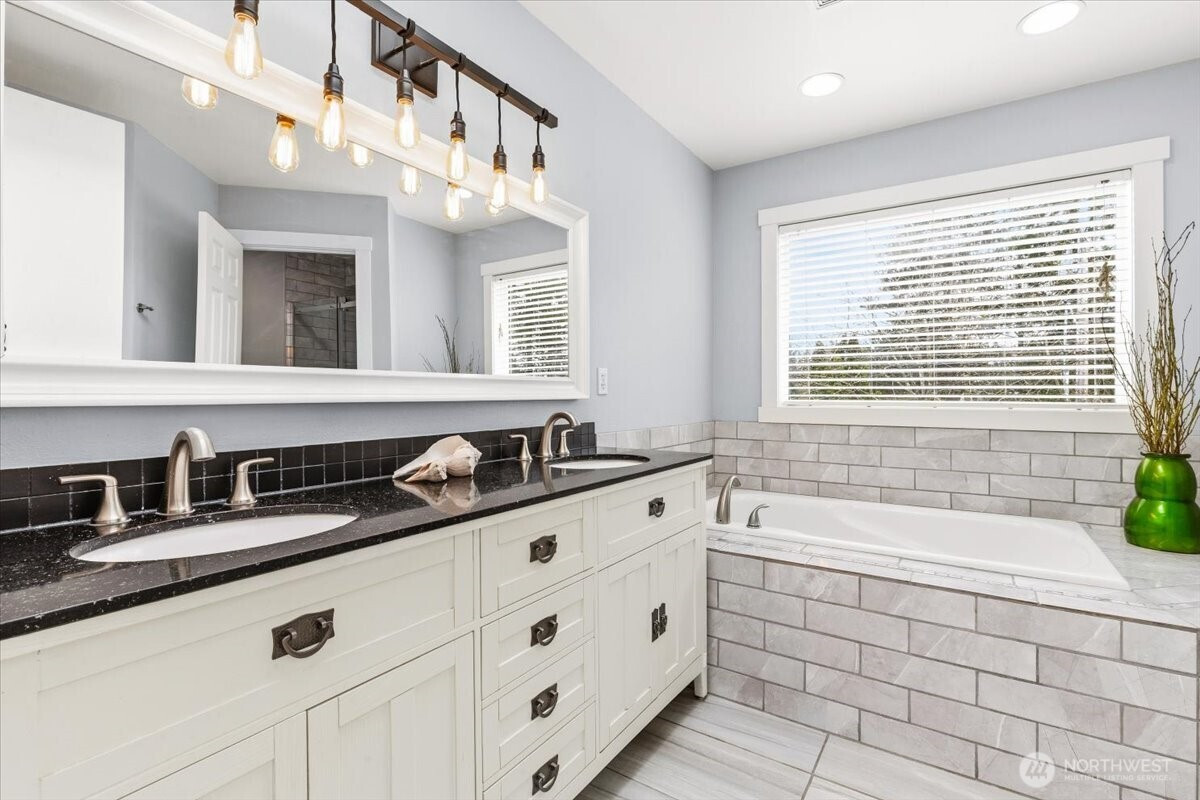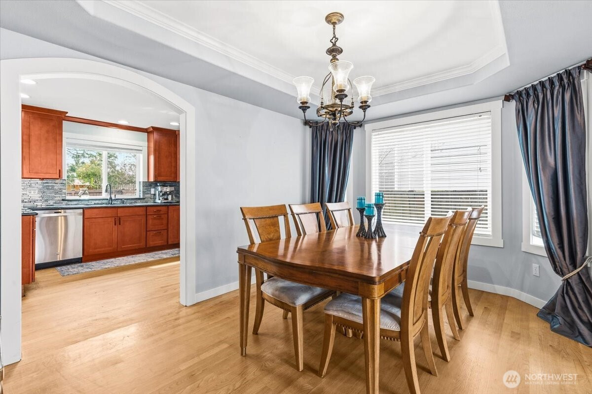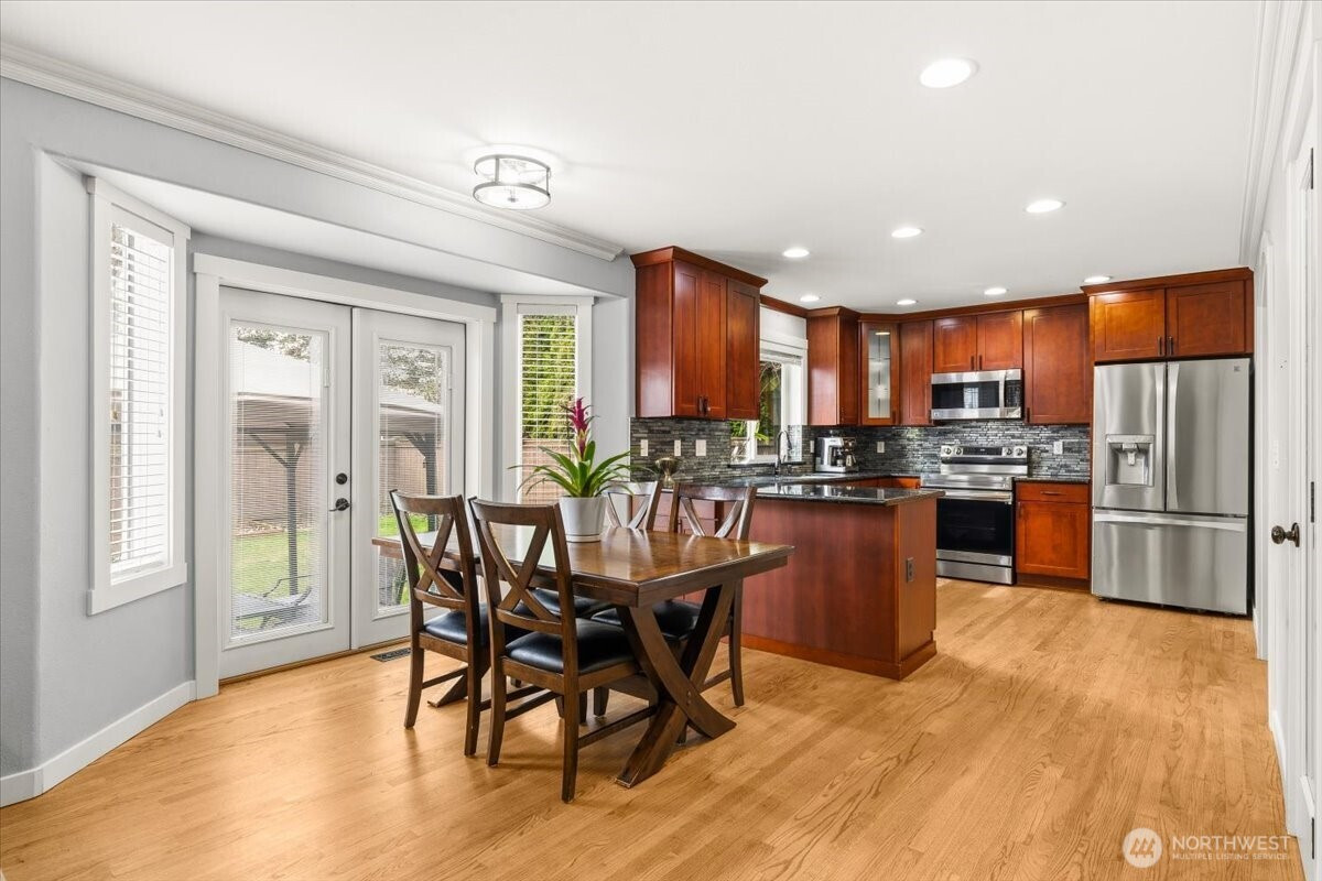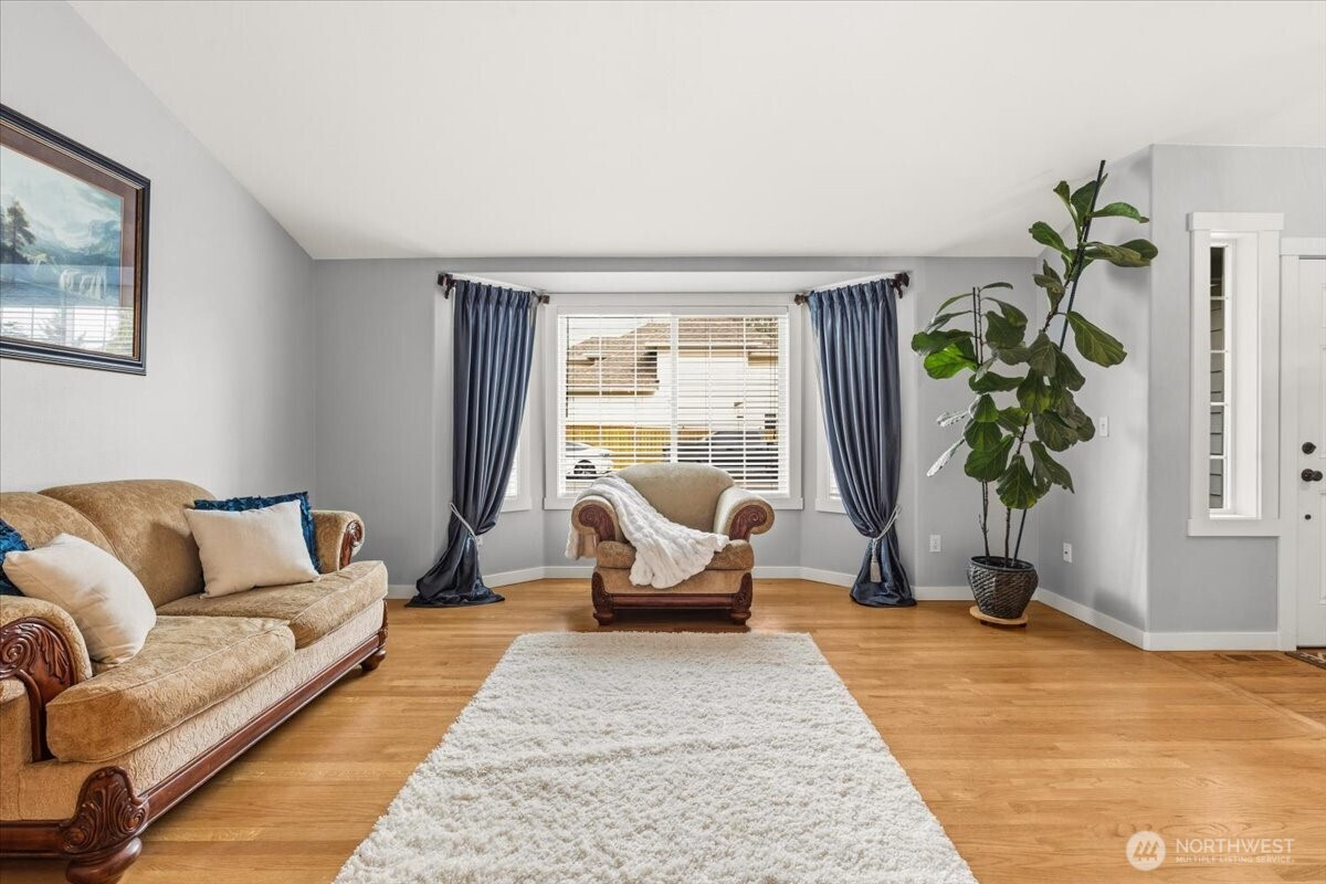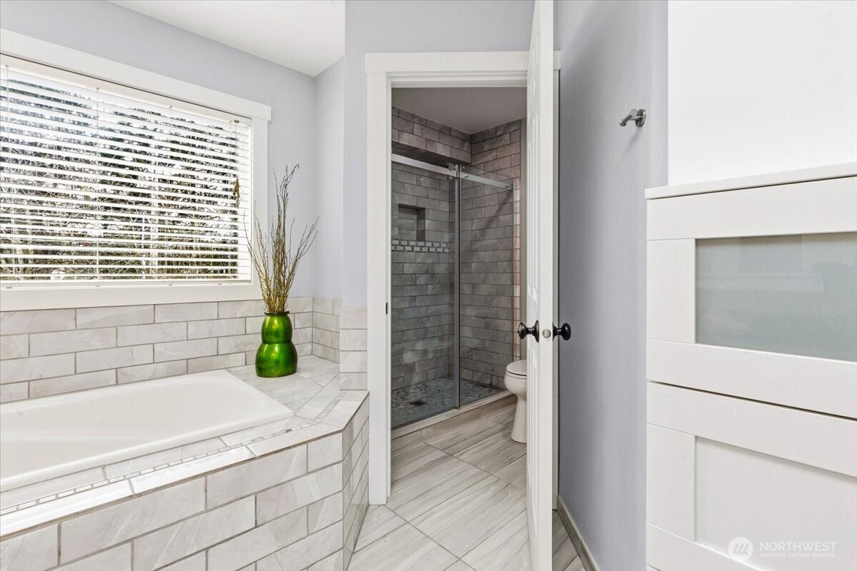 Welcome to this gorgeous, meticulously maintained 4-bedroom, 2.5-bathroom home nestled in a quiet neighborhood. Soaring ceilings greet you at the entryway, opening to a bright living room and an elegant formal dining area filled with natural light. The family room features a cozy gas fireplace and custom built-in shelving. The updated kitchen offers granite countertops, stainless steel appliances, and a cozy eating nook with direct access to the patio and gazebo. The home boasts newer interior and exterior paint, fully remodeled bathrooms featuring heated floors. A roof that is only a few years old. Upstairs, you’ll find four generously sized bedrooms, including a spacious primary suite with a luxurious five-piece bath adorned with stunning tile. Step outside to enjoy a private oasis with established fruit trees, a thriving garden area, and plenty of space to play, plant, or unwind. No HOA. Conveniently located near freeways, shopping, Trader Joe’s, Covington Costco, and Lake Meridian.