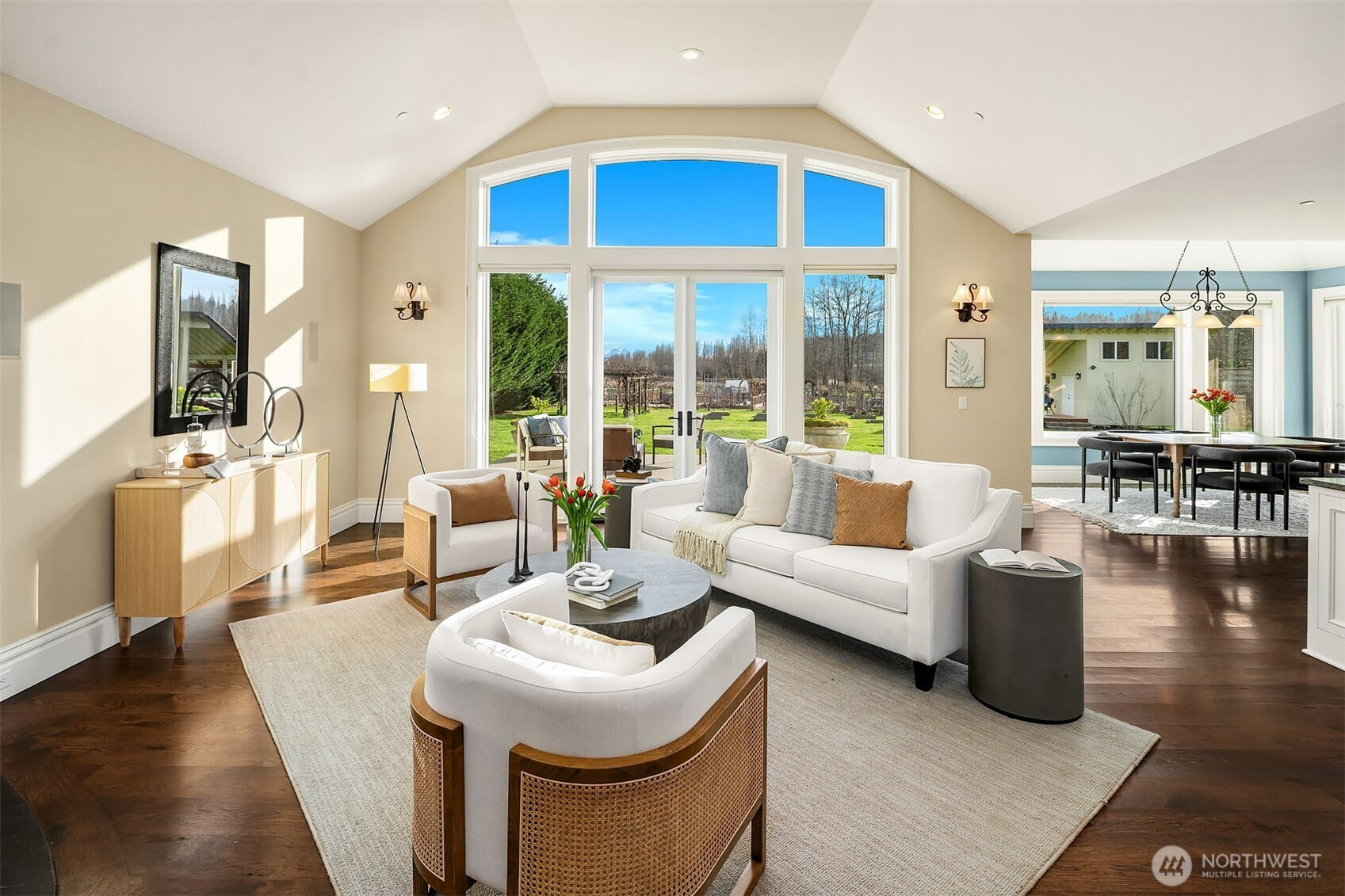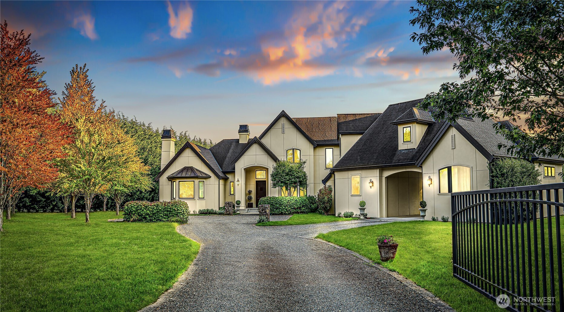 Perfectly positioned near downtown Woodinville, this beautiful custom-built home offers the area’s best in wine-country living, minutes from lifestyle amenities and key routes to the area’s job hubs. The unprecedented location offers utmost privacy, framed by mature hedges and farmland. A gated entry, porte cochere, and curving drive create a sense of arrival. Architectural details balance clean lines with traditional elements, while interiors maintain a timeless aesthetic with wide-plank hardwood and a fresh,modern open plan with living spaces orientated towards expansive territorial & Mt. Rainier views. Fabulous epicurean kitchen features custom cabinetry with striking soapstone counters,center island & eating bar,casual dining nook, & butler’s pantry near formal dining. The adjacent great room has 13’ ceilings and French doors to a lovely outdoor terrace & park-like grounds. An oversized fireplace warms the main floor on cool days. Also on main,a romantic primary suite with spa bath & garden views, & handsome study featuring furniture-quality built-ins & fireplace. Secondary bedrooms, incl 4th bedroom option, occupy 2nd floor with a huge bonus that accommodates multiple activities, exercise room, & study area. The acre-plus site features a garden shed with 32 solar panels, a pergola,orchard, storage shed, finished 3-car garage, auto court, abundant guest parking. A property like no other….privacy, proximity, custom quality, stellar schools, and urban sophistication.